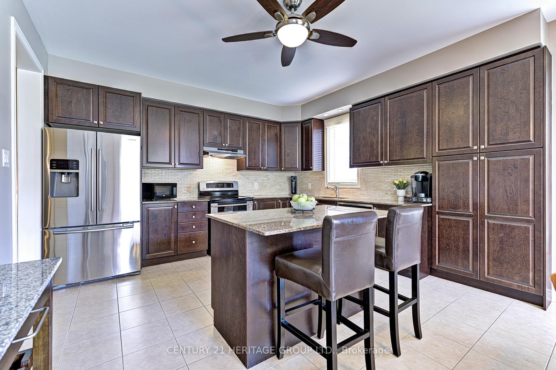Welcome to your new Home! You will be greeted by impeccable curb appeal, no sidewalk and a premium lot. Step inside the spacious foyer and discover an exceptional all-brick-and-stone, two-story home bringing a blend of refined elegance with a touch of tradition. The main floor provides access to the garage, features a classic dining room reminiscent of the old days when entertaining guests was full of grace and sophistication as well as a step-down powder room for added privacy. There is a large family room with a gas fireplace and a spacious kitchen with granite counter tops, engineered hardwood flooring, island seating, plenty of cabinets and food preparation spaces. The kitchen will become the hub of the home as it includes a less breakfast area that opens to the family room and that transitions directly to the spacious backyard where BBQs and family time is easily reached. Upstairs you will find four bedrooms, laundry and an open loft that brings your family options from office space to cozy TV or reading areas. The primary bedroom has a large walk-in closet and a 6-piece ensuite bathroom. The full basement provides 1177sq ft to be used at your discretion and has a bathroom rough-in, an air exchanger, water softener and high ceilings to create the perfect added living space. Caledon East is a very desirable and family friendly community. Immerse yourself in its award-winning lifestyle with easy access to scenic biking and walking trails, a state-of-the-art recreation facility, sports fields, splash pad, skating rinks, swimming pool and top-rated schools within walking distance. Whether you're hosting backyard gatherings on your spacious lot or exploring the vibrant community amenities, this home offers the perfect balance of elegance, convenience, and adventure. Quick commutes are guaranteed via the nearby 400-series highways.