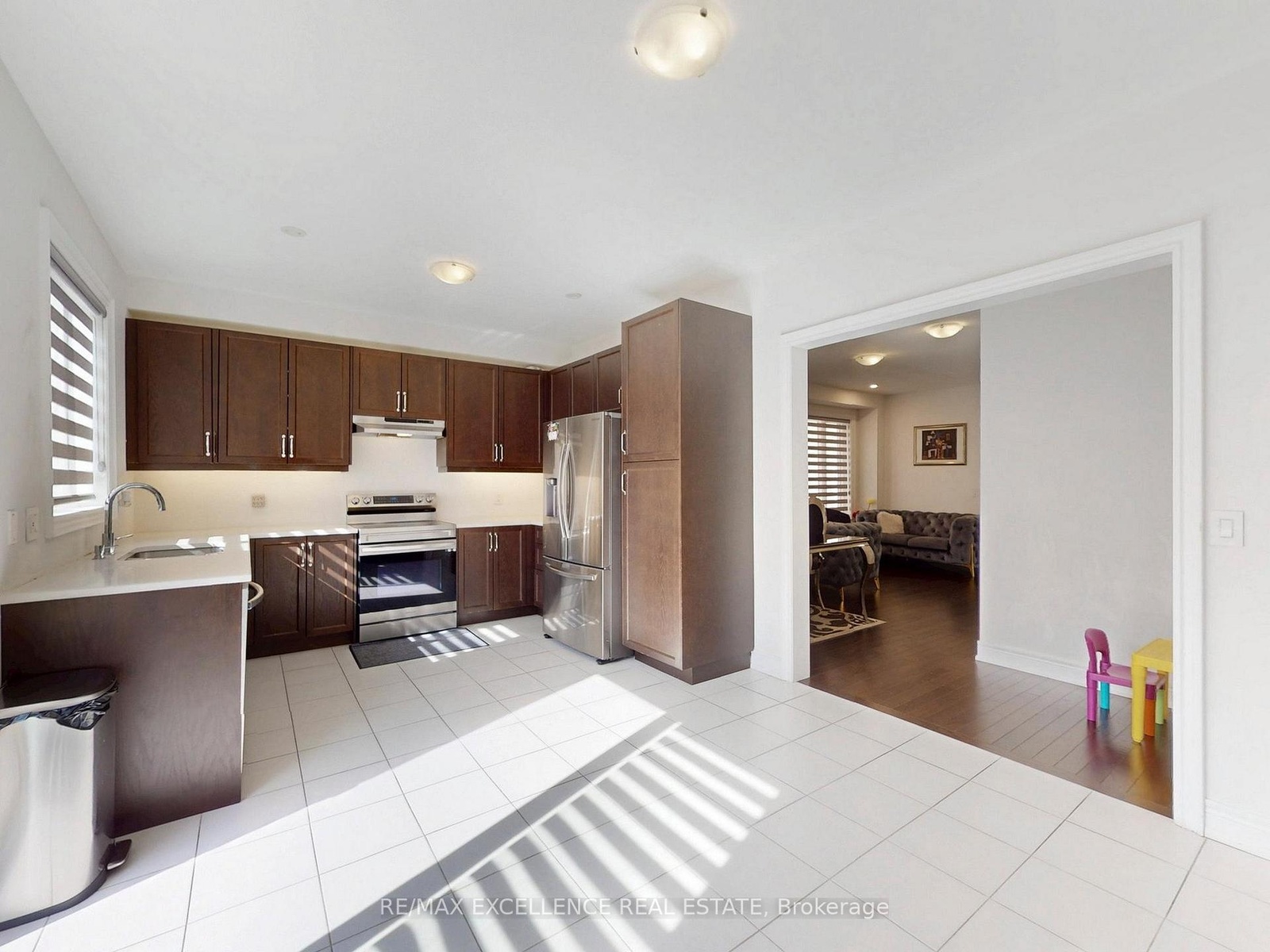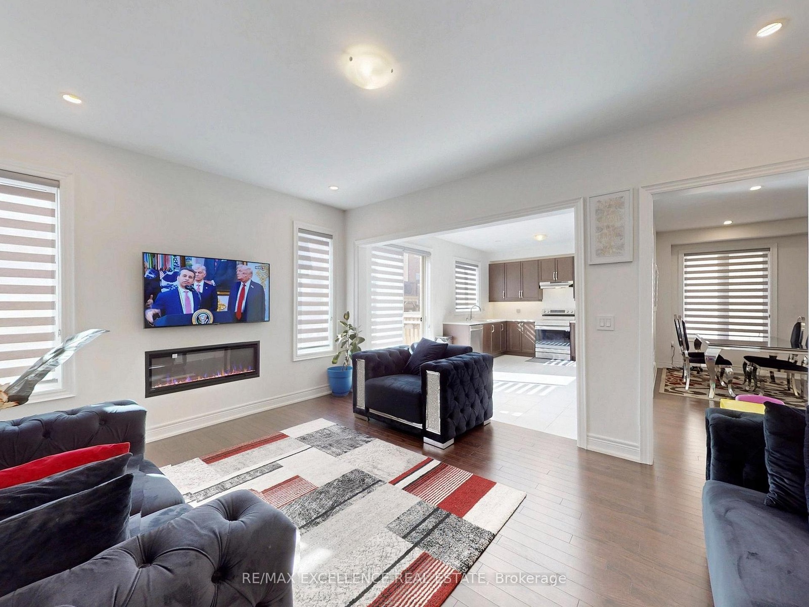 Welcome to the prestigious Mayfield Village at 33 Tiger Crescent, where elegance meets modern living. This stunning 4-bedroom, 4-bathroom fully detached home is set on a premium 90 x 34 fteast-facing lot and showcases an impressive curb appeal with a wide lot, double garage, andgrand double-door entry. Inside, you are greeted with 9 ft smooth ceilings, luxury hardwood floors, and an open-concept design that seamlessly blends the living, dining, and family areas.Oversized windows with zebra blinds bathe the home in natural light, while pot lights and anelectric heated fireplace add warmth and sophistication. The chef-inspired kitchen is beautifully upgraded with quartz countertops, stylish cabinetry, and stainless steel appliances. Oakwood stairs with iron pickets lead to the second level, where a spacious loft connects four generous bedrooms. The primary suite features a spa-like 5-piece ensuite with a floating tub and walk-in closet, two bedrooms are joined by a Jack & Jill washroom, and the fourth bedroom enjoys its own private ensuite. Additional highlights include hardwood flooring throughout the loft and hallway, berber carpet in bedrooms, a main-floor laundry room, and a separate side entrance leading to an unfinished basement thats perfect for future potential.Ideally located close to banks, shopping plazas, Walmart, the Auto Mall, gyms, Tim Hortons, and major highways, this home offers the perfect blend of luxury, convenience, and comfort.