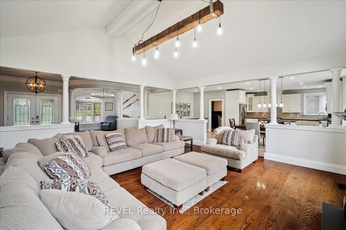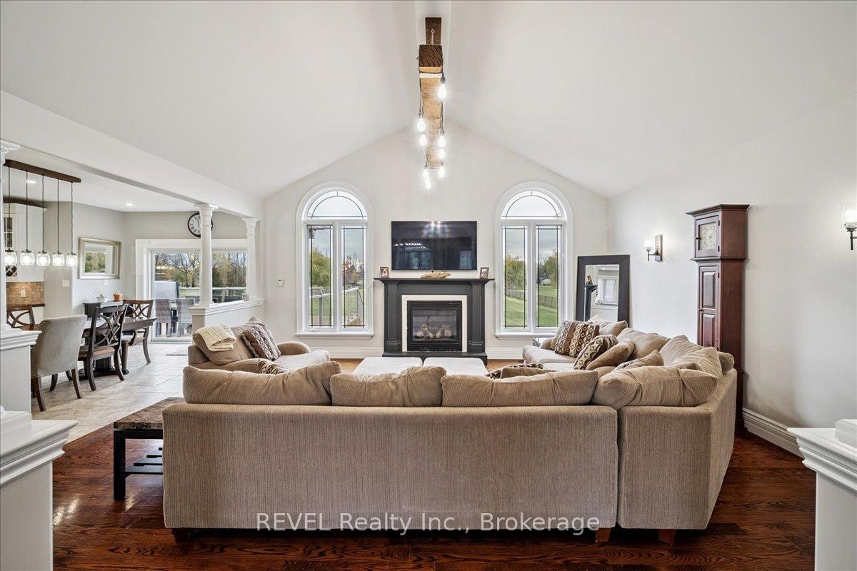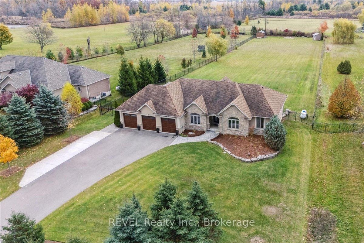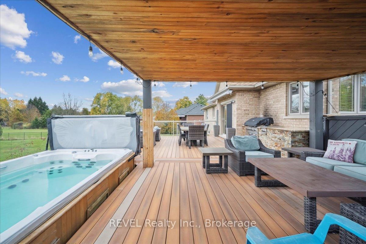 Welcome to your forever home in the serene Hamlet of Millgrove, where timeless design, family-friendly space, and countryside charm meet on an expansive 1.7-acre lot. This stately bungalow offers over 2,366 sq ft on the main floor plus a fully finished basement, with 6 total bedrooms and 3 full bathrooms - ideal for growing or multi-generational families. Inside, you'll find vaulted ceilings and a seamless open-concept layout connecting the kitchen, dining, and living areas. The custom kitchen features granite countertops, a large center island, and ample cabinetry, perfect for everyday living or entertaining. The spacious living room features hardwood flooring and a gas fireplace, while a cozy adjacent sitting area offers an inviting place to relax with an electric fireplace. (Can be used as a formal dining room). The main floor also includes an oversized primary suite with walk-in closet and ensuite, 2nd bedroom, main-floor laundry, and a third bedroom currently used as a home office with built in desks. Downstairs, the fully finished basement adds even more flexibility with 3 additional bedrooms, a large rec room with additional space for a games area (pool table-sized), a home gym, and a second gas fireplace, perfect for hosting or future in-law suite potential. Outside, enjoy your private resort-style backyard: a composite deck with covered lounge area, built-in outdoor kitchen, and a saltwater swim spa for year-round enjoyment. The fenced yard features a putting green, armour stone firepit, shed, and greenhouse, all with a mixture of mature trees and open views. Additional features include a Generac system, and a heated triple car garage with epoxy floors. This is a rural gem just minutes to Waterdown, Dundas, and Burlington, you'll love the balance of peaceful living with easy access to top-rated schools, Conservation areas, golf, and commuter routes. This is more than a home, it's a lifestyle upgrade. Space. Privacy. Comfort. It's all waiting for you.