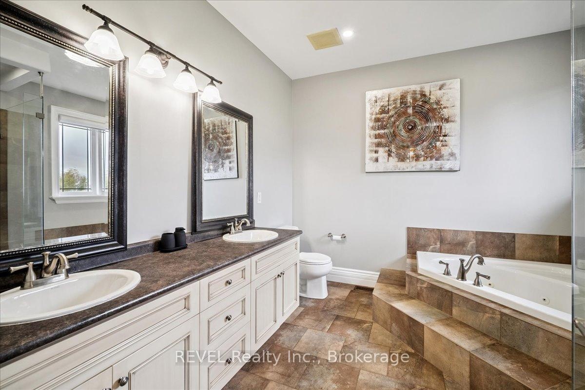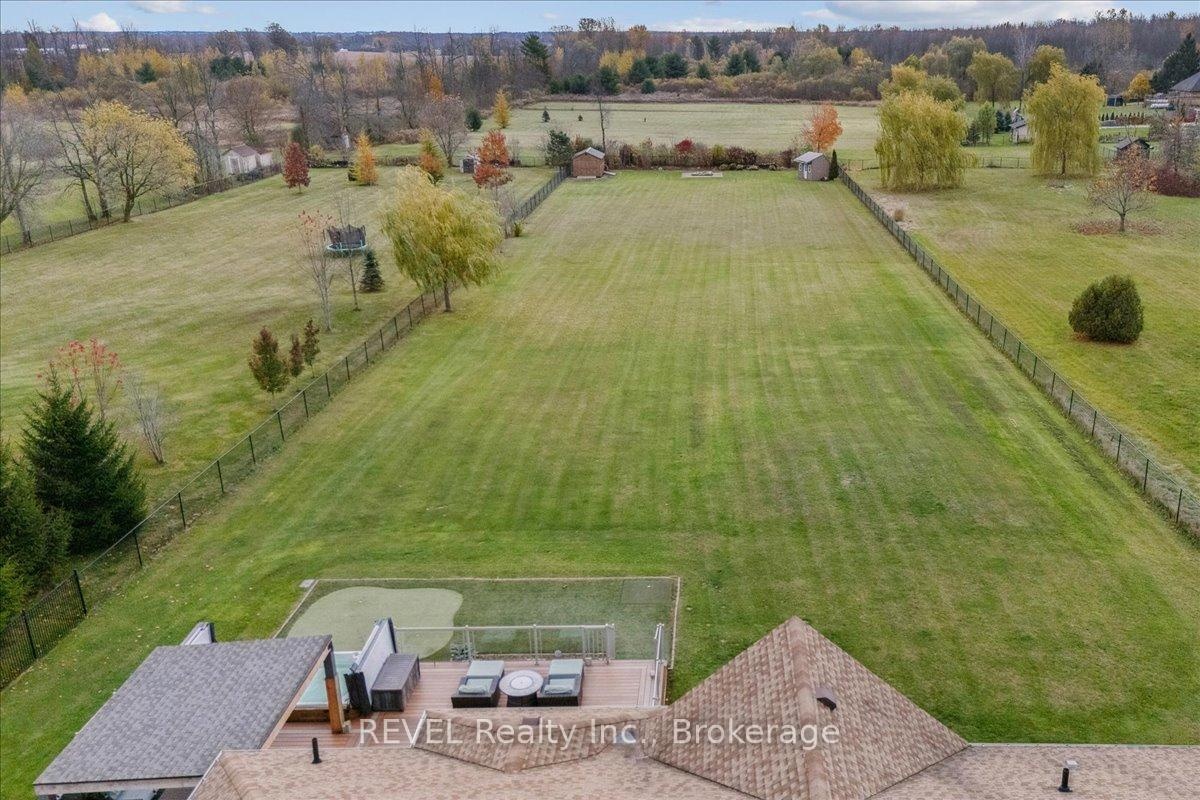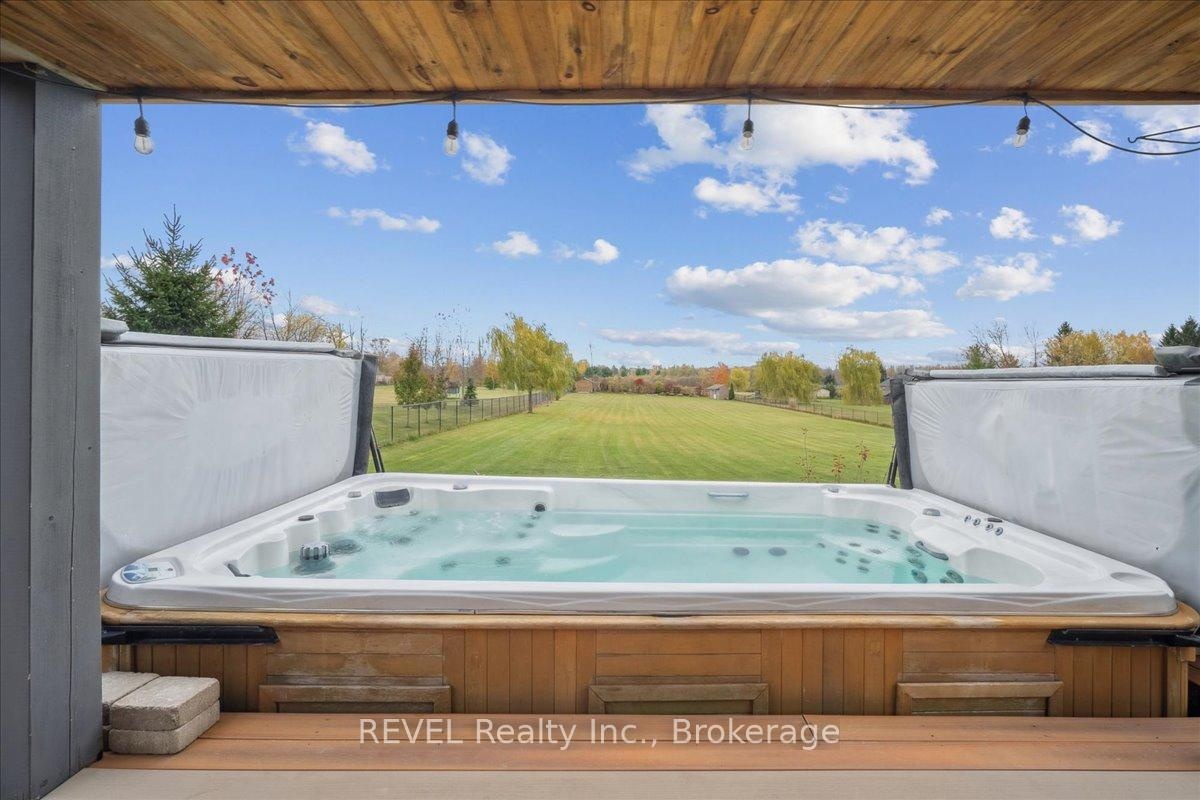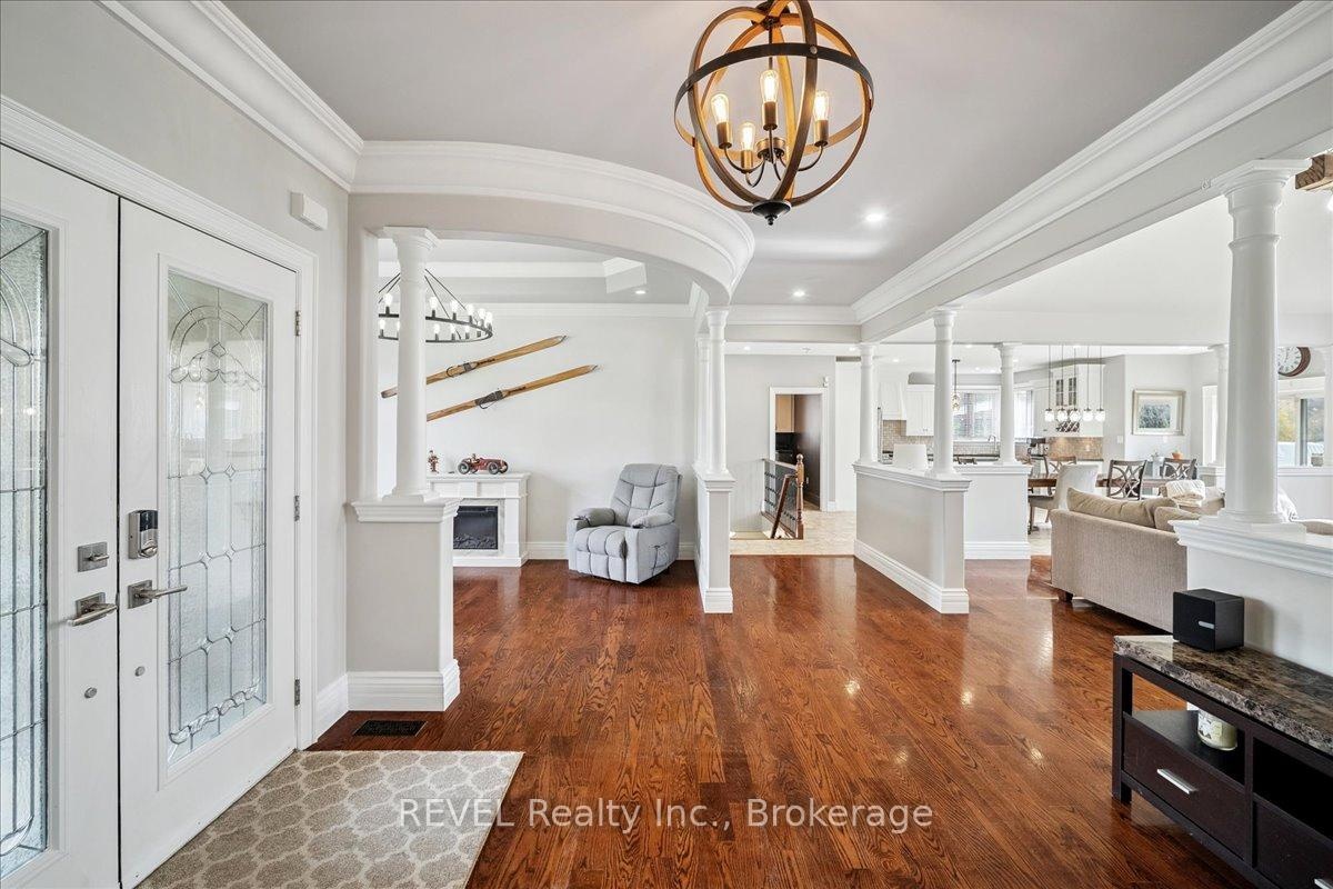 Welcome to your forever home in the serene Hamlet of Millgrove, where timeless design, family-friendly space, and countryside charm meet on an expansive 1.7-acre lot. This stately bungalow offers over 2,366 sq ft on the main floor plus a fully finished basement, with 6 total bedrooms and 3 full bathrooms - ideal for growing or multi-generational families. Inside, you'll find vaulted ceilings and a seamless open-concept layout connecting the kitchen, dining, and living areas. The custom kitchen features granite countertops, a large center island, and ample cabinetry, perfect for everyday living or entertaining. The spacious living room features hardwood flooring and a gas fireplace, while a cozy adjacent sitting area offers an inviting place to relax with an electric fireplace. (Can be used as a formal dining room). The main floor also includes an oversized primary suite with walk-in closet and ensuite, 2nd bedroom, main-floor laundry, and a third bedroom currently used as a home office with built in desks. Downstairs, the fully finished basement adds even more flexibility with 3 additional bedrooms, a large rec room with additional space for a games area (pool table-sized), a home gym, and a second gas fireplace, perfect for hosting or future in-law suite potential. Outside, enjoy your private resort-style backyard: a composite deck with covered lounge area, built-in outdoor kitchen, and a saltwater swim spa for year-round enjoyment. The fenced yard features a putting green, armour stone firepit, shed, and greenhouse, all with a mixture of mature trees and open views. Additional features include a Generac system, and a heated triple car garage with epoxy floors. This is a rural gem just minutes to Waterdown, Dundas, and Burlington, you'll love the balance of peaceful living with easy access to top-rated schools, Conservation areas, golf, and commuter routes. This is more than a home, it's a lifestyle upgrade. Space. Privacy. Comfort. It's all waiting for you.