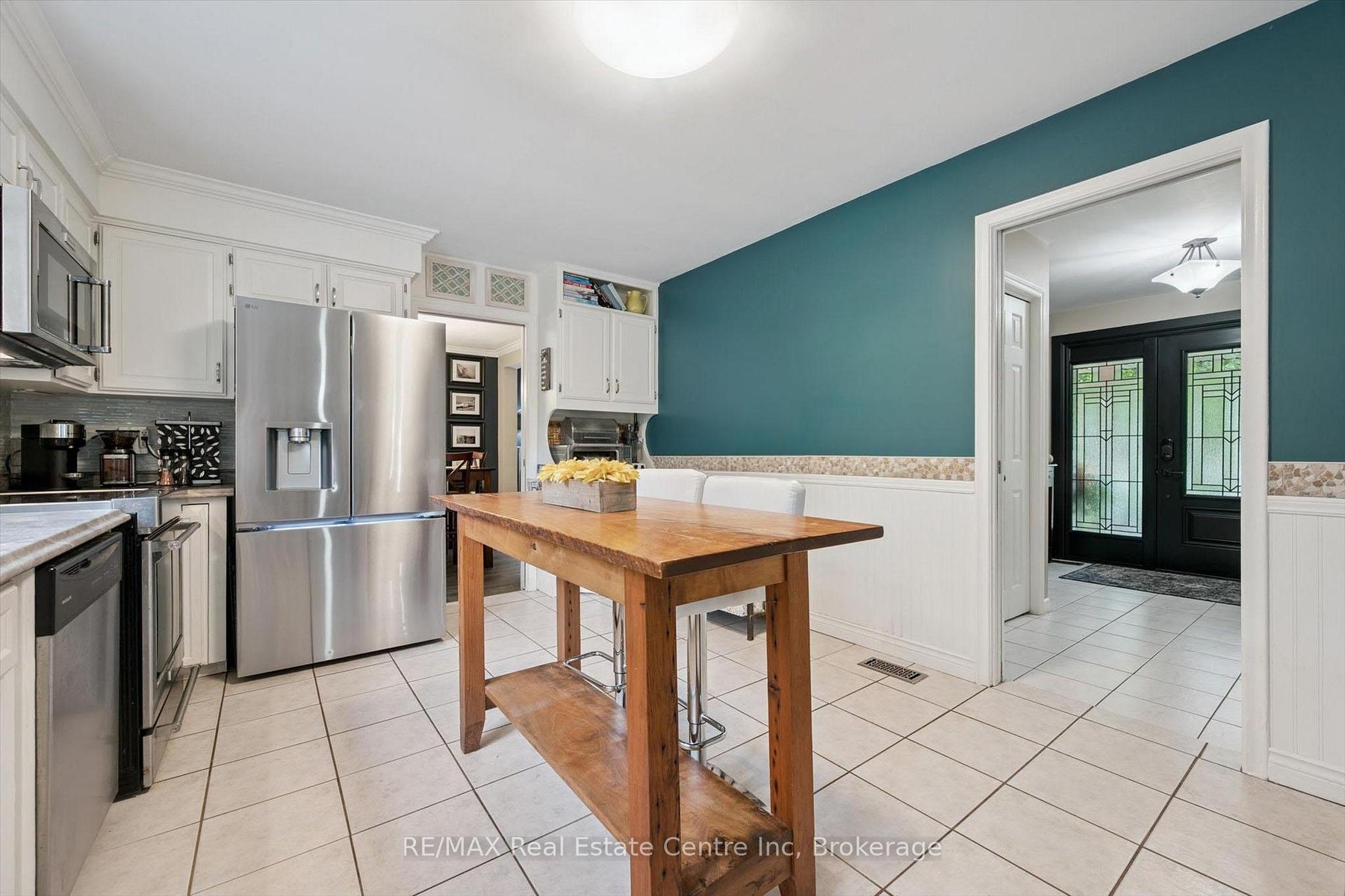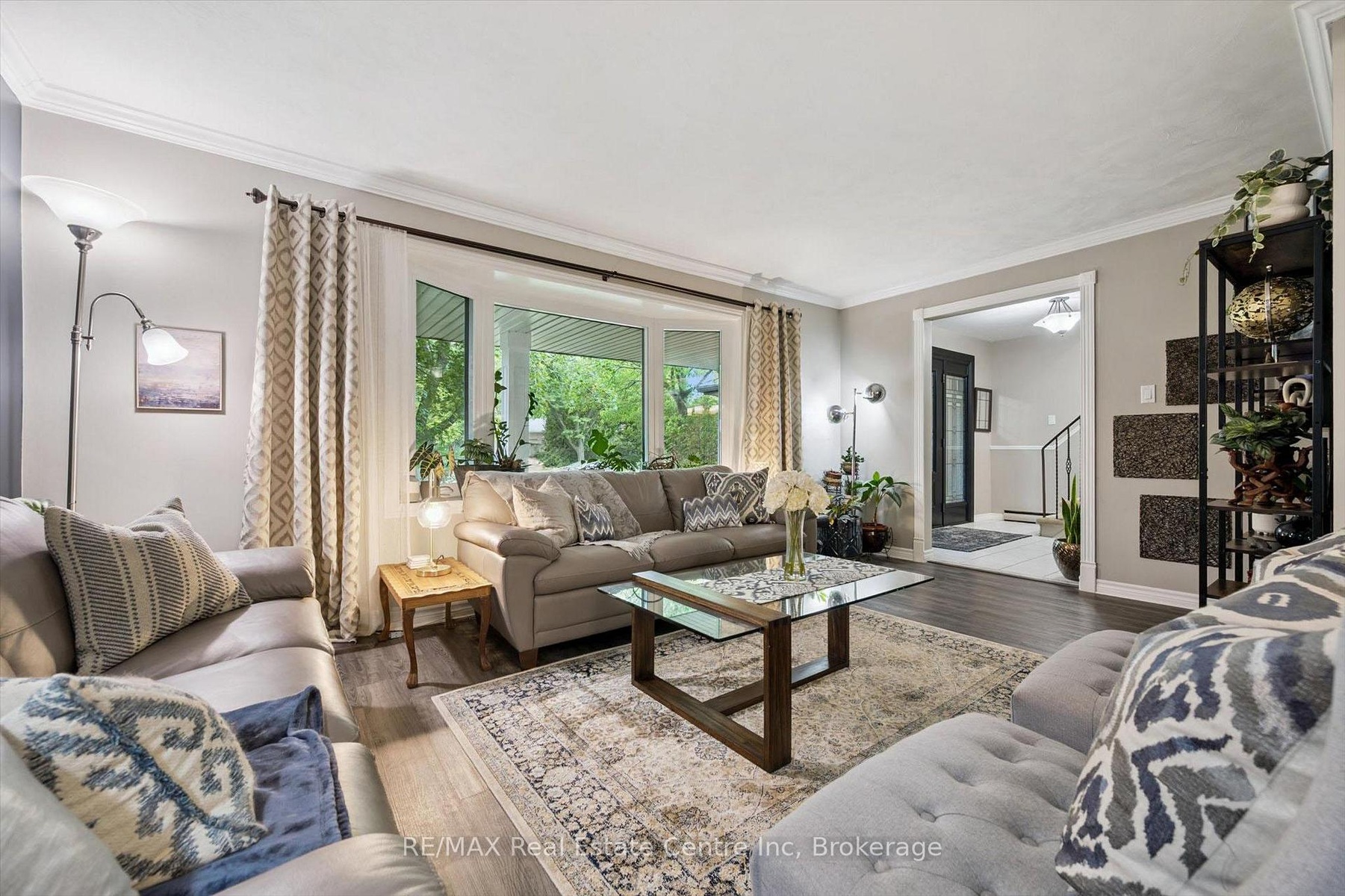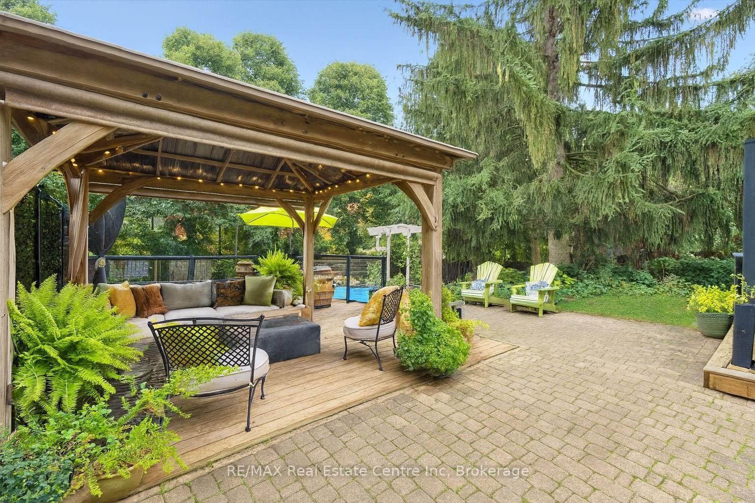 Welcome to your own private backyard oasis in one of Guelph's most peaceful cul-de-sacs! Backing onto greenspace for true privacy this spectacular 4-bdrm home offers 20 X 40 heated inground pool & outdoor retreat designed for relaxation & entertaining. Step inside & you'll immediately notice the bright inviting layout. Living room W/luxury vinyl floors & large picture window that fills space W/natural light. Dining room W/beautiful views of backyard make every meal feel special. Kitchen W/high-end S/S appliances, lots of storage & prep space. Window above sink overlooks mature trees for peaceful backdrop. A few steps down is family room anchored by gas fireplace & sliding doors that walk out to backyard retreat. Upstairs the primary bdrm offers double his-and-hers closets & modern ensuite W/glass W/I shower. 3 add'l bdrms provide generous closet space & natural light complemented by updated 4pc bath W/subway-tile shower/tub. Professionally finished basement adds more versatility W/large rec area, workout zone & storage. Backyard is truly the star of the show! Enjoy large deck W/pergola, interlock patio, secondary deck W/gazebo & mature landscaping surrounding heated inground pool. Brand-new pool house & recently serviced mechanicals provide peace of mind. Beyond the fenced pool area, a bonus greenspace offers endless possibilities-room for volleyball court, play area or future accessory dwelling unit (ADU) for extended family or rental income. Updates include: newer windows, newer electrical panel, furnace & AC (approx. 10yrs), roof (approx. 12yrs), updated bathrooms, modern light fixtures & upgraded flooring. With double garage & driveway parking is a breeze. Location is ideal for families-backing onto Windsor Park, steps to Waverley Dr PS & short walk to Speedvale Centre (grocery, LCBO & more). Nearby trails & Guelph Lake offer countless ways to stay active & connected to nature. Home offers perfect blend of lifestyle, comfort & long-term value-truly a rare find!