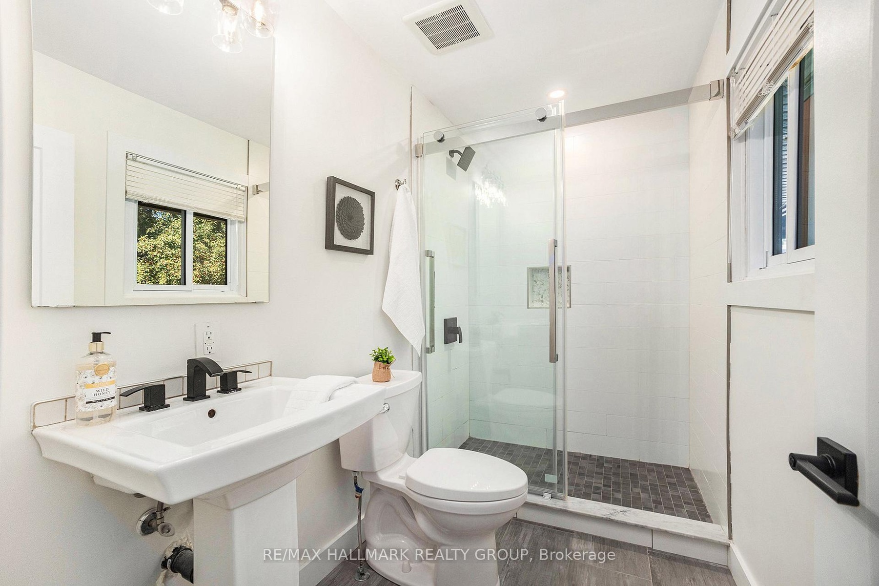 Welcome to this customized "Mid Century Modern" in sought after Beaverbrook Kanata. Walk to some of the cities best schools, leisure pathways, shopping & great dining options. This home offers the finest of finishes w environmentally conscious upgrades. Truly spacious 3 bedroom with 3 bedrooms on the lower level for guests, work or craft space or can be rented out as a full seperate suite for additional income. This home also has 3 full bathrooms including a full ensuite bathroom. The main level features rich hardwood floors, an open-concept layout, & a cozy wood-burning brick fireplace dividing the living and dining areas. Floor-to-ceiling windows fill the home w natural light, while a terrace door opens to an oversized deck w a gazebo a & private landscaped garden w mature trees & shrubbery-perfect for summer gatherings or quiet relaxation. The chef's kitchen boasts quartz counters, stainless steel appliances, ample cabinetry & counter space for food preparation. The layout continues w 3 bedrooms all w double or triple closets. The primary suite offers plenty of space for a king sized bedroom set & has 3 piece ensuite bathroom w a glass shower. The main bath room has double sinks, quartz counters & a full tub/shower. Looking for a mudroom? The entrance from the double garage allows lots of space for outerwear & the laundry is located here as well (second laundry on the lower level). Next is the finished lower level offering remarkable versatility. Heated floors throughout! Generous recreation room & media room, plus a full kitchen, 3 bedrooms, full bath, laundry -ideal for teens, multi-generational living, or an additional revenue stream (approx. $2,100/month)Notable upgrades: hydronic in-floor radiant heating on both levels, main-level heat pump for seasonal comfort, high-efficiency tankless water system, 200-amp electrical, updated plumbing & recently re-shingled roof. Complete with a spacious 2-car garage, this home blends timeless design w modern comfort.