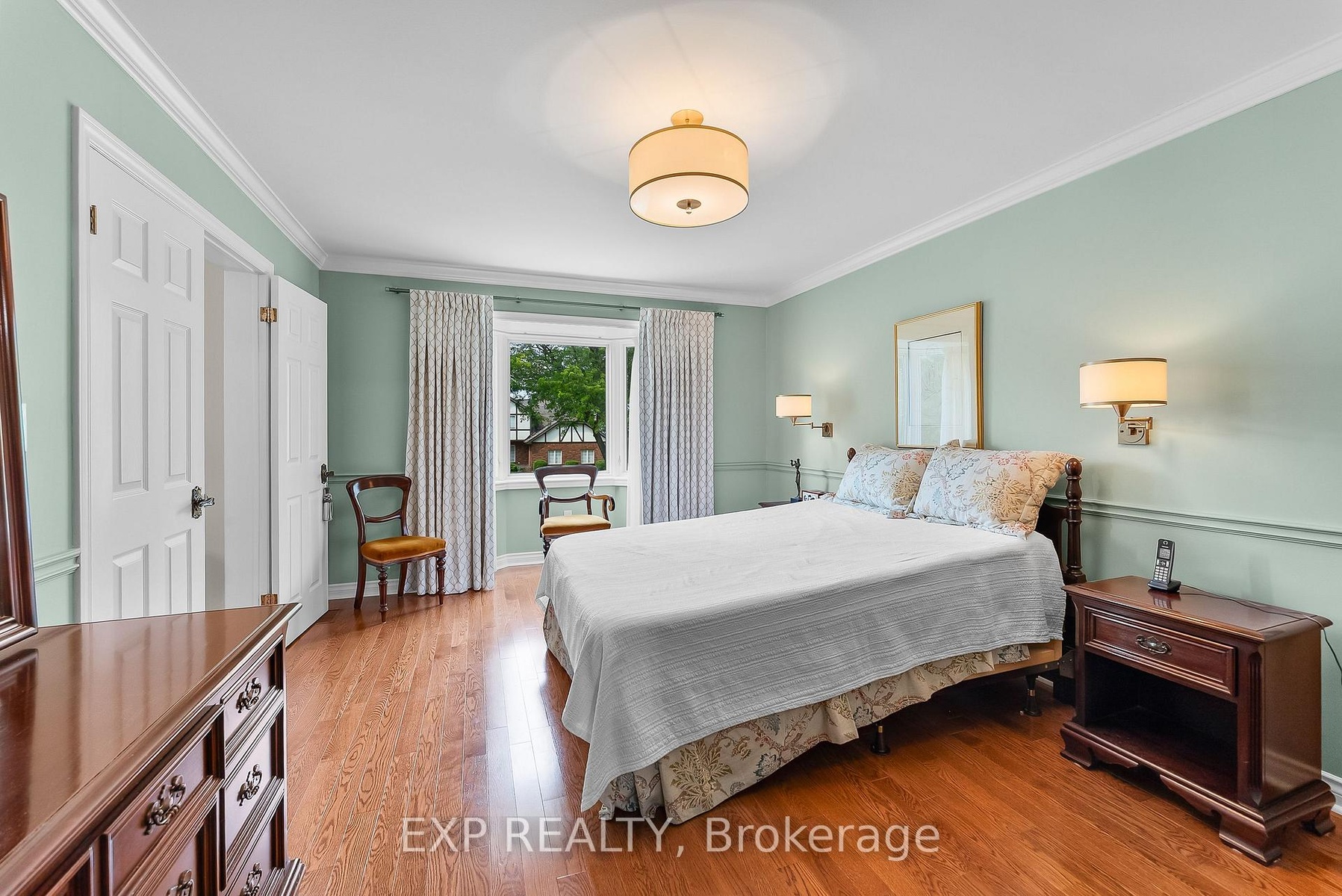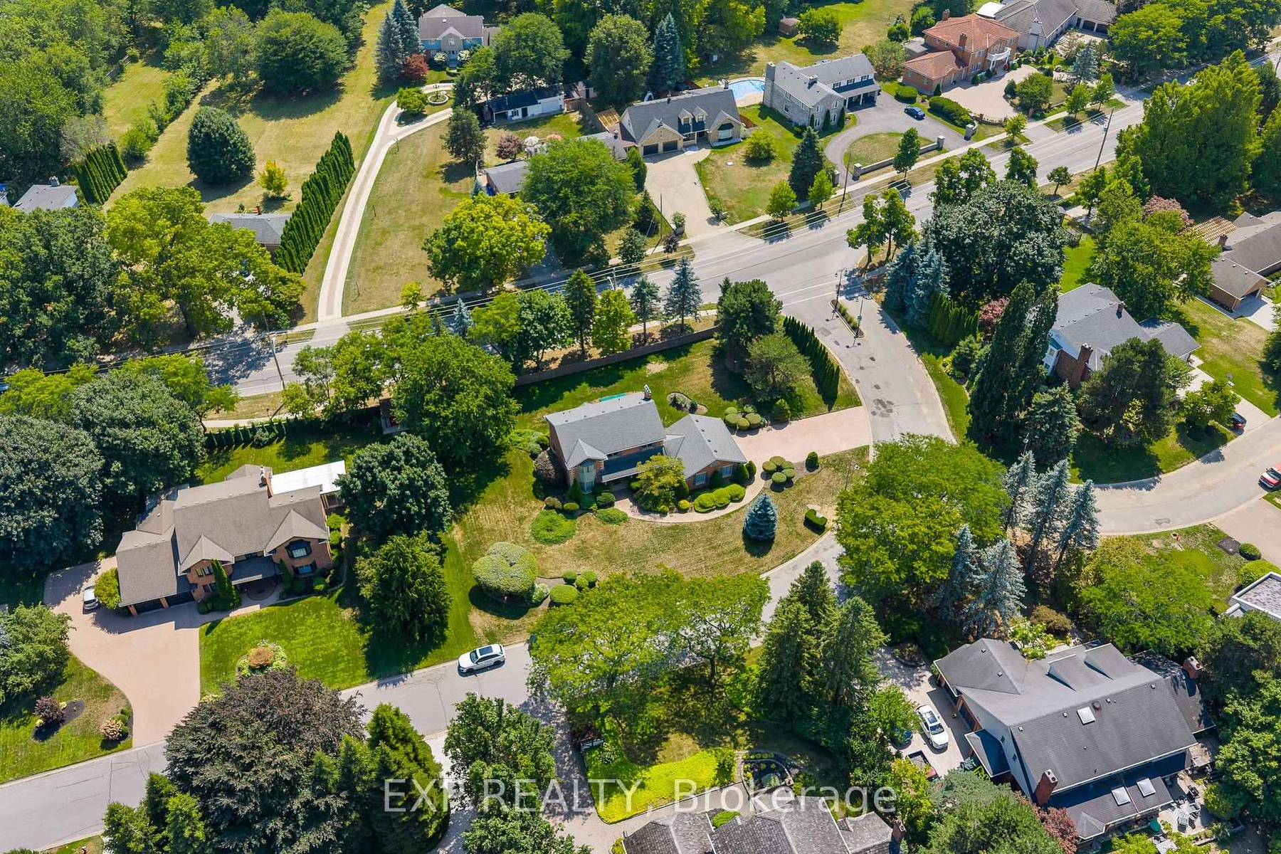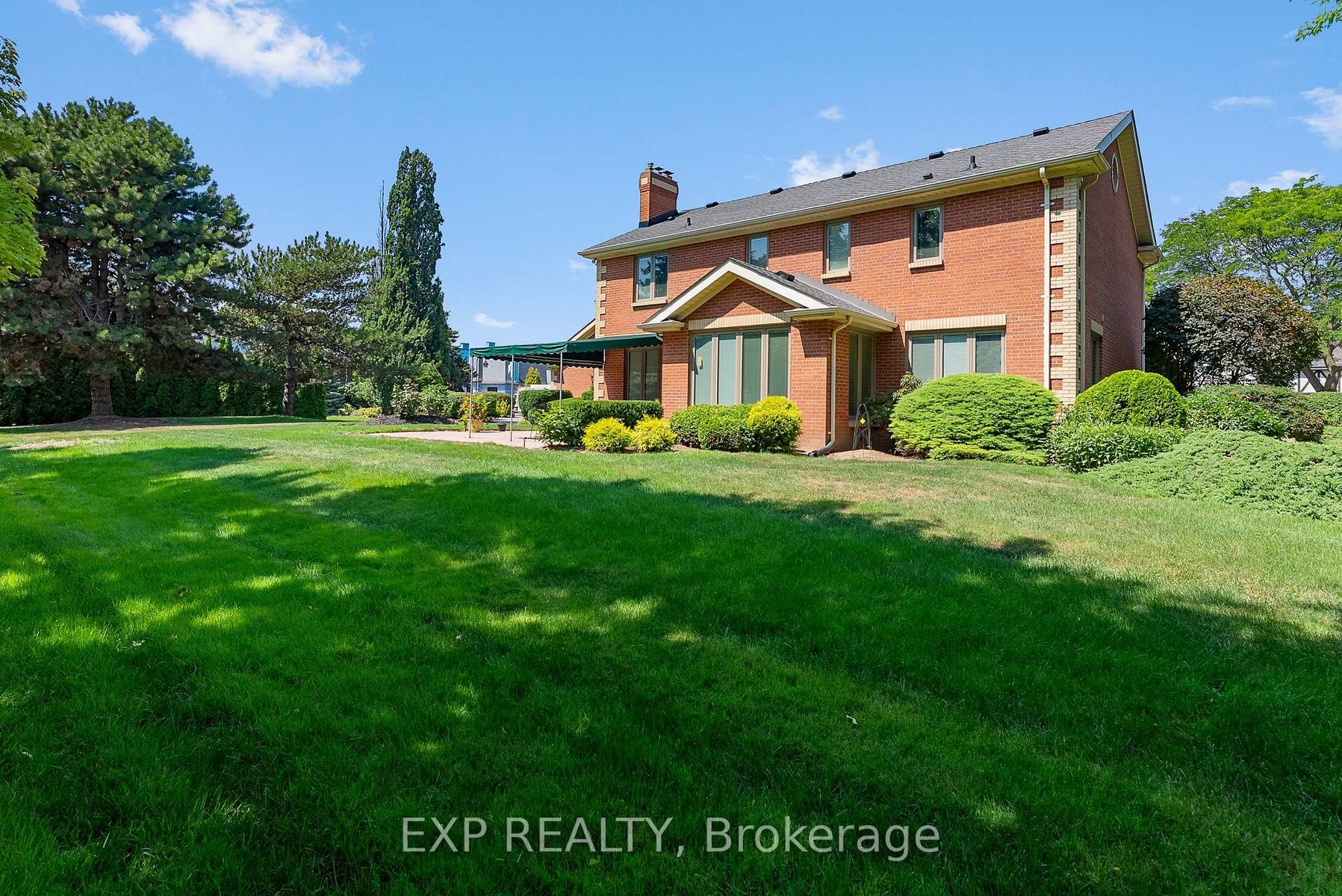 Welcome to 6748 January Drive.Nestled in Niagara Falls' prestigious Calaguiro Estates, this stately two-storey brick home stands as one of the community's original gems - a testament to quality craftsmanship and timeless design. Built by renowned Niagara homebuilder Frank Costantino of Costantino Construction Ltd, this residence offers enduring value and character rarely seen today.Set on a private 157 x 166-foot corner lot, the property is surrounded by mature trees and manicured gardens, offering an exceptional sense of privacy within the city. With more than 2,500 sq. ft. above grade plus a professionally finished lower level, the home provides generous space for comfortable everyday living and elegant entertaining. Inside, light-filled rooms reflect decades of thoughtful care. The main floor flows seamlessly from formal living and dining rooms with rich hardwood floors to a warm, inviting family room anchored by a classic gas fireplace. The bright eat-in kitchen opens directly to the back terrace, creating an effortless connection between indoor comfort and outdoor relaxation.Upstairs, the serene primary suite overlooks the gardens, complemented by three additional bedrooms - perfect for family, guests, or a home office. The lower level extends the living space with a large recreation area ideal for movie nights, games, or future in-law potential.Outdoors, the backyard forms a private sanctuary with a broad patio and retractable awning for long summer evenings, plus space to garden, play, or even add a pool or future addition. A double garage and extended driveway easily accommodate up to eight vehicles. Situated moments from top schools, parks, and shopping, this home blends classic architecture, enduring craftsmanship, and exceptional space in one of Niagara's most desirable neighbourhoods.