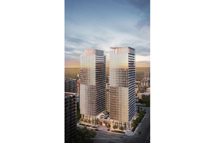 ASSIGNMENT SALE - UNDER CONSTRUCTION - Spring 2027 OCCUPANCY. Be among the first to own a stunning new condo in this highly anticipated development in Downtown Hamilton, currently under construction with an expected occupancy in Spring 2027. This assignment sale offers a unique opportunity to secure your future home before completion. Owners and residents will enjoy a suite of luxurious hotel-like amenities, including an outdoor infinity pool, a state-of-the-art fitness center, an exclusive sky club & a co-op tech center providing a collaborative work space ideal for modern work-from-home lifestyles. Families will appreciate the children's playcenter, private dog walk, and convenient pet-washing station. Suite Features: 9-foot ceilings in principal rooms, Large windows filling the suite with natural light, foyer ceilings finished with smooth drywall painted white, White painted interior walls (drywall only), Slab-style bathroom, closet, and washer/dryer room doors with brushed chrome hardware, Vinyl coated wire shelving in all closets, In-suite washer and dryer, Individually controlled heating and air conditioning system. Kitchen Features: Single lever deck-mounted faucet set, Stainless steel appliances including 24" Energy Star frost-free refrigerator, 24" electric freestanding slide-in range, Energy Star dishwasher, and micro vent. Additional Details: Parking and locker available at extra cost, Room sizes are approximate, Builder consent is required to assign, Residential property taxes have not yet been assessed.