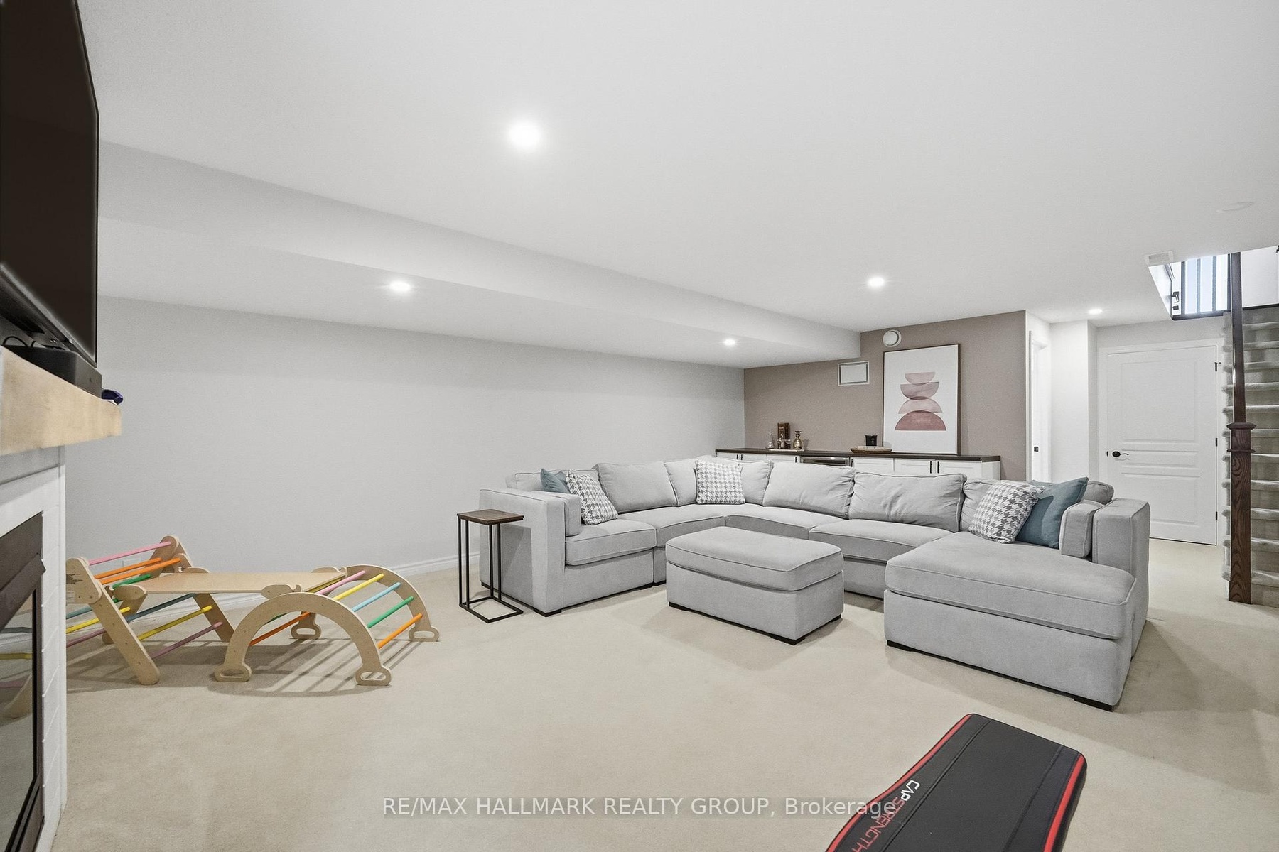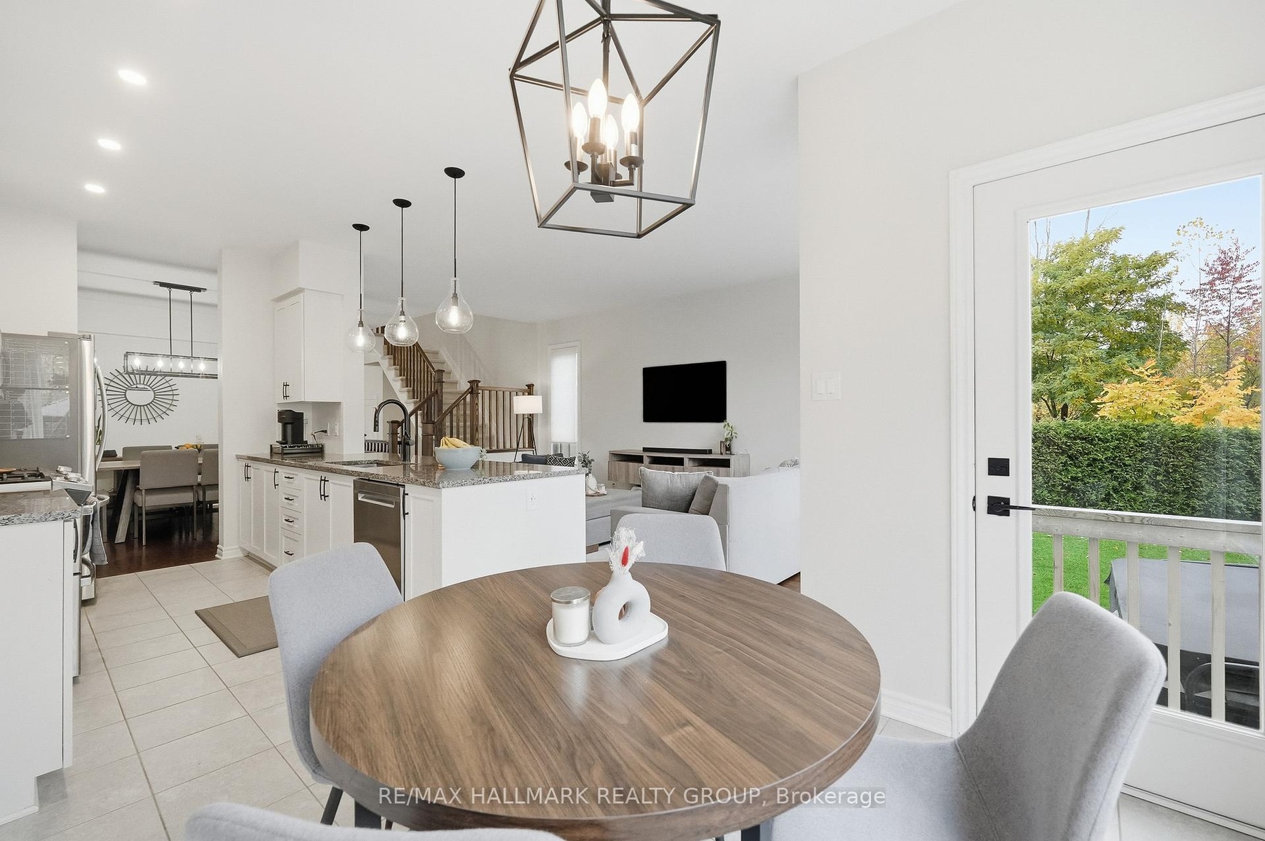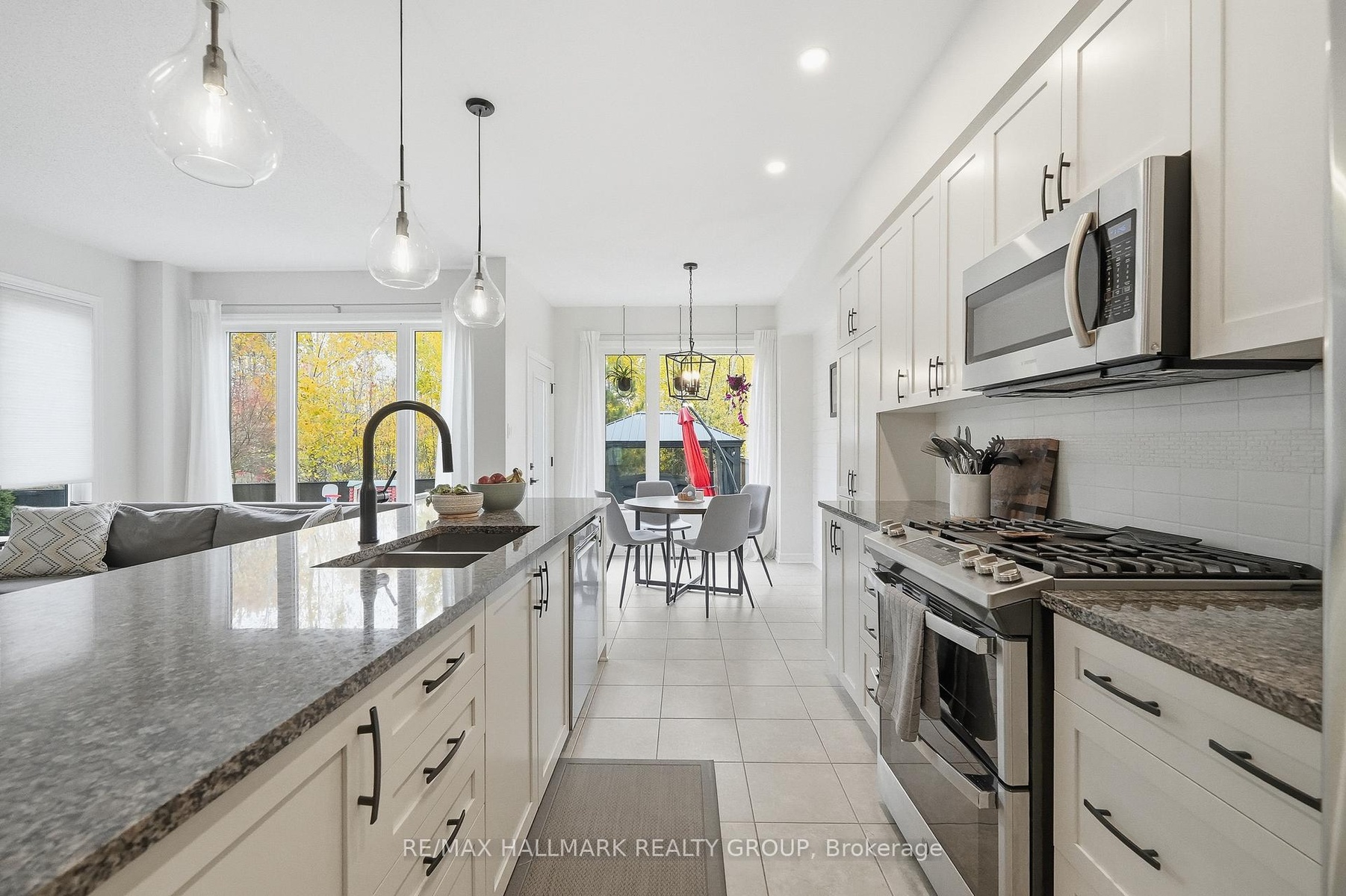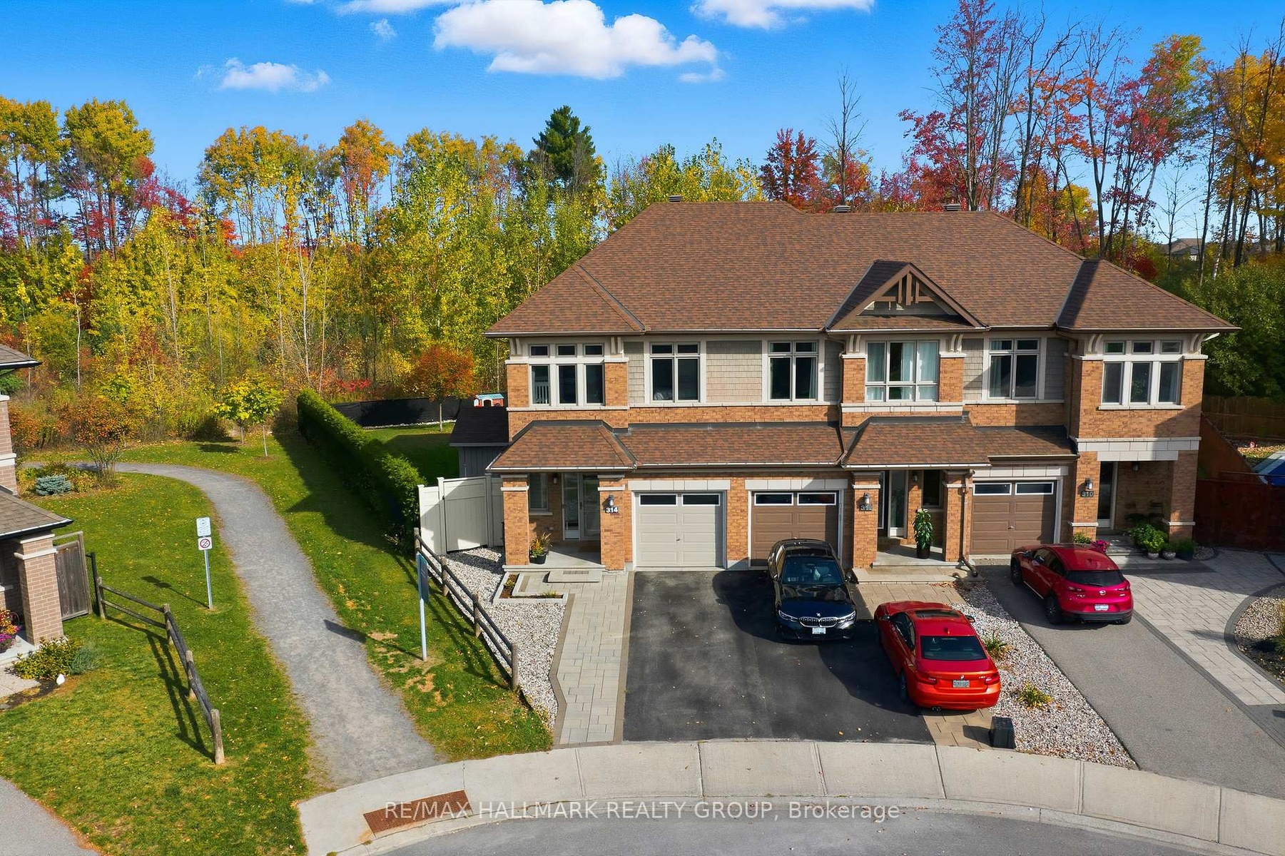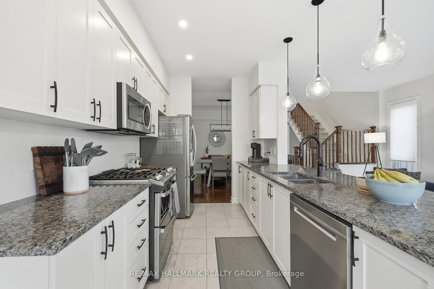 Welcome to this stunning Richcraft Stillwater model! This 3 bedroom + loft end unit townhome is situated on an extra-large pie-shaped lot offering exceptional privacy with no rear neighbours. The main level welcomes you with a spacious foyer that opens to a bright, open-concept living, dining, and kitchen area designed for modern living. Expansive windows fill the space with natural light, showcasing the hardwood flooring throughout the main level and upper hallway. The modern kitchen boasts sleek white cabinetry, stainless steel appliances including a gas stove with double oven, a long breakfast bar, and a convenient coffee nook. From the breakfast area, step outside to your private backyard oasis. Upstairs, you'll find three generous bedrooms, including a primary suite with hardwood flooring, a walk-in closet with built-in shelving, and a spa-inspired ensuite featuring a soaking tub and separate glass shower. The second bedroom also offers a walk-in closet and cheater access to the main bath. Completing this level are the second-floor laundry and a bright loft area - perfect for a home office or reading nook. The finished lower level adds even more living space with a cozy recreation room featuring pot lights, a gas fireplace, and a built-in counter with cupboards and beverage fridge, plus a 3pc bathroom with walk-in shower. A utility room and large storage area complete the level. Outside, the fully fenced and gated backyard features a deck, gazebo, hot tub, and garden shed, with plenty of space for kids, pets, and gardening. A single attached garage with inside entry and two-car laneway provide everyday convenience. Ideally located in Chapel Hill South backing onto trees and a walking path that leads to scenic trails, this home offers quiet, private living just minutes from public transit, schools, parks, recreation, shopping, and restaurants.
