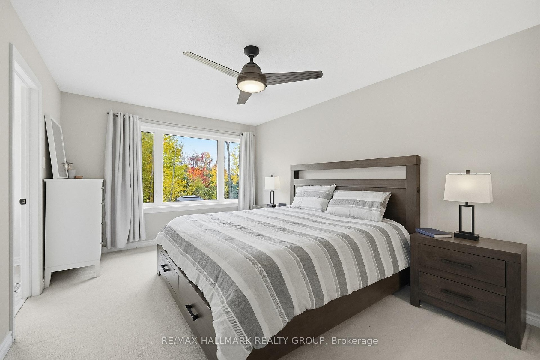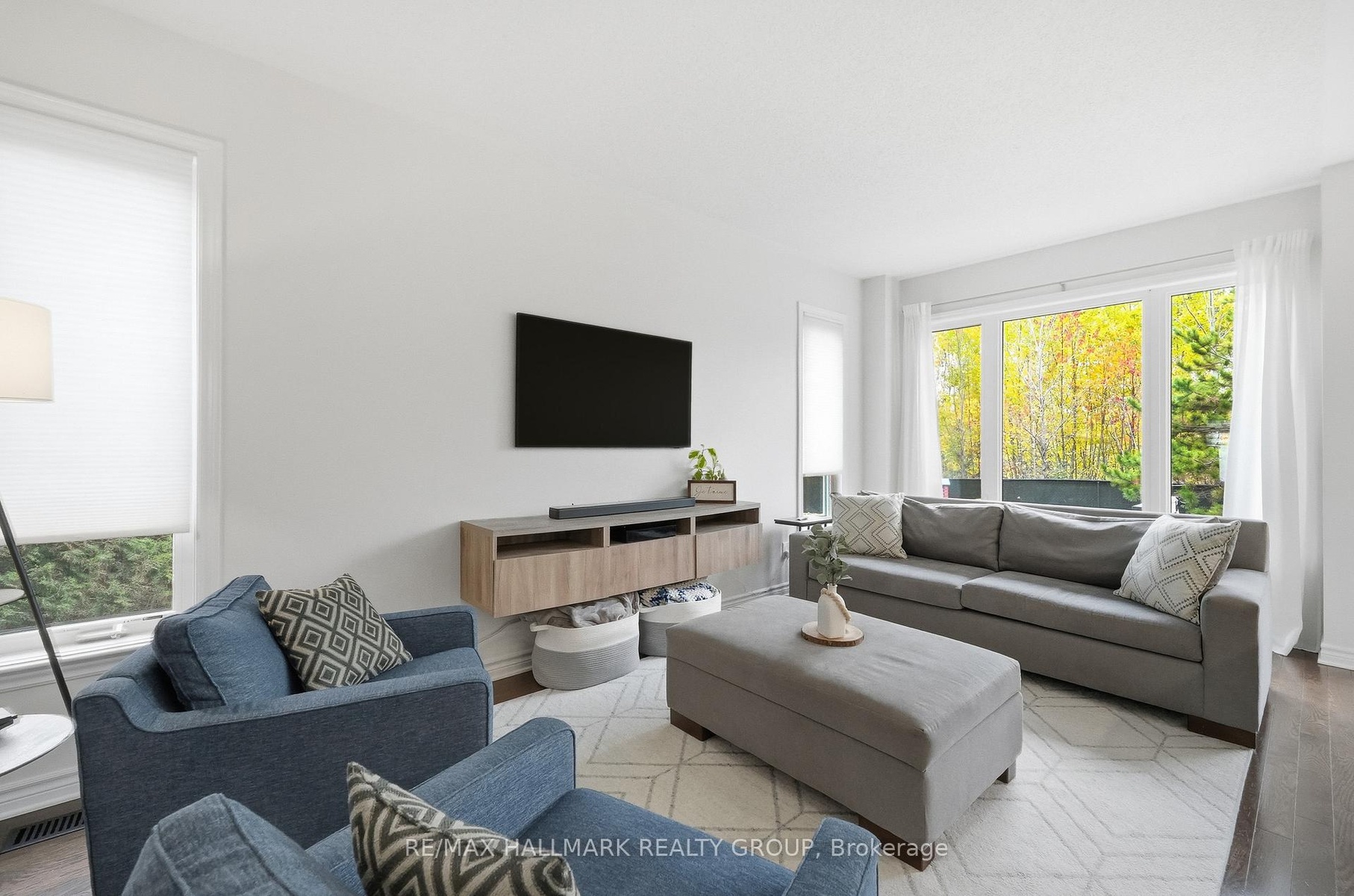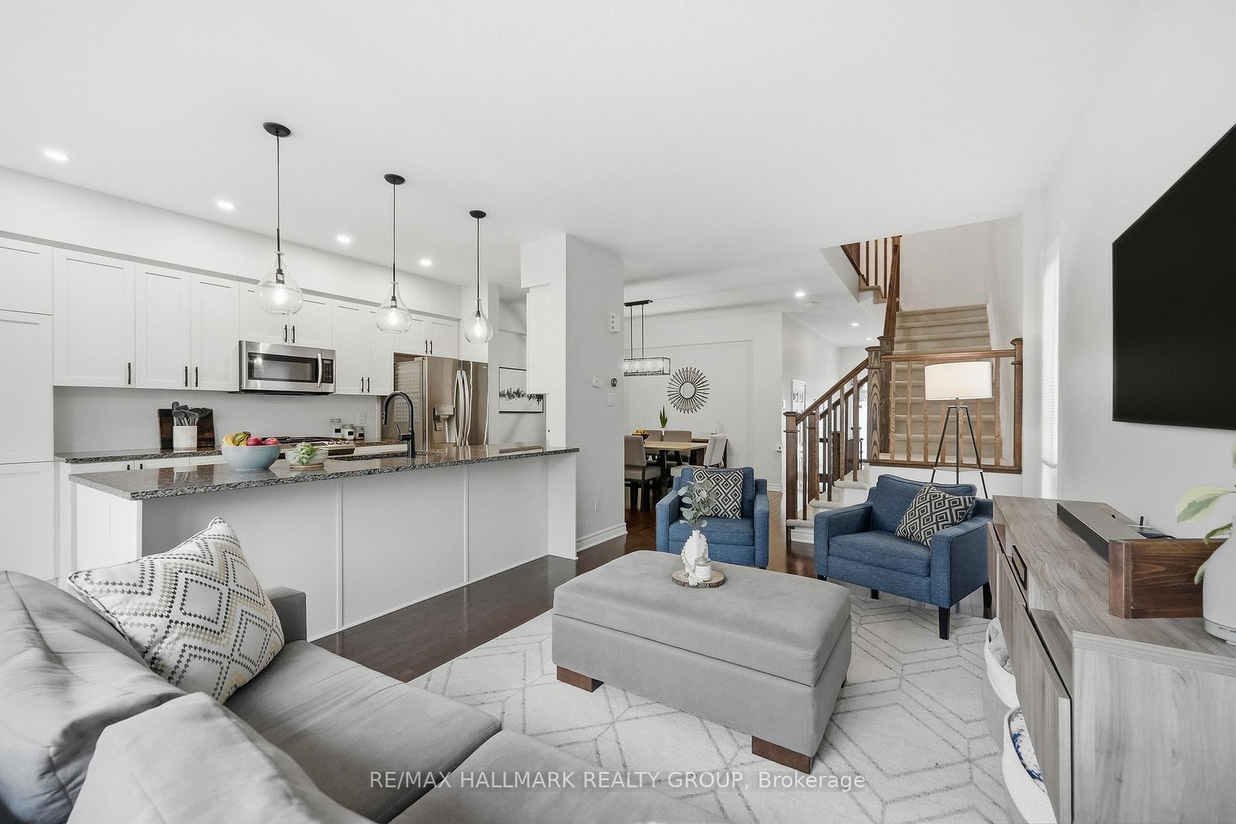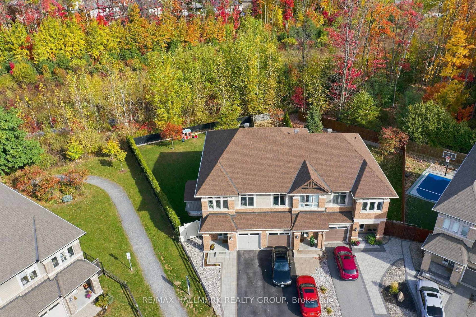 Welcome to this stunning Richcraft Stillwater model! This 3 bedroom + loft end unit townhome is situated on an extra-large pie-shaped lot offering exceptional privacy with no rear neighbours. The main level welcomes you with a spacious foyer that opens to a bright, open-concept living, dining, and kitchen area designed for modern living. Expansive windows fill the space with natural light, showcasing the hardwood flooring throughout the main level and upper hallway. The modern kitchen boasts sleek white cabinetry, stainless steel appliances including a gas stove with double oven, a long breakfast bar, and a convenient coffee nook. From the breakfast area, step outside to your private backyard oasis. Upstairs, you'll find three generous bedrooms, including a primary suite with hardwood flooring, a walk-in closet with built-in shelving, and a spa-inspired ensuite featuring a soaking tub and separate glass shower. The second bedroom also offers a walk-in closet and cheater access to the main bath. Completing this level are the second-floor laundry and a bright loft area - perfect for a home office or reading nook. The finished lower level adds even more living space with a cozy recreation room featuring pot lights, a gas fireplace, and a built-in counter with cupboards and beverage fridge, plus a 3pc bathroom with walk-in shower. A utility room and large storage area complete the level. Outside, the fully fenced and gated backyard features a deck, gazebo, hot tub, and garden shed, with plenty of space for kids, pets, and gardening. A single attached garage with inside entry and two-car laneway provide everyday convenience. Ideally located in Chapel Hill South backing onto trees and a walking path that leads to scenic trails, this home offers quiet, private living just minutes from public transit, schools, parks, recreation, shopping, and restaurants.
