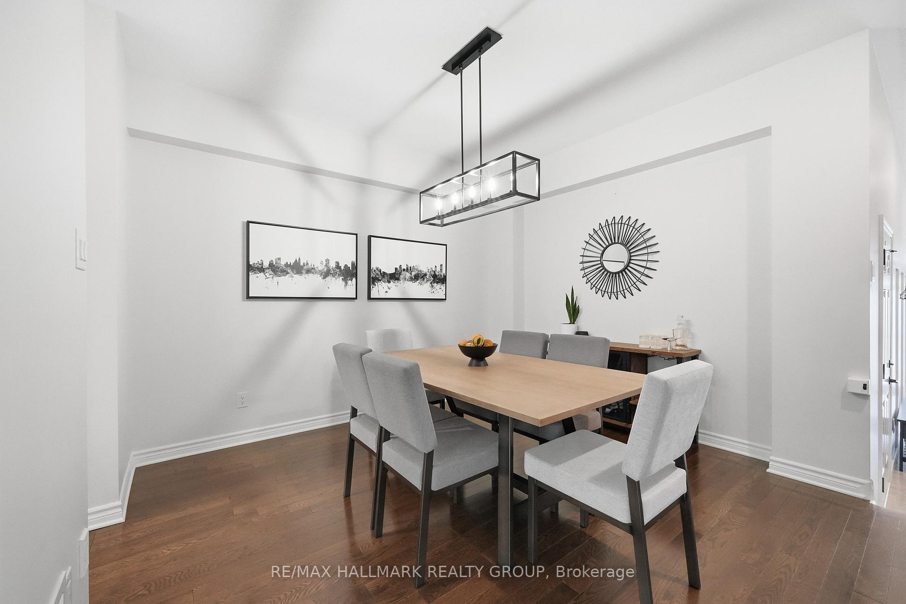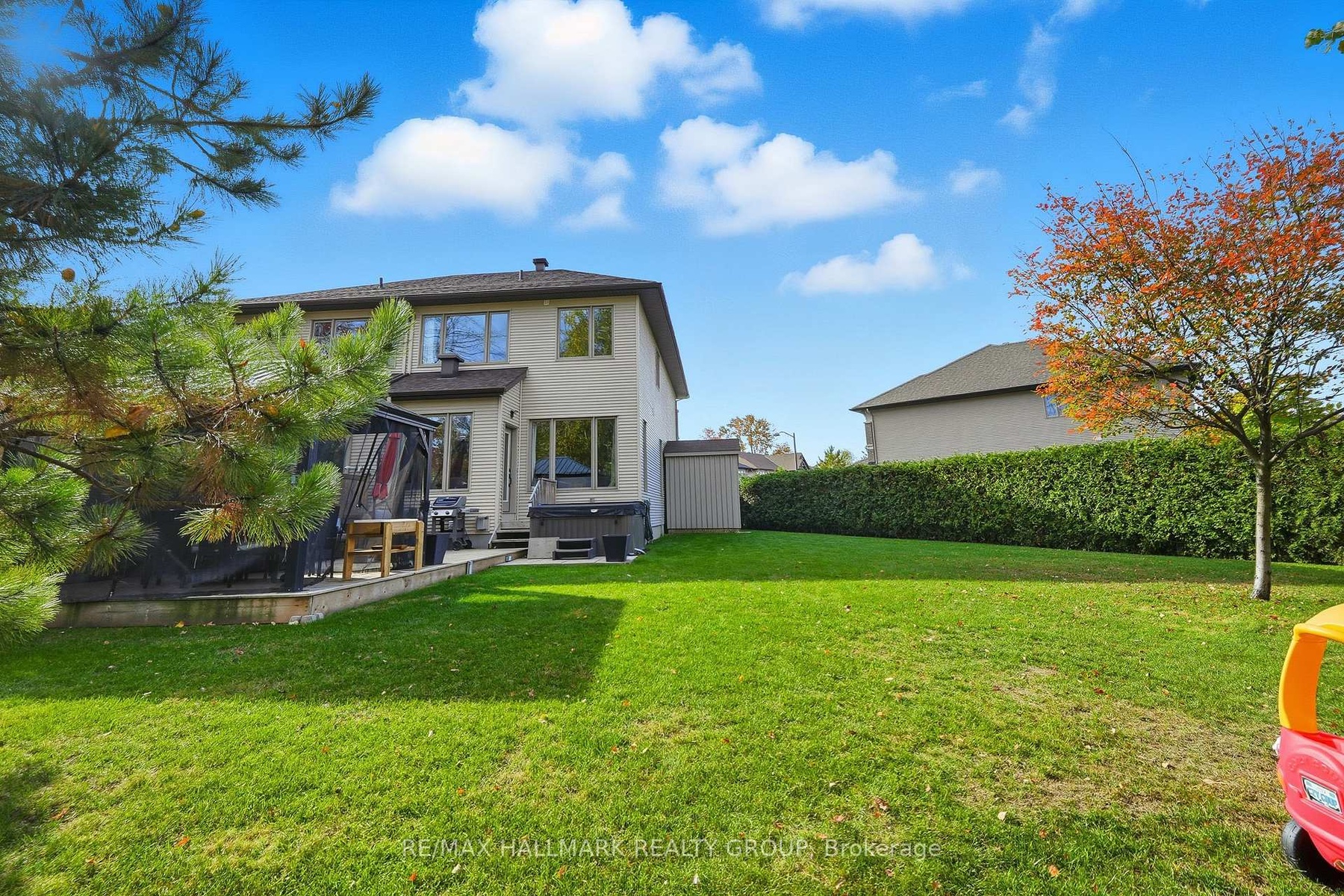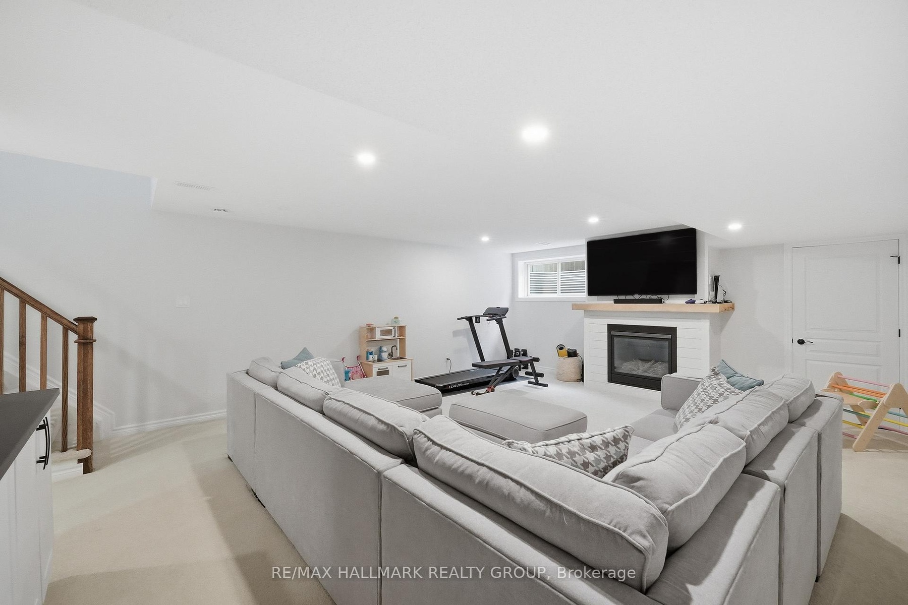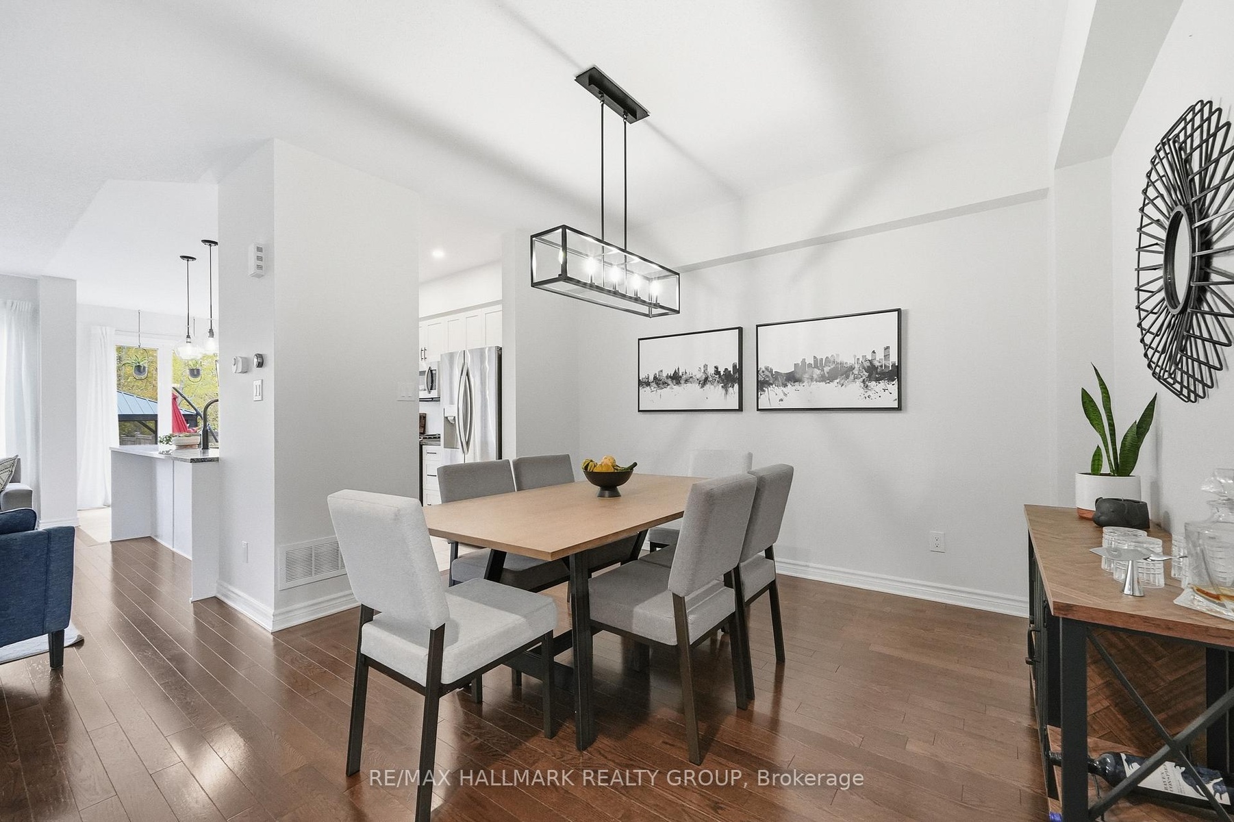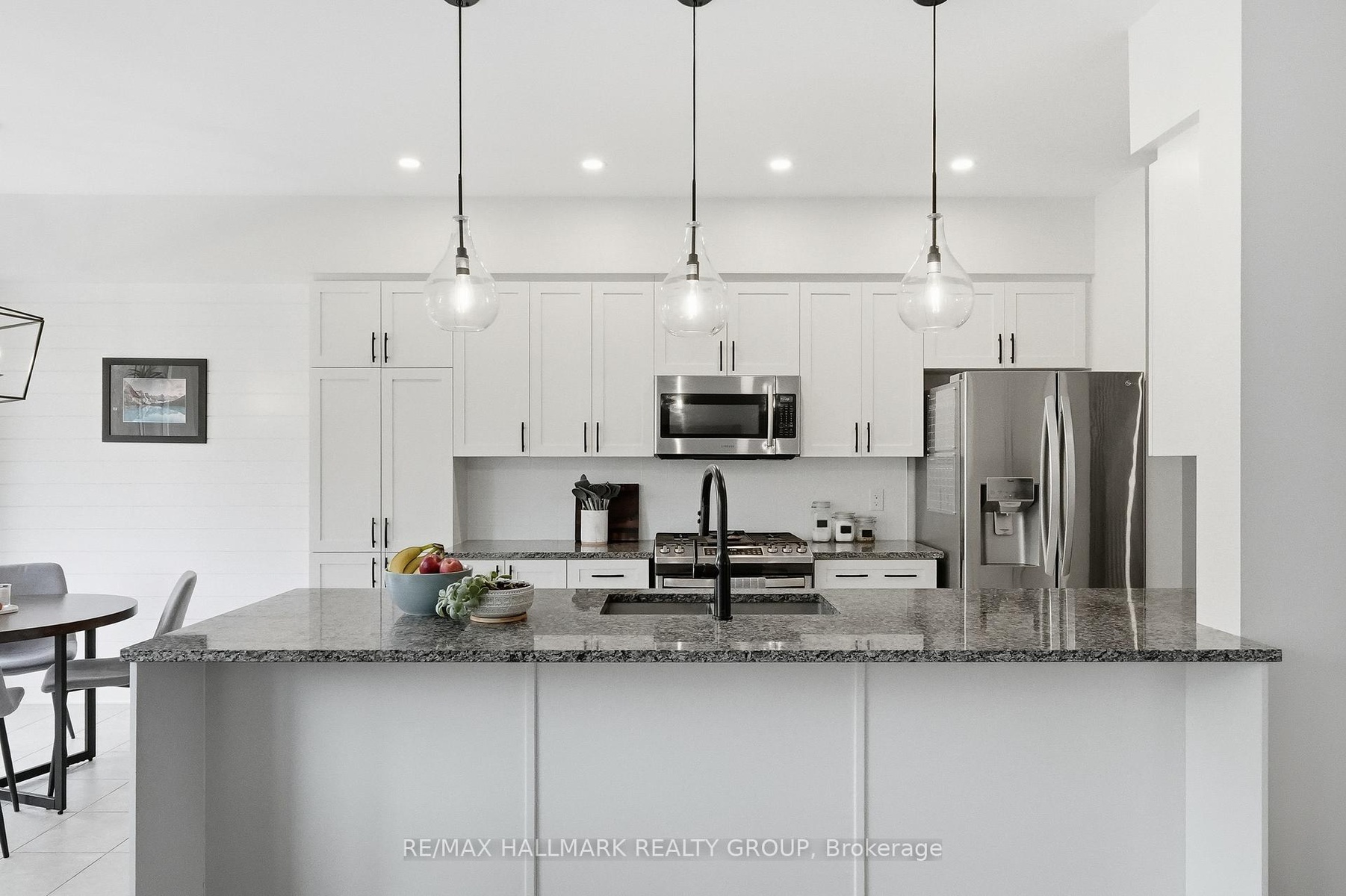 Welcome to this stunning Richcraft Stillwater model! This 3 bedroom + loft end unit townhome is situated on an extra-large pie-shaped lot offering exceptional privacy with no rear neighbours. The main level welcomes you with a spacious foyer that opens to a bright, open-concept living, dining, and kitchen area designed for modern living. Expansive windows fill the space with natural light, showcasing the hardwood flooring throughout the main level and upper hallway. The modern kitchen boasts sleek white cabinetry, stainless steel appliances including a gas stove with double oven, a long breakfast bar, and a convenient coffee nook. From the breakfast area, step outside to your private backyard oasis. Upstairs, you'll find three generous bedrooms, including a primary suite with hardwood flooring, a walk-in closet with built-in shelving, and a spa-inspired ensuite featuring a soaking tub and separate glass shower. The second bedroom also offers a walk-in closet and cheater access to the main bath. Completing this level are the second-floor laundry and a bright loft area - perfect for a home office or reading nook. The finished lower level adds even more living space with a cozy recreation room featuring pot lights, a gas fireplace, and a built-in counter with cupboards and beverage fridge, plus a 3pc bathroom with walk-in shower. A utility room and large storage area complete the level. Outside, the fully fenced and gated backyard features a deck, gazebo, hot tub, and garden shed, with plenty of space for kids, pets, and gardening. A single attached garage with inside entry and two-car laneway provide everyday convenience. Ideally located in Chapel Hill South backing onto trees and a walking path that leads to scenic trails, this home offers quiet, private living just minutes from public transit, schools, parks, recreation, shopping, and restaurants.