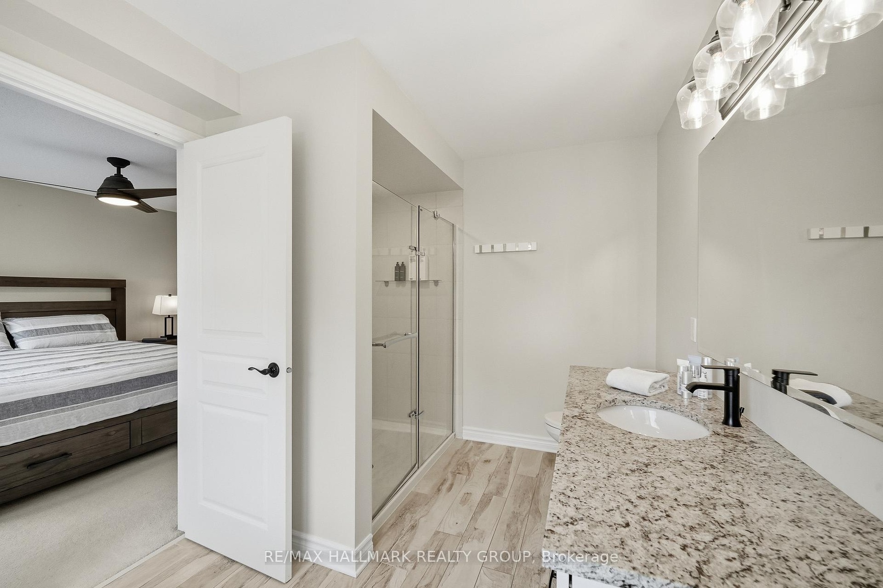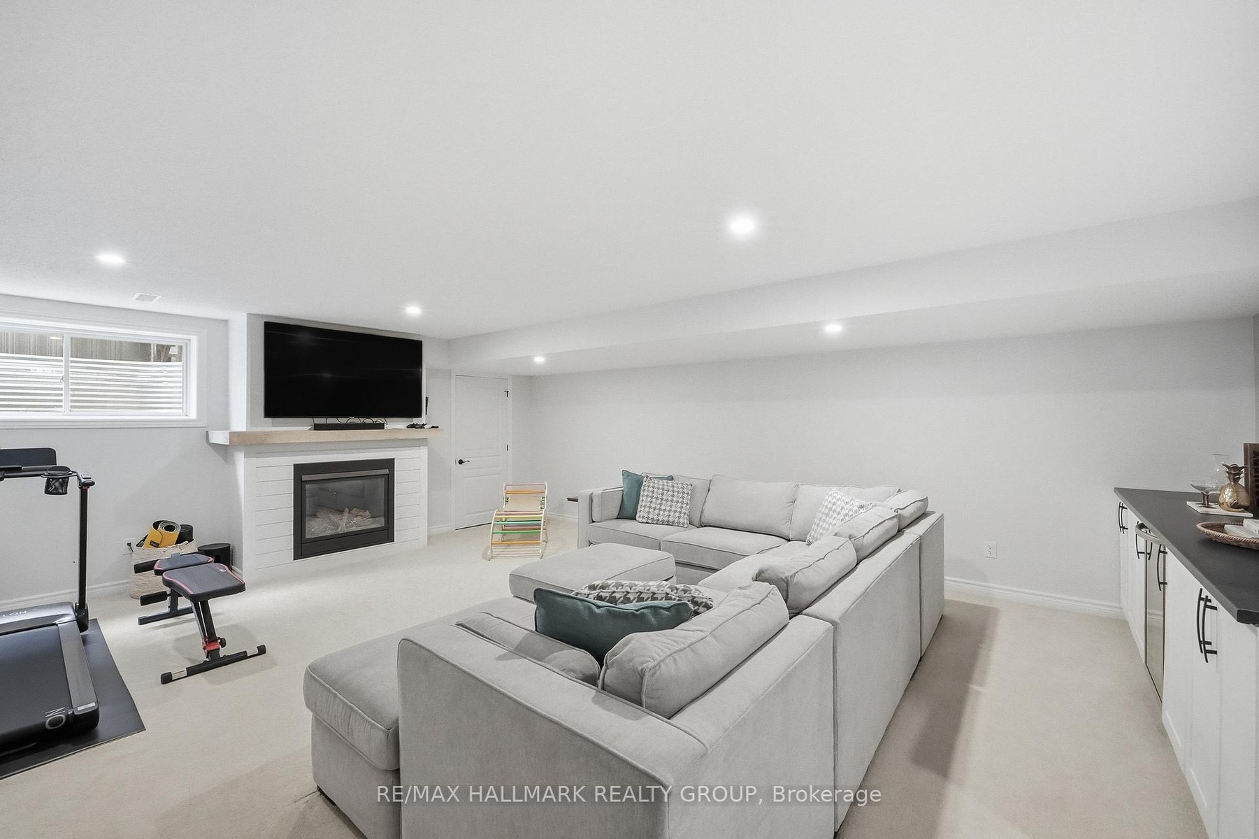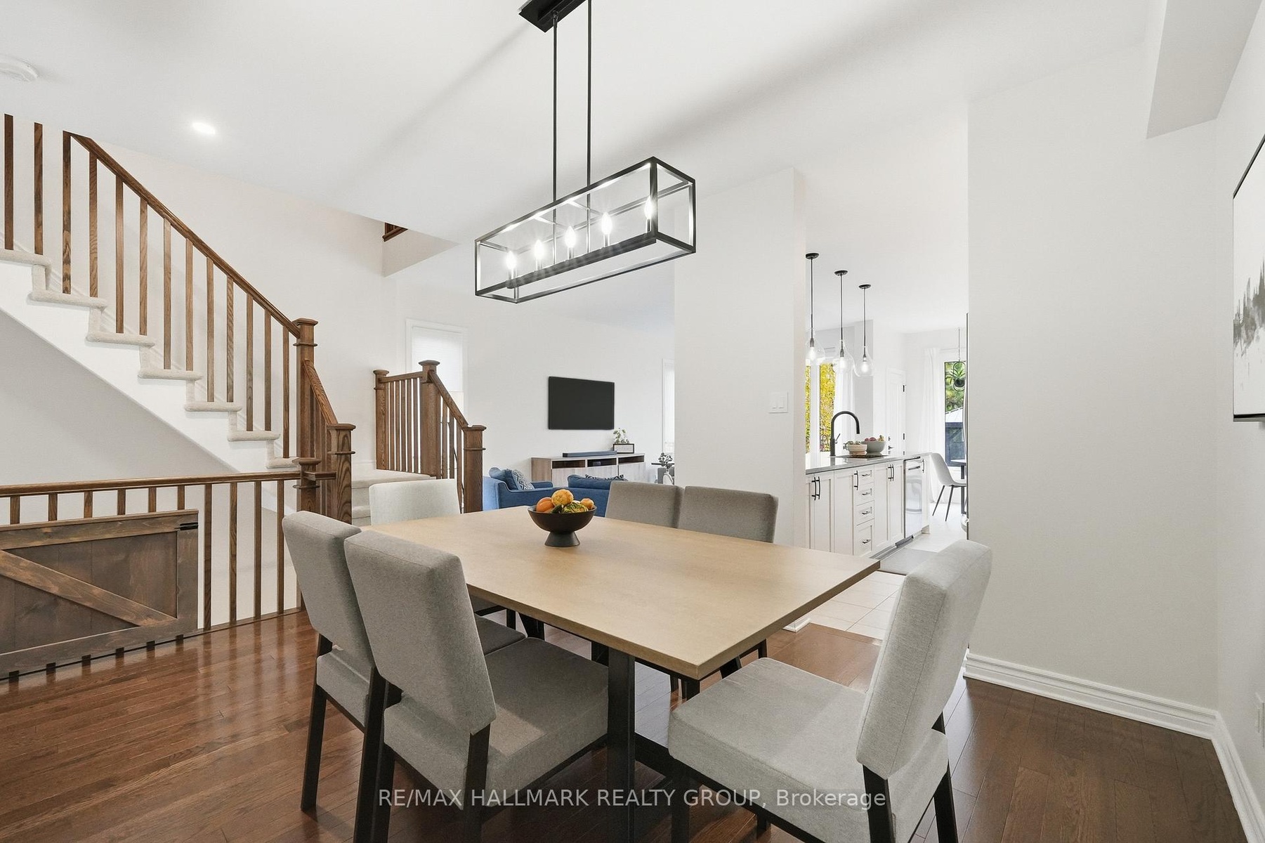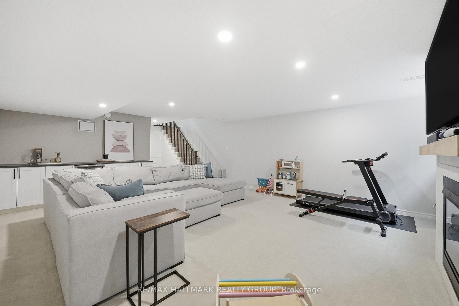 Welcome to this stunning Richcraft Stillwater model! This 3 bedroom + loft end unit townhome is situated on an extra-large pie-shaped lot offering exceptional privacy with no rear neighbours. The main level welcomes you with a spacious foyer that opens to a bright, open-concept living, dining, and kitchen area designed for modern living. Expansive windows fill the space with natural light, showcasing the hardwood flooring throughout the main level and upper hallway. The modern kitchen boasts sleek white cabinetry, stainless steel appliances including a gas stove with double oven, a long breakfast bar, and a convenient coffee nook. From the breakfast area, step outside to your private backyard oasis. Upstairs, you'll find three generous bedrooms, including a primary suite with hardwood flooring, a walk-in closet with built-in shelving, and a spa-inspired ensuite featuring a soaking tub and separate glass shower. The second bedroom also offers a walk-in closet and cheater access to the main bath. Completing this level are the second-floor laundry and a bright loft area - perfect for a home office or reading nook. The finished lower level adds even more living space with a cozy recreation room featuring pot lights, a gas fireplace, and a built-in counter with cupboards and beverage fridge, plus a 3pc bathroom with walk-in shower. A utility room and large storage area complete the level. Outside, the fully fenced and gated backyard features a deck, gazebo, hot tub, and garden shed, with plenty of space for kids, pets, and gardening. A single attached garage with inside entry and two-car laneway provide everyday convenience. Ideally located in Chapel Hill South backing onto trees and a walking path that leads to scenic trails, this home offers quiet, private living just minutes from public transit, schools, parks, recreation, shopping, and restaurants.