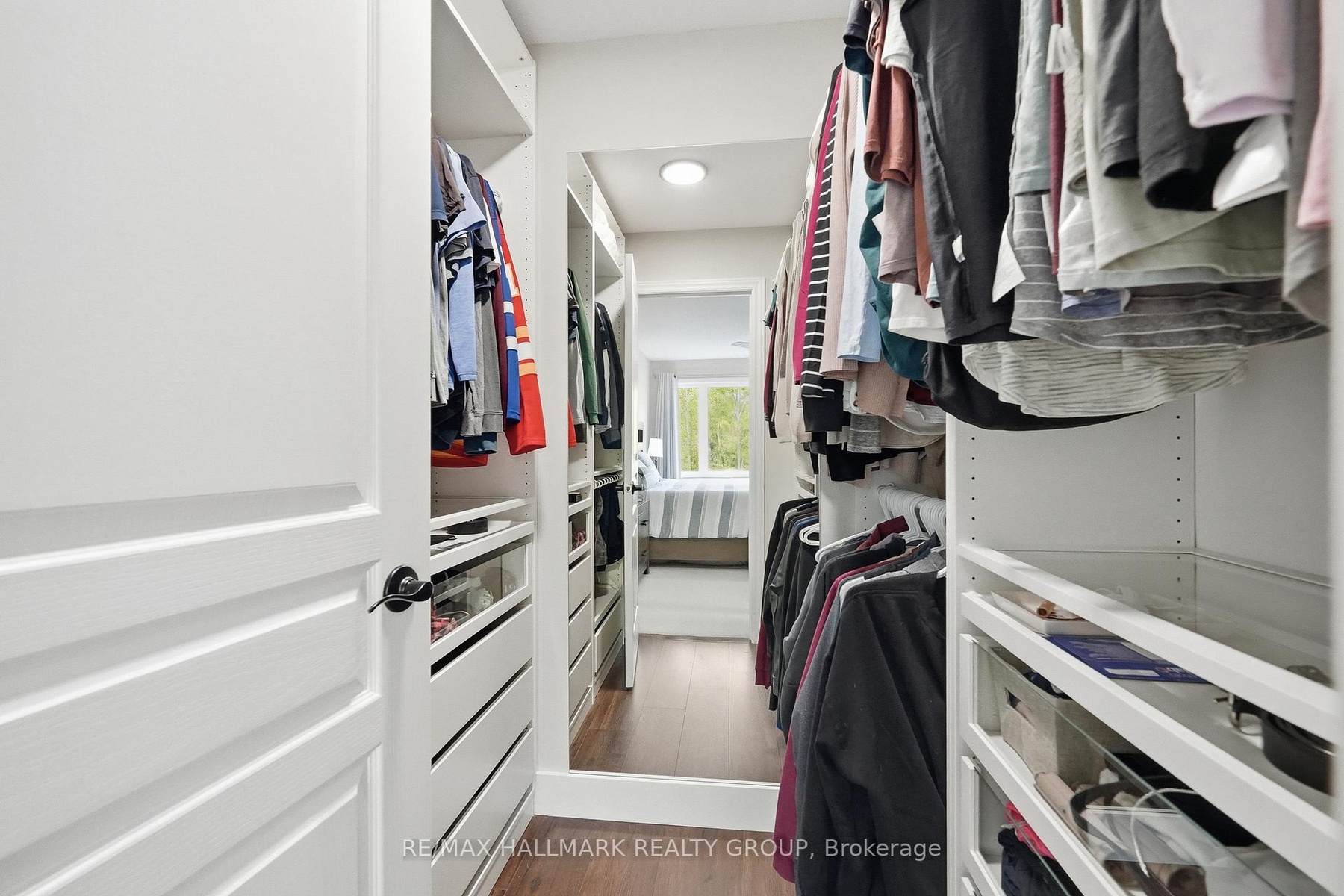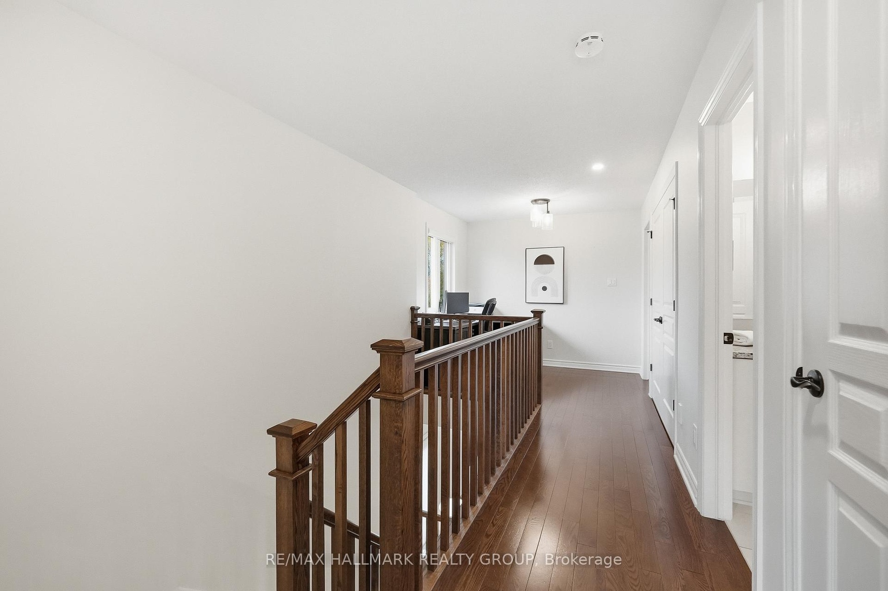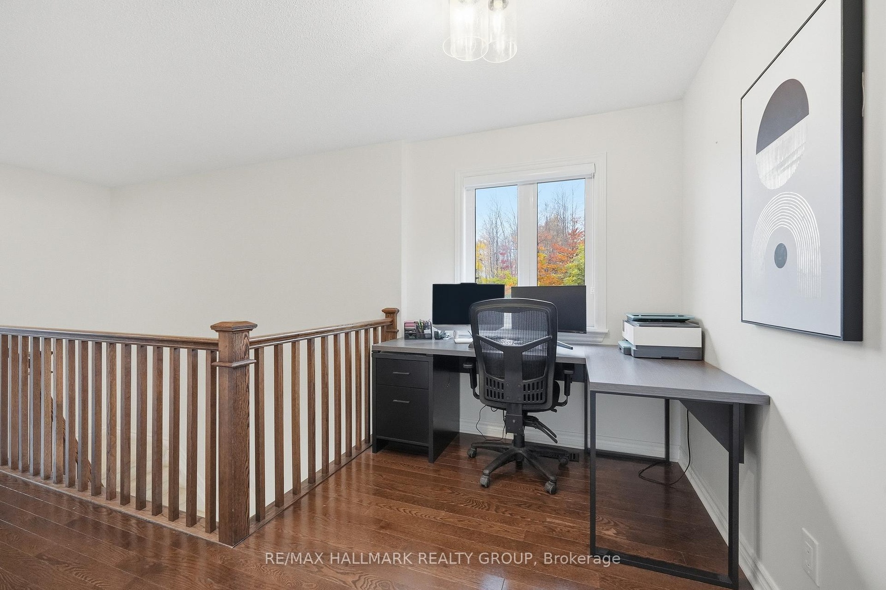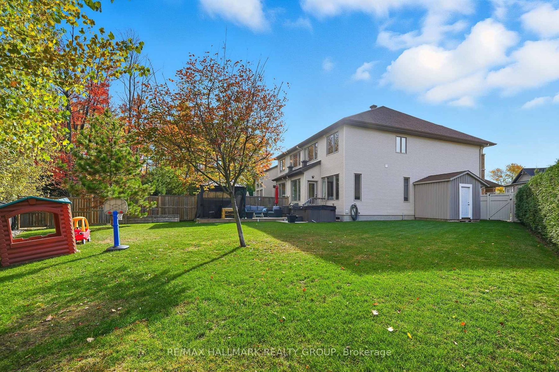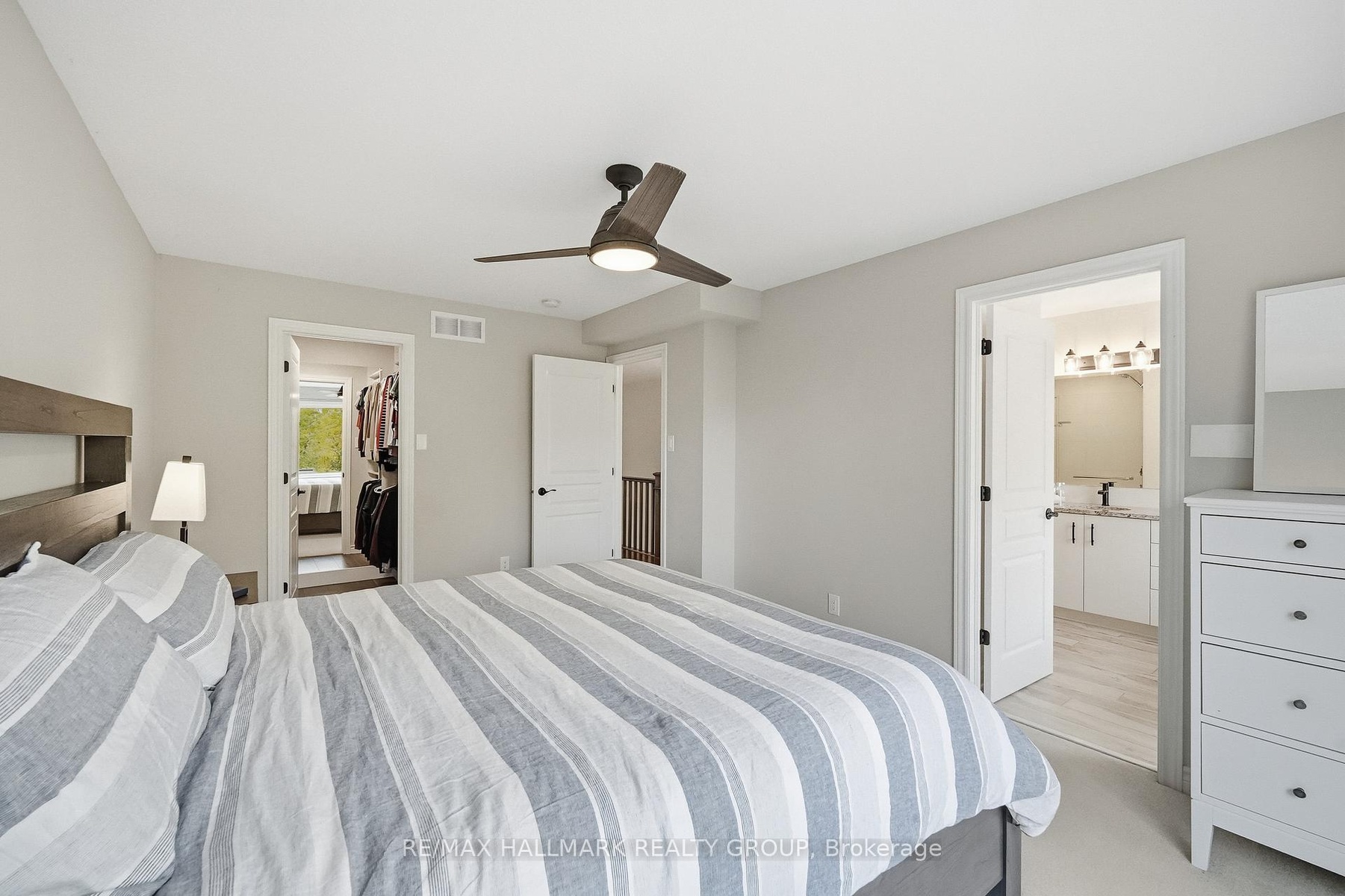 Welcome to this stunning Richcraft Stillwater model! This 3 bedroom + loft end unit townhome is situated on an extra-large pie-shaped lot offering exceptional privacy with no rear neighbours. The main level welcomes you with a spacious foyer that opens to a bright, open-concept living, dining, and kitchen area designed for modern living. Expansive windows fill the space with natural light, showcasing the hardwood flooring throughout the main level and upper hallway. The modern kitchen boasts sleek white cabinetry, stainless steel appliances including a gas stove with double oven, a long breakfast bar, and a convenient coffee nook. From the breakfast area, step outside to your private backyard oasis. Upstairs, you'll find three generous bedrooms, including a primary suite with hardwood flooring, a walk-in closet with built-in shelving, and a spa-inspired ensuite featuring a soaking tub and separate glass shower. The second bedroom also offers a walk-in closet and cheater access to the main bath. Completing this level are the second-floor laundry and a bright loft area - perfect for a home office or reading nook. The finished lower level adds even more living space with a cozy recreation room featuring pot lights, a gas fireplace, and a built-in counter with cupboards and beverage fridge, plus a 3pc bathroom with walk-in shower. A utility room and large storage area complete the level. Outside, the fully fenced and gated backyard features a deck, gazebo, hot tub, and garden shed, with plenty of space for kids, pets, and gardening. A single attached garage with inside entry and two-car laneway provide everyday convenience. Ideally located in Chapel Hill South backing onto trees and a walking path that leads to scenic trails, this home offers quiet, private living just minutes from public transit, schools, parks, recreation, shopping, and restaurants.