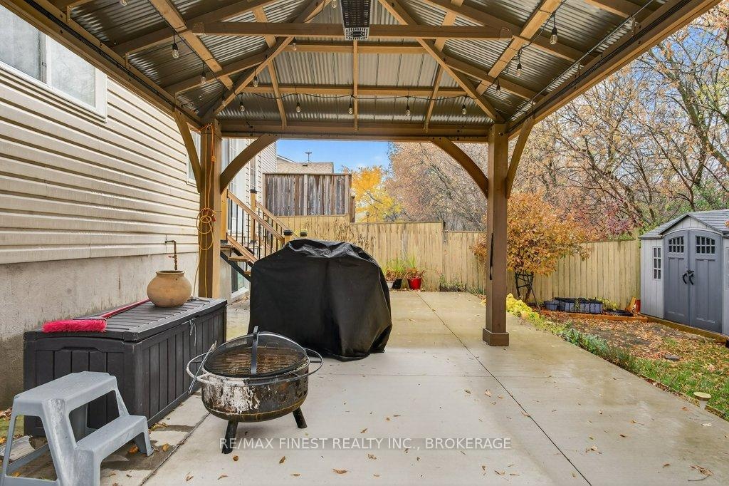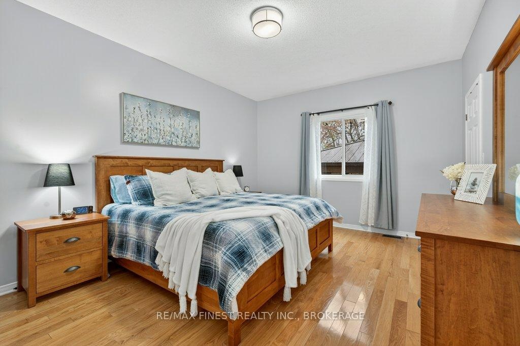 Well updated move-in-ready bungalow, ideally situated on a quiet street in the desirable Waterloo Village. Boasting over 2,500 sq ft of finished living space, this meticulously maintained home offers 2+1 bedrooms and 3 full baths and has undergone significant upgrades in the last five years. Enter the spacious foyer open to the versatile front office or sitting room. You'll be impressed by the 9-footceilings and hardwood flooring throughout the main level, complemented by tile in all wet areas. Open-concept kitchen features a gas stove and quartz countertops. Double-sided gas fireplace separates the dining nook and living room. Garden doors lead to a beautifully landscaped backyard with no rear neighbours, a poured concrete patio, a gazebo, and a sizable storage shed. The primary bedroom includes a walk-in closet and an ensuite bathroom, and a second 4-piece bath services an additional bedroom. The lower level offers a cozy den/rec room with a second gas fireplace, an extra bedroom, a 3-piece bath, a games room/office space, and tons of storage. Main floor laundry/rec room offers direct access to the garage. Driveway features newer curbs to allow for side-by-side parking, accommodating up to four cars, and a covered front porch adds to the curb appeal. This home is ideally located in a fantastic neighbourhood, steps away from a school and park, and minutes from all west-end amenities and downtown Kingston.