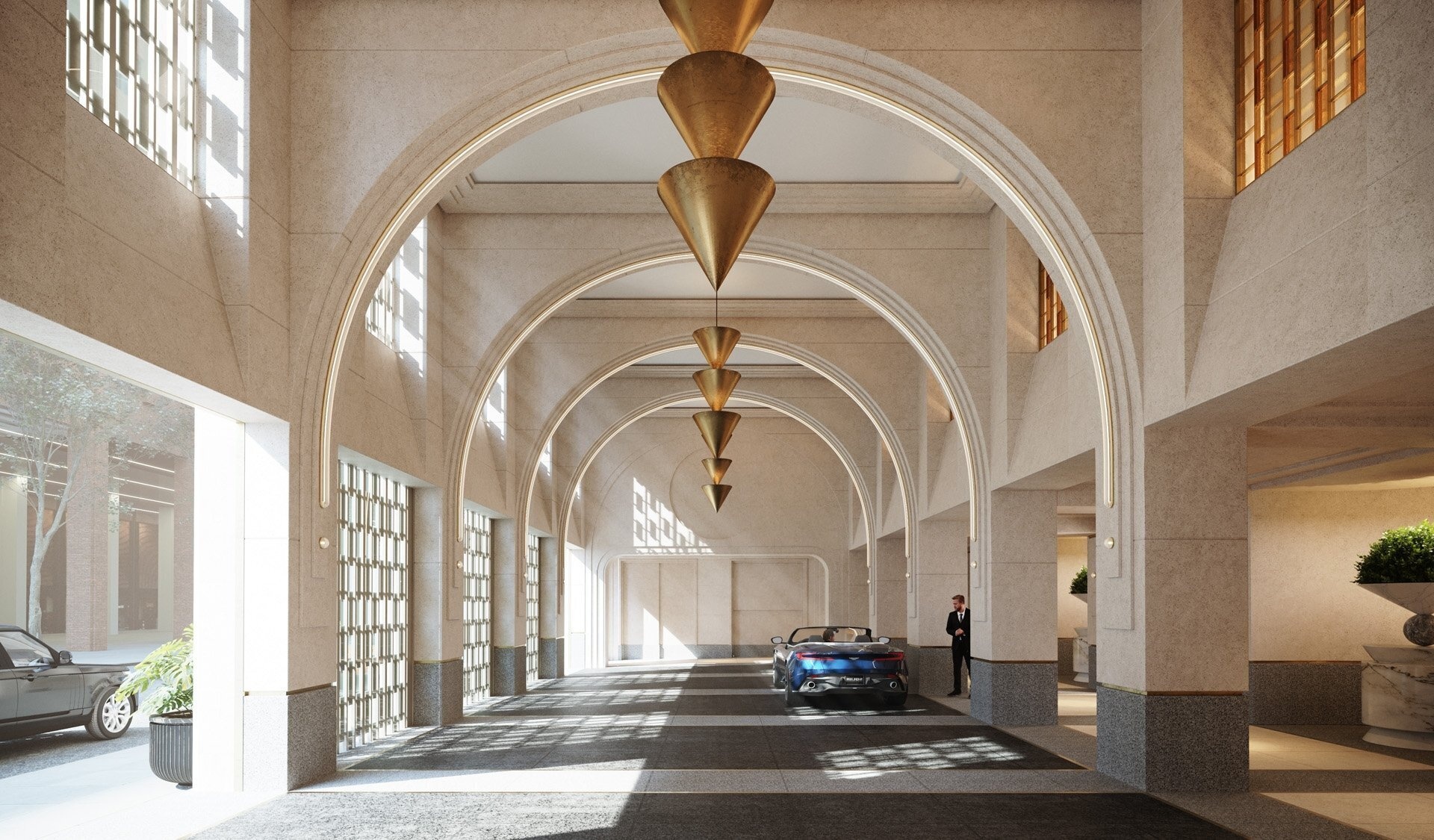 Two private residential entrances, including a porte cochère with valet service
