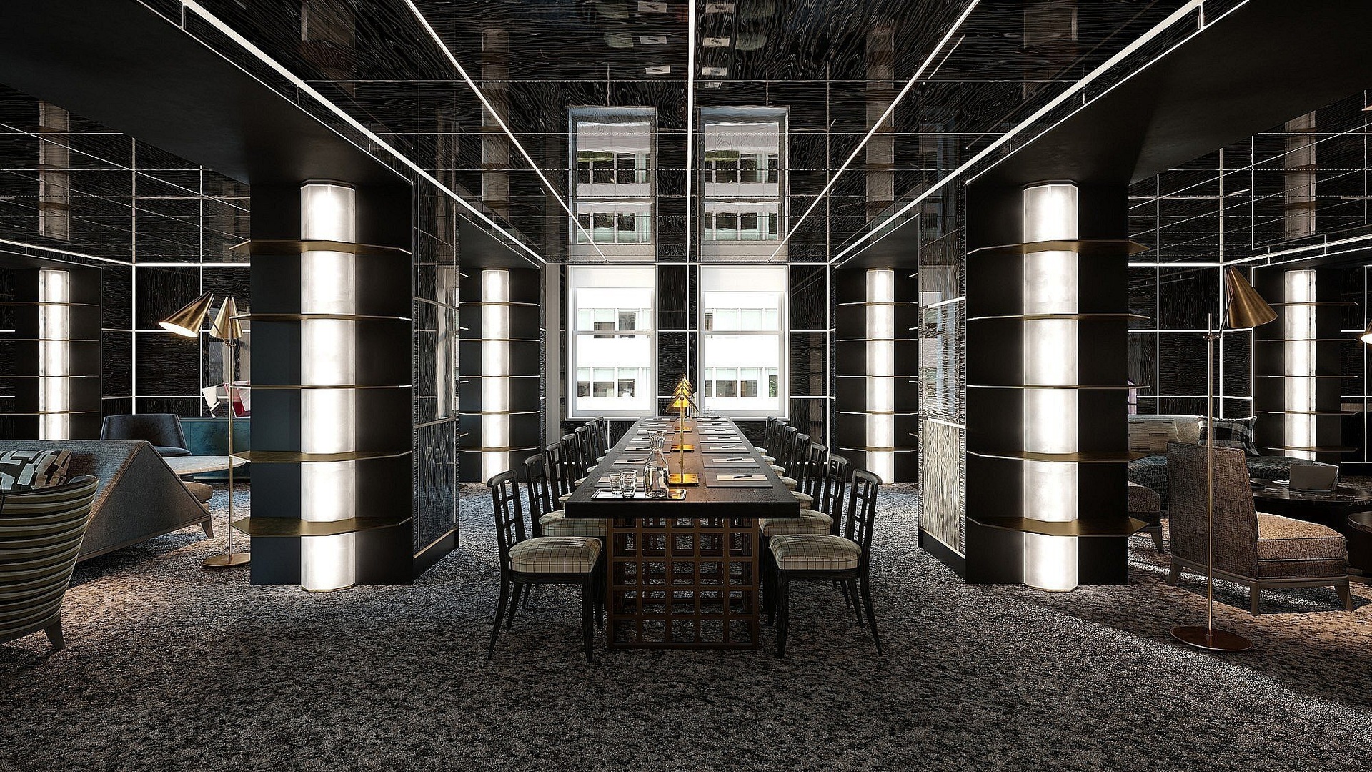 Private event spaces such as the Grand Salon, Chrysler Room, and Presidential Library & Bar