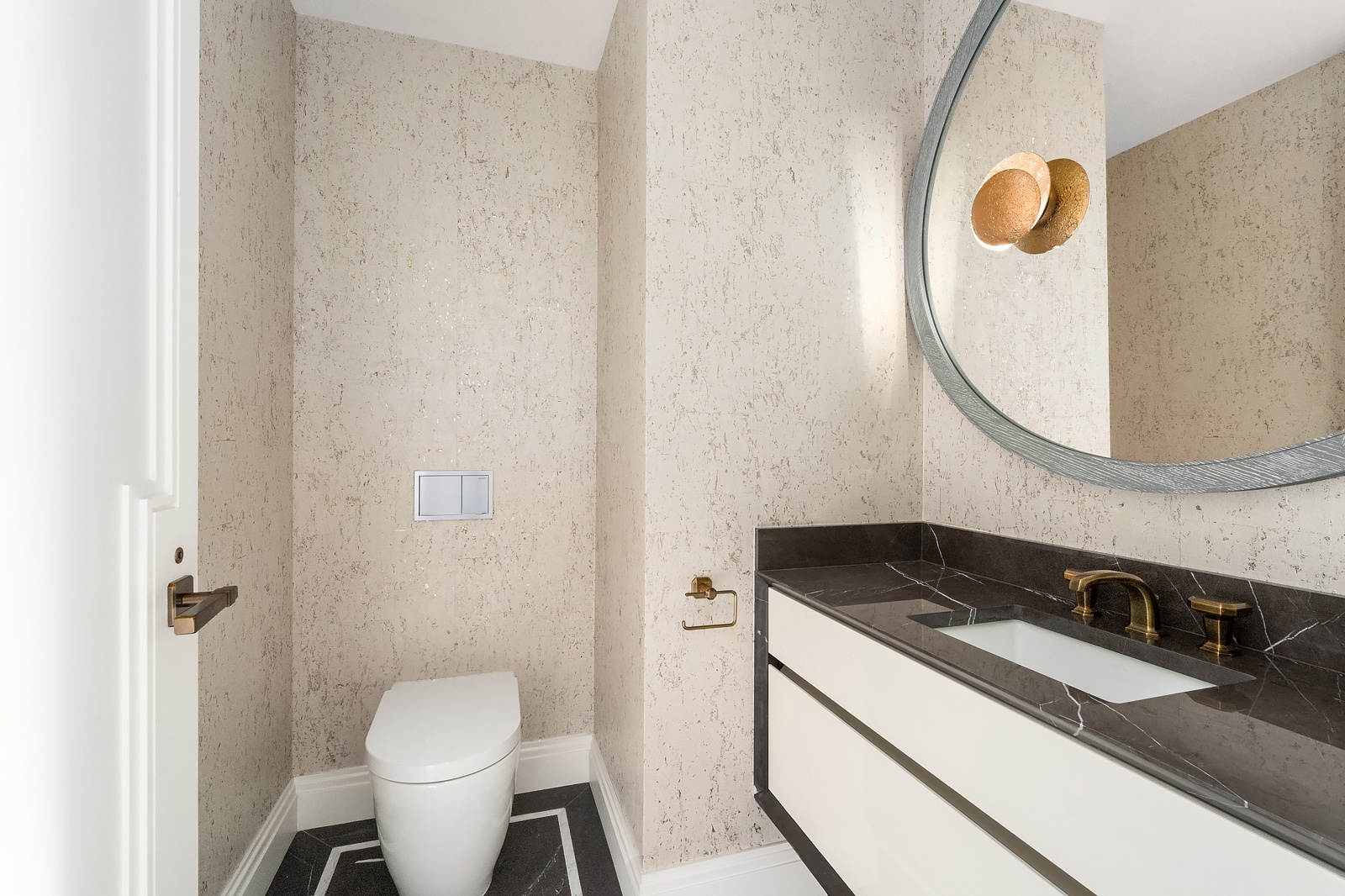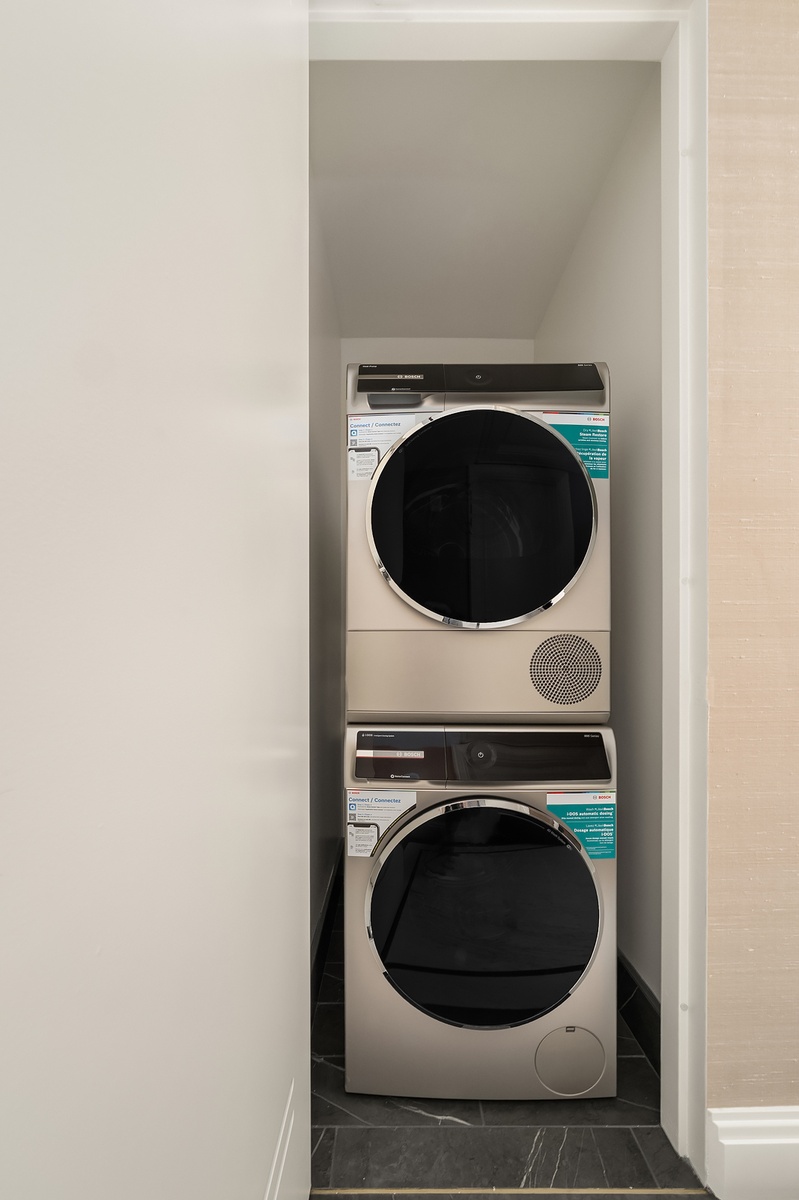 Designed by internationally acclaimed Jean-Louis Deniot, this residence blends modern comfort with Art Deco sophistication. Highlights include herringbone floors, marble foyer with brass inlays, oversized custom doors, walk-in closets, keyless entry, and a dedicated Concierge Closet for secure deliveries.
