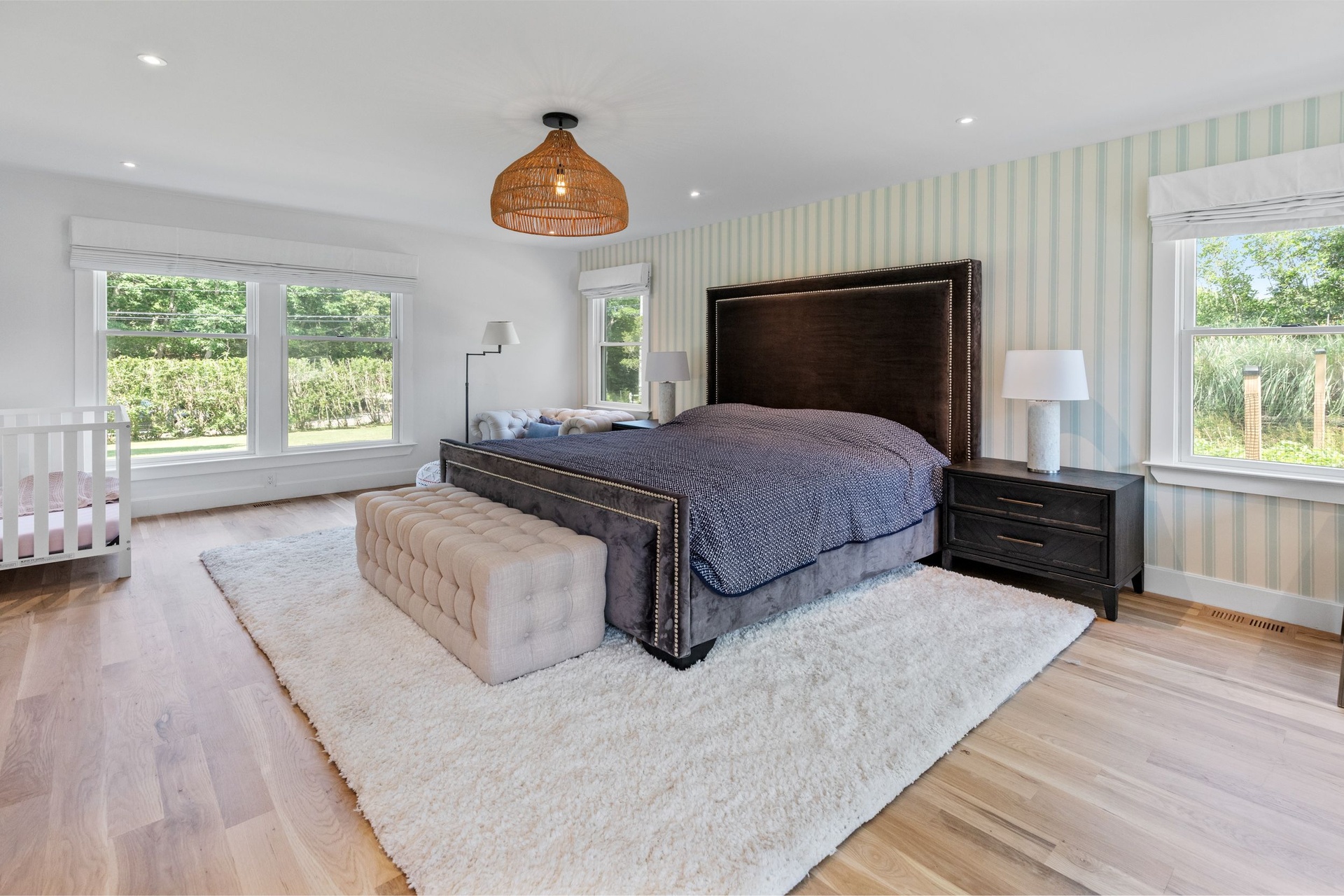 This home is designed to accommodate a large family along with visiting relatives and friends, and a nanny or au-pair. There are two primary suites, (one on first and one on second floor) with king size beds. The 2nd floor primary bedroom has a balcony overlooking the backyard and bucolic farms, while the 1st floor primary bedroom offers privacy and easy accessibility along with a generous living space. There’s 1 jr king primary suite with a balcony overlooking the pool and backyard. Additionally, there are 2 queen guest rooms with en-suite baths, 2 full size bed + crib rooms with a shared jack & jill bath.
