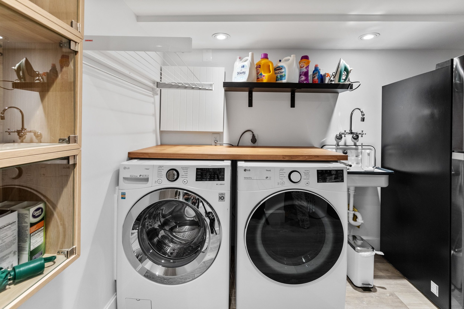 This elegant home has a 3-car garage, with driveway parking for 5 vehicles. There’s a laundry room on each floor (3 full size washer/dryers).