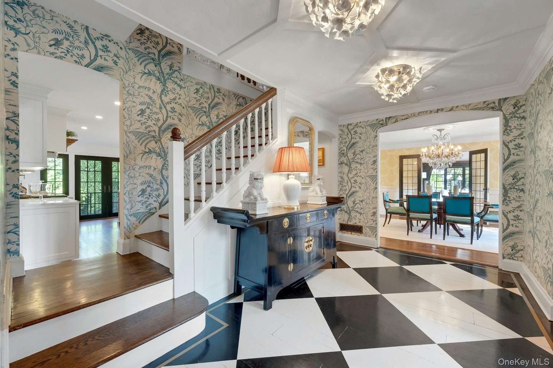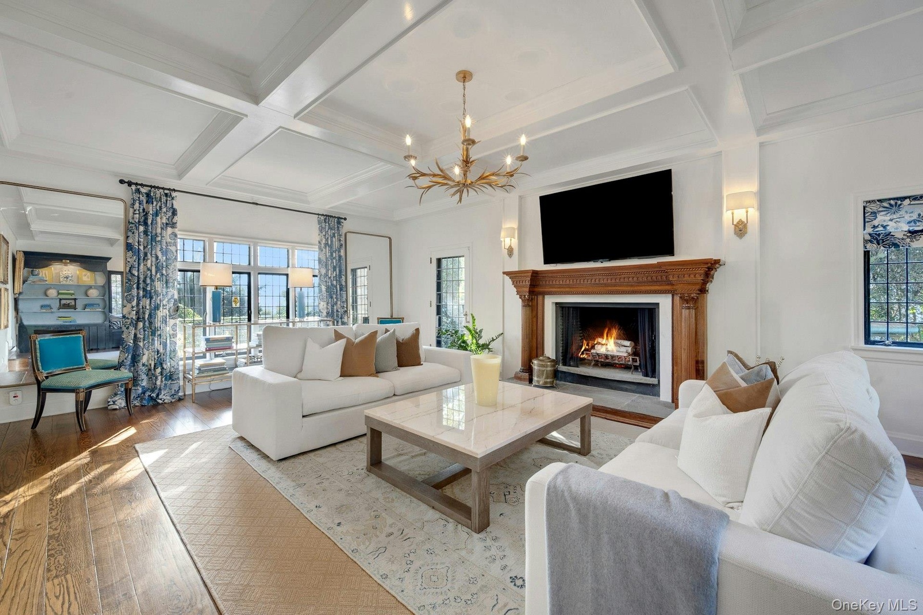 Discover the pinnacle of timeless elegance in this meticulously renovated, sun-drenched Tudor, where historic architectural charm seamlessly blends with contemporary sophistication. Perched above Kniffen Cove, this luxurious residence offers breathtaking views of Long Island Sound from a serene and coveted Rye enclave. Often recognized as one of Rye’s most iconic homes, it is a true signature property of unparalleled distinction. Inside, light-filled interiors showcase restored leaded-glass windows, wide-plank hardwood floors, and intricate millwork that exemplify classic craftsmanship. The sunken formal living room features soaring coffered ceilings, a marble-and-mahogany wood-burning fireplace, and custom built-ins, setting a tone of refined grandeur. The gracious formal dining room showcases the elegant wainscoting and crown-molding, opens through French doors to a sun-drenched sunroom/family room with vaulted ceilings, exposed wooden beams, and striking stone wall accents, completing a harmonious architectural statement.