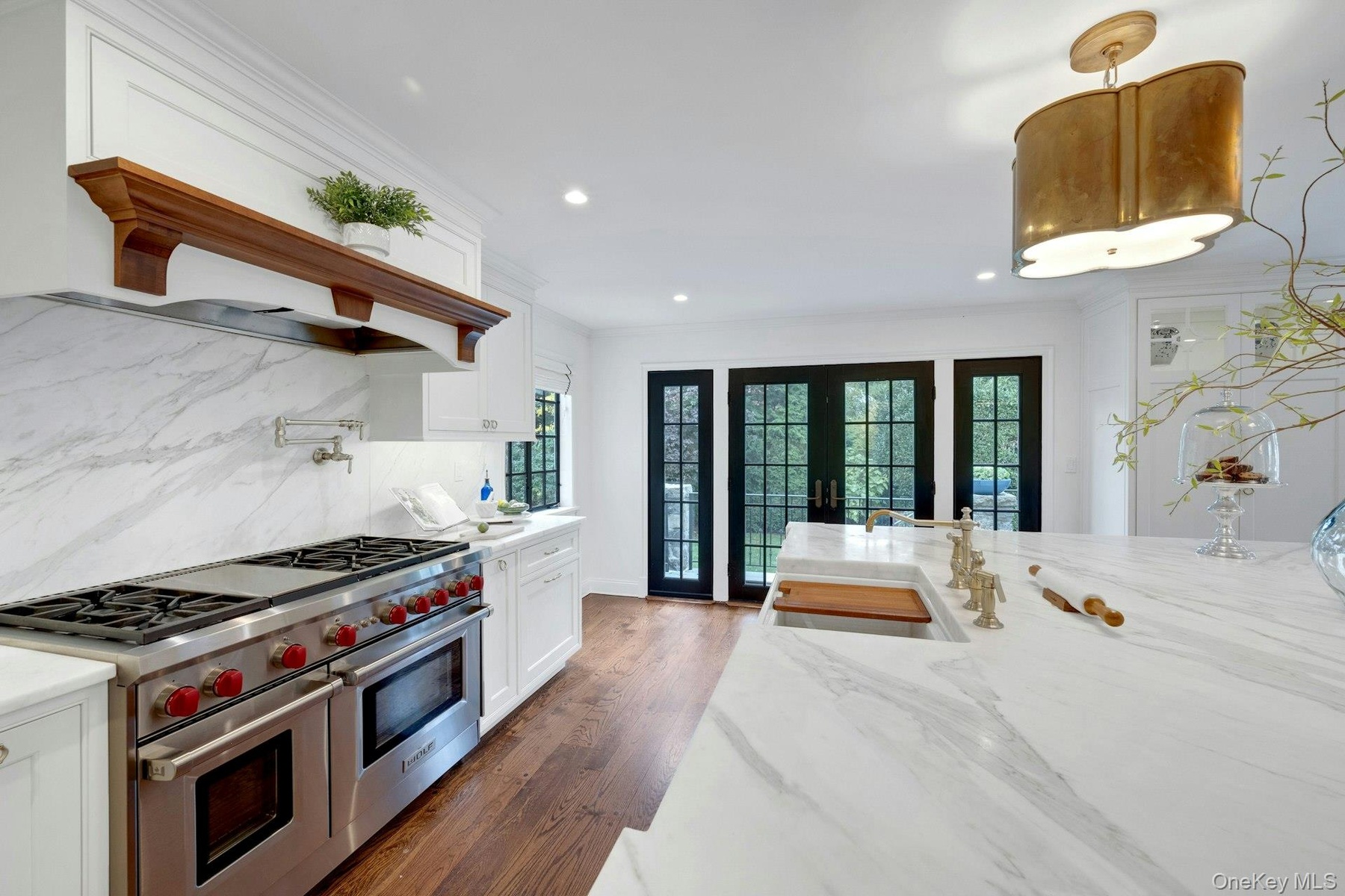 The chef’s kitchen extraordinaire is designed for grand entertaining, family dinners, and holiday gatherings. It features expansive Calacatta gold marble countertops, custom wood cabinetry with soft-close drawers, dual kitchens with two sinks and two dishwashers, a commercial-grade 6-burner Wolf range with griddle and custom hood, Sub-Zero refrigerator, beverage refrigerator, and high-end Wolf appliances throughout. Brushed brass hardware, custom lighting, MacKenzie-Childs pendant fixtures, and a built-in banquette breakfast area elevate this space to gourmet perfection. The luxurious primary suite offers a marble bath, his/hers walk-in shower, custom vanity and radiant heated floors for ultimate comfort. Three additional bedrooms feature custom closets and a full marble hall bathroom with tub. The completely finished third-floor retreat provides a light-filled yoga/meditation studio, private home office, or creative space, with abundant storage. The lower level includes a spacious recreation room centered by a dramatic stone wood-burning fireplace, a full bathroom, and thoughtfully designed built-in storage cubbies leading seamlessly to the garage. Outdoors, professionally landscaped grounds feature a newly appointed front walk, flagstone terrace overlooking lush gardens, and a vegetable garden that has provided years of fresh harvests. Minutes to Milton Elementary School, close to beach, premier beach and tennis clubs. State-of-the-art upgrades really enhance the lifestyle of this luxurious home. With its rare combination of historic charm, modern comfort, abundant natural light, and premier coastal setting, this residence is more than a home — it is a piece of Rye’s history and one of the community’s most beloved signature properties.