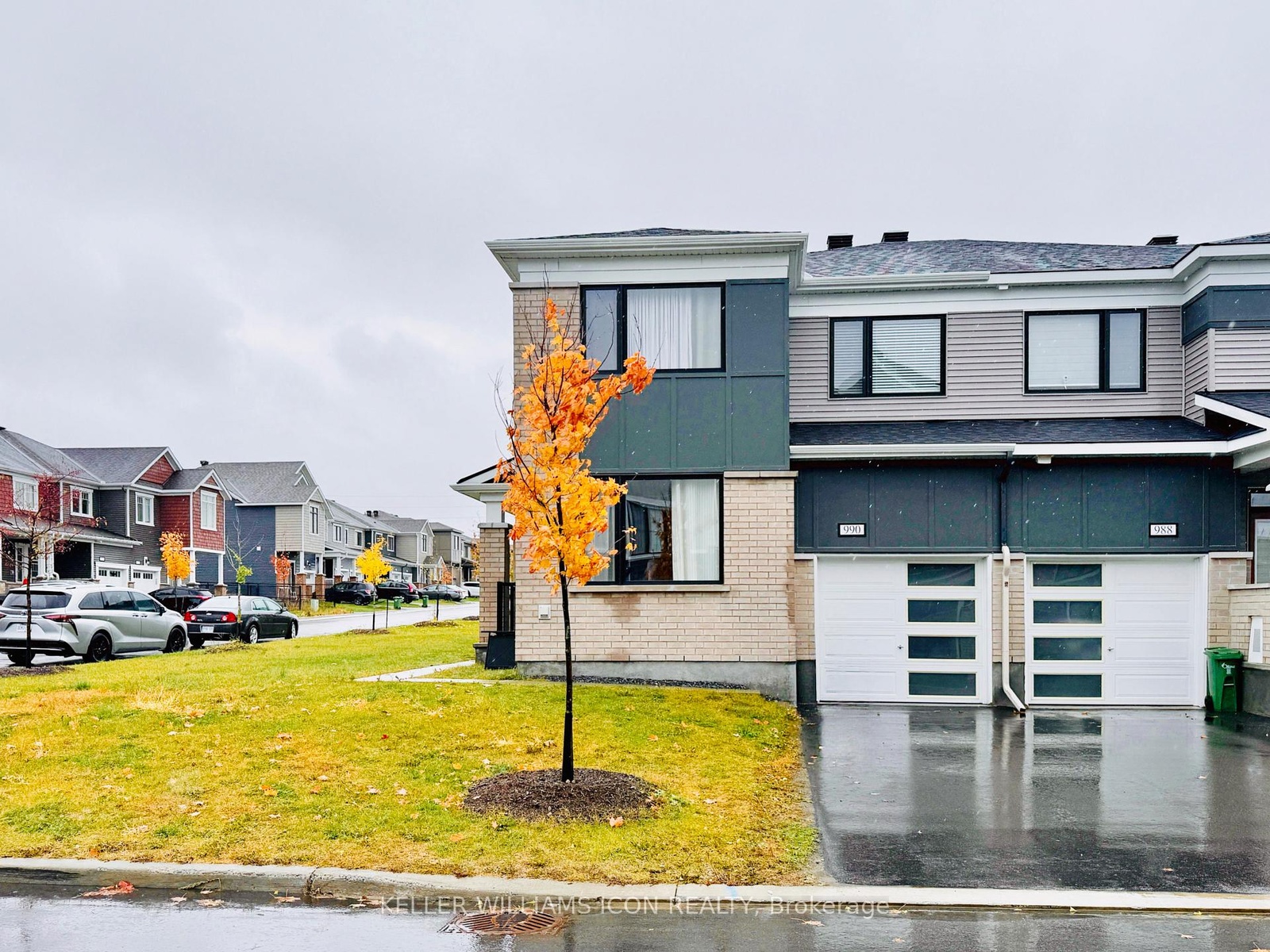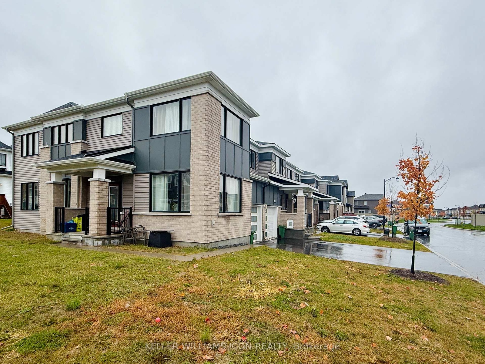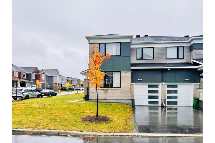 Available January 1, 2026. Welcome to 990 Fameflower Drive - this "Pristine Corner" model offers approximately 2,200 sq.ft. of elegant living space. This beautifully upgraded corner townhome showcases exceptional design and craftsmanship throughout. Featuring 9-ft ceilings and hardwood flooring on the main level, the home offers a bright and airy open-concept layout with expansive windows that fill every room with natural light. The chef-inspired kitchen is equipped with quartz countertops, a large island with breakfast bar, stainless steel appliances, and abundant cabinetry for storage. A convenient main-floor den provides the perfect space for a home office or can serve as a fourth bedroom. Upstairs, you'll find three spacious bedrooms, including a primary retreat with multiple windows, a double-sink ensuite, and an upgraded glass shower. The upper hallway features hardwood flooring for a sleek look and easy maintenance, while the bedrooms are finished with premium carpeting for added comfort. The laundry room is also conveniently located upstairs. The finished basement offers additional open space ideal for a recreation room, workout area, or family lounge. Located in a family-friendly neighbourhood, this home provides quick access to top-ranking schools, HWY 417, the newly opened Food Basics (just 3 minutes away), and five nearby parks, making it perfect for families and outdoor enthusiasts alike. Book your private showing today - this stunning home will not disappoint.