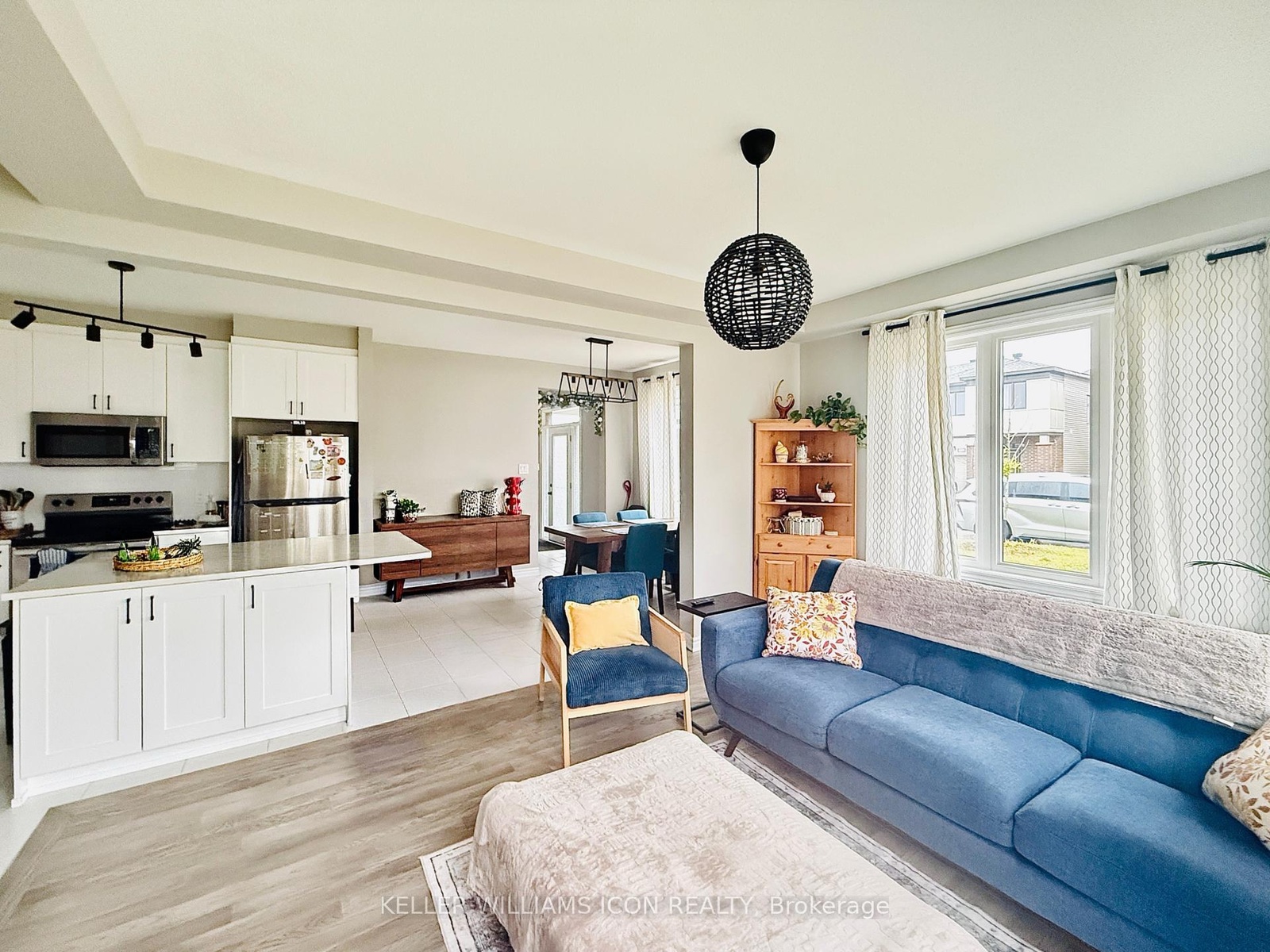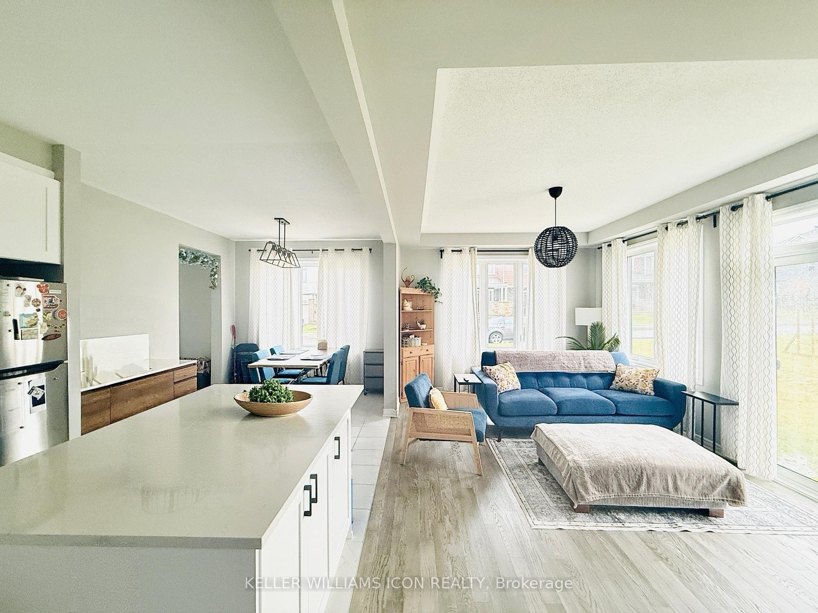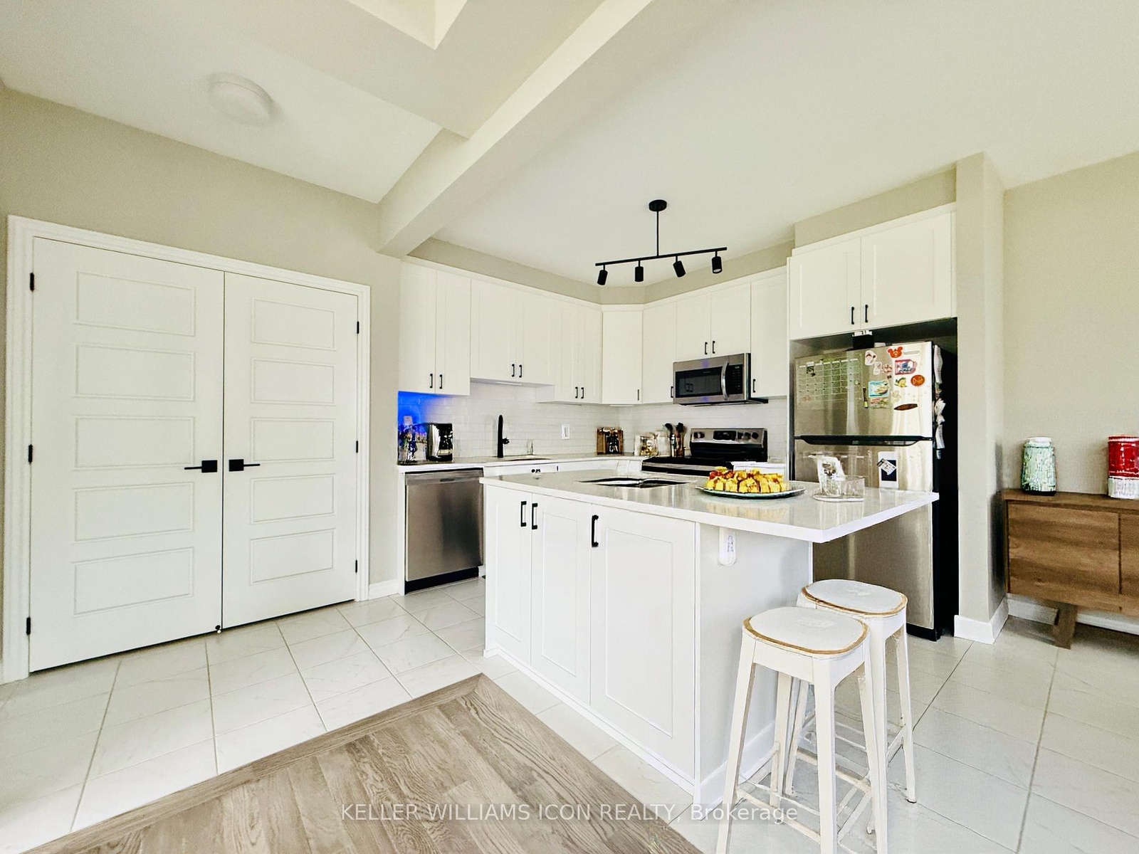 Available January 1, 2026. Welcome to 990 Fameflower Drive - this "Pristine Corner" model offers approximately 2,200 sq.ft. of elegant living space. This beautifully upgraded corner townhome showcases exceptional design and craftsmanship throughout. Featuring 9-ft ceilings and hardwood flooring on the main level, the home offers a bright and airy open-concept layout with expansive windows that fill every room with natural light. The chef-inspired kitchen is equipped with quartz countertops, a large island with breakfast bar, stainless steel appliances, and abundant cabinetry for storage. A convenient main-floor den provides the perfect space for a home office or can serve as a fourth bedroom. Upstairs, you'll find three spacious bedrooms, including a primary retreat with multiple windows, a double-sink ensuite, and an upgraded glass shower. The upper hallway features hardwood flooring for a sleek look and easy maintenance, while the bedrooms are finished with premium carpeting for added comfort. The laundry room is also conveniently located upstairs. The finished basement offers additional open space ideal for a recreation room, workout area, or family lounge. Located in a family-friendly neighbourhood, this home provides quick access to top-ranking schools, HWY 417, the newly opened Food Basics (just 3 minutes away), and five nearby parks, making it perfect for families and outdoor enthusiasts alike. Book your private showing today - this stunning home will not disappoint.