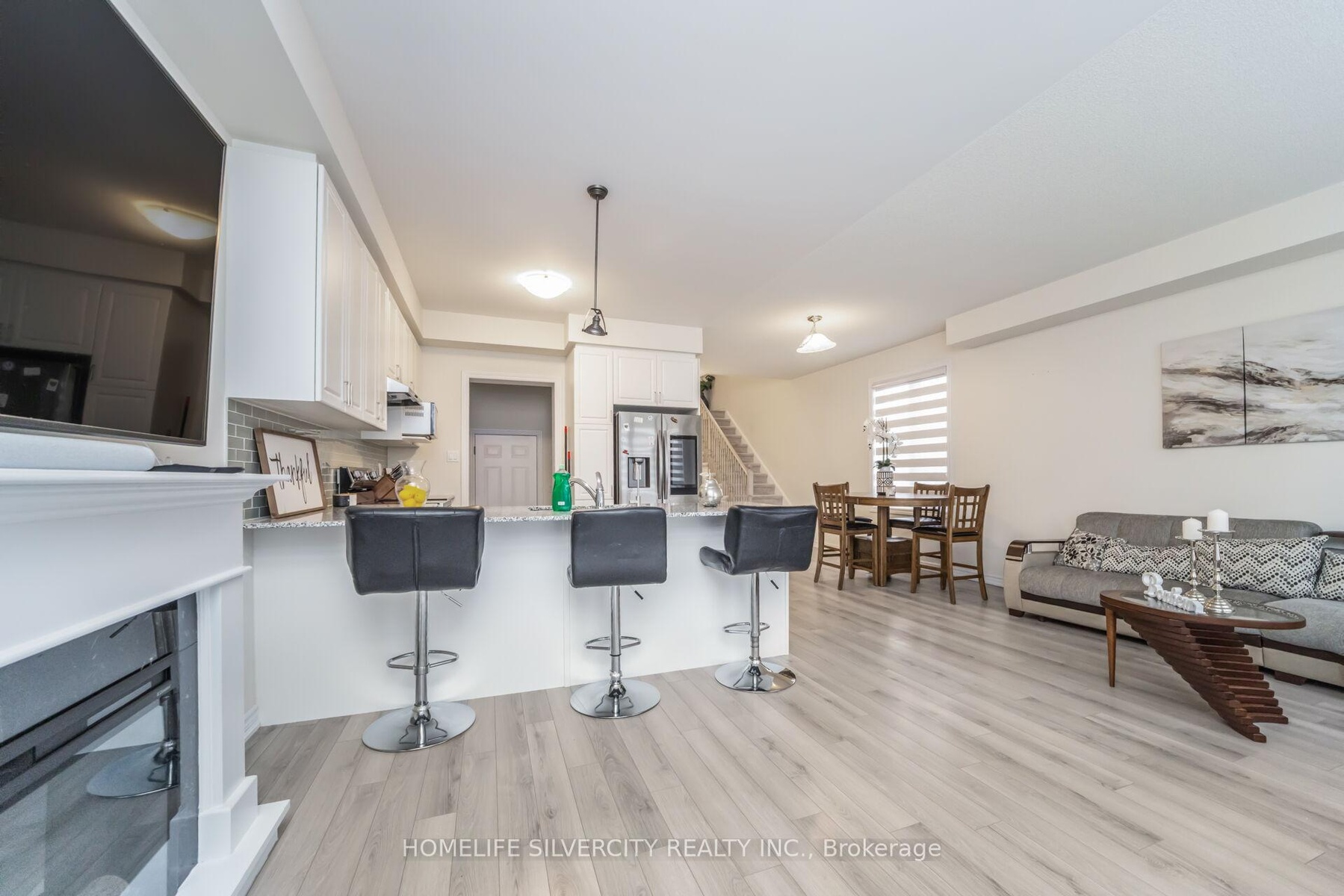 Like A Detached End Unit Modern Town Home w/4 Bedrooms for Sale!! 9-foot ceilings on Main Floor comes with Hardwood Floors!! Modern Kitchen featuring Stainless Steel Appliances, Quartz countertops, and a large Island breakfast bar & extra pantry space with organized shelves for convenient storage!! Enjoy the cozy ambiance of a gas fireplace on the main floor, adding warmth and charm to the open-concept living area - perfect for relaxing evenings or entertaining guests!! Master with Ensuite Bath & Walk-in Closet!! All other 3 Rooms are good size!!No more hauling laundry up and down - the second-floor laundry room adds comfort and convenience to your everyday routine!! Legal separate entrance to the basement provides ease and flexibility for future rental potential!! Spacious basement featuring huge windows that provide excellent daylight and ventilation!! No walkway at front ensures low maintenance and easy snow removal. Enjoy a private, separate individual driveway offering ample parking space and convenience!! Must See!!