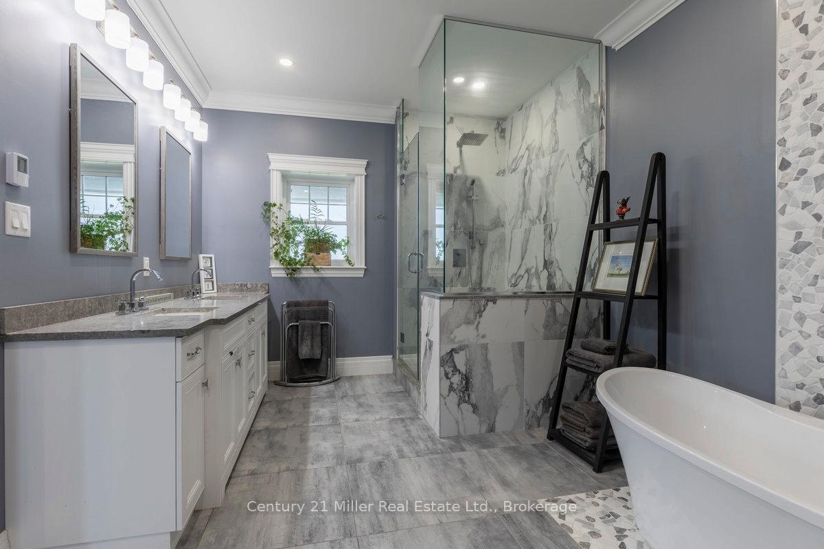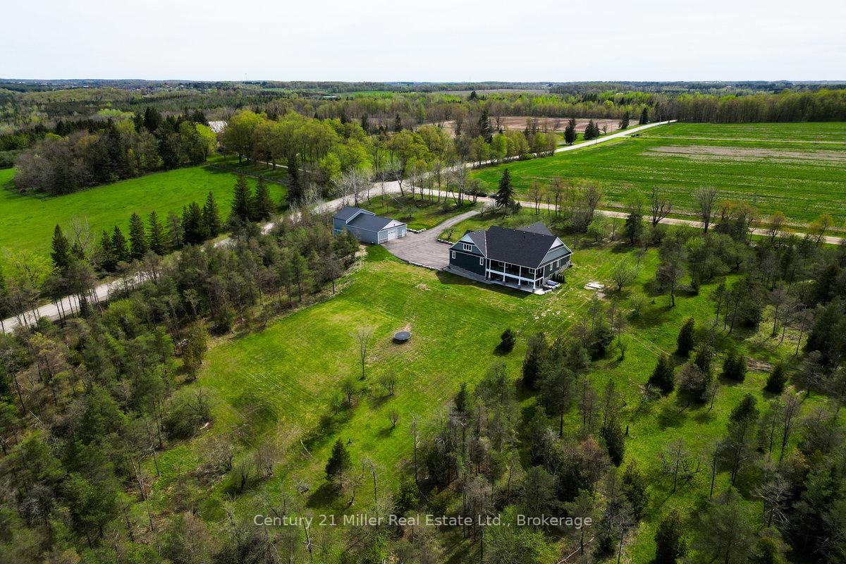 Welcome to 5583 Third Line - a stunning custom-built country estate where craftsmanship, modern luxury, and efficiency meet. Built in 2021, this exceptional bungaloft residence was built with insulated concrete form (ICF) construction for superior energy efficiency, durability, and comfort - a true standout in today's market. The thoughtfully designed main level showcases an open-concept layout with soaring ceilings, wide-plank flooring, and abundant natural light. The gourmet kitchen features premium cabinetry, quartz countertops, a large island, and seamless flow to the dining and great room - ideal for entertaining or quiet family evenings. The main-floor primary suite offers a spa-inspired ensuite and walk-in closet, providing a luxurious retreat with views of the surrounding countryside. Upstairs, a private second-level suite includes a spacious bedroom, den, and full ensuite - perfect for guests or extended family. The fully finished lower level expands the living space with a 2-bedroom, 2-bathroom in-law suite complete with its own kitchen, living area, and walkout to the backyard. Additional lower-level highlights include a home theatre, exercise room, and ample storage. For the hobbyist or business owner, this property delivers unparalleled versatility: an attached 4-car garage with 16-foot ceilings plus a 40' x 65' detached shop, also constructed with ICF, featuring a loft for added workspace or storage. Set on a private, scenic lot in the rolling hills of Erin, this property combines rural tranquility with sophisticated living - just minutes from town amenities and an easy commute to the GTA, Guelph, and Georgetown. Built to the highest standards and designed for modern multi-generational living, 5583 Third Line is more than a home - it's a lifestyle statement.