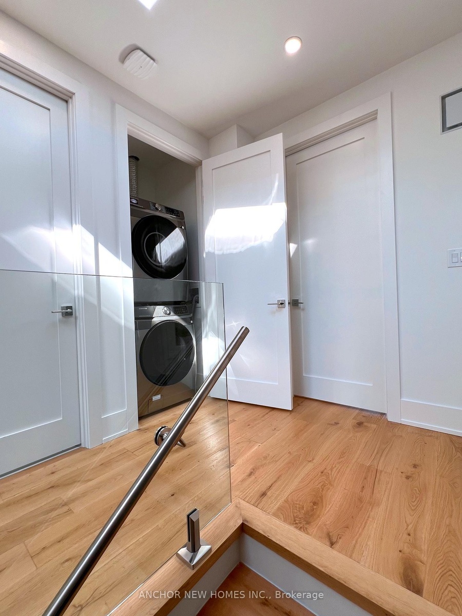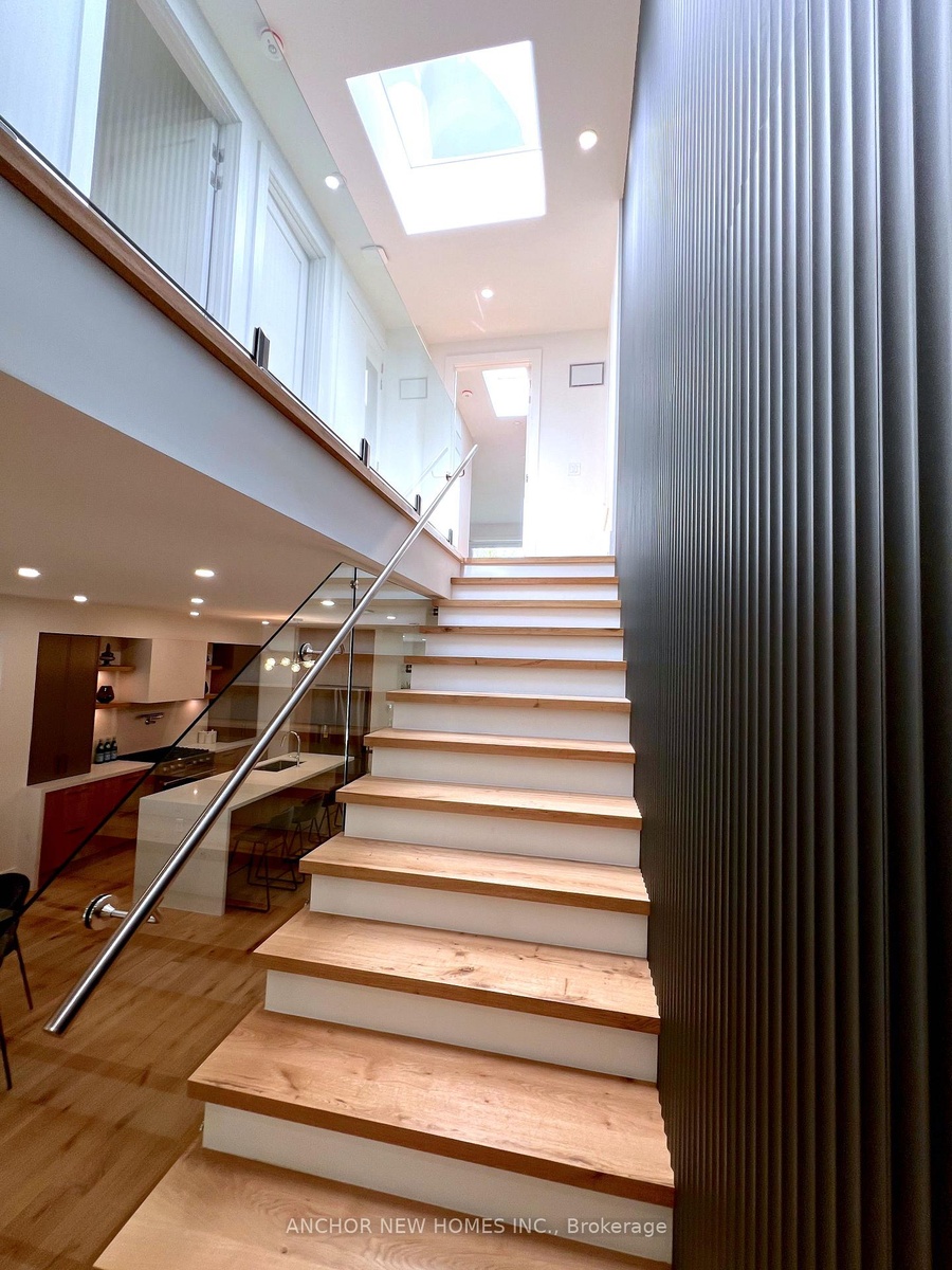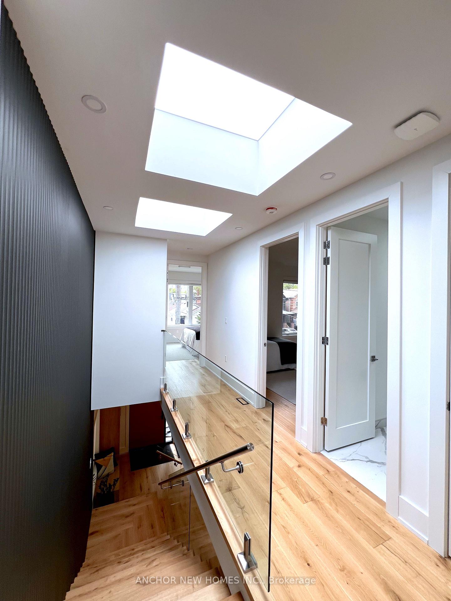 Welcome to this beautifully designed modern detached home with a legal basement suite, offering approx. 3,300 sq.ft. of luxurious living space (incl. bsmt) in one of East York's desirable neighbourhoods! Set on a generous lot with private parking, this 3+1 bed, 4 bath home blends contemporary design with everyday functionality. The open-concept main floor showcases high ceilings, premium engineered hardwood floors, elegant pot lighting, and a roughed-in surround sound system. A sophisticated smart home setup with 3 cameras & video doorbell provides modern convenience and peace of mind.The dining area flows into a chef's kitchen featuring s/s appliances, 6-burner gas stovetop with pot filler, waterfall quartz island, custom countertops & sleek cabinetry - perfect for entertaining. The family room offers a gas fireplace with a stunning feature wall, large windows & walk-out to the backyard deck. The living room is enhanced by a beautifully designed staircase with striking custom wall paneling, creating a sophisticated focal point.The oak staircase with glass railing is accented by a floor-to-ceiling feature wall & two skylights above, filling the space with natural light. Upstairs, three additional skylights create an airy, sun-filled atmosphere. The serene primary suite features custom closets, acoustic wood paneling, skylight w/ roof access & a spa-inspired 5-pc ensuite with soaker tub & double vanity. A stylish 2nd bath & laundry area complete this level.The legal basement suite offers high ceilings, large windows, a modern kitchen w/ s/s appliances & breakfast bar, sep. entrance, in-suite laundry & dedicated hydro meter - ideal for rental income or extended family.Outside features a private backyard w/ deck, BBQ hookup & shed, plus potential for a future garden suite (City services in place). Near parks, schools, shops, TTC/GO, DVP & downtown.A contemporary East York gem blending luxury, functionality & timeless design - ready to be yours!