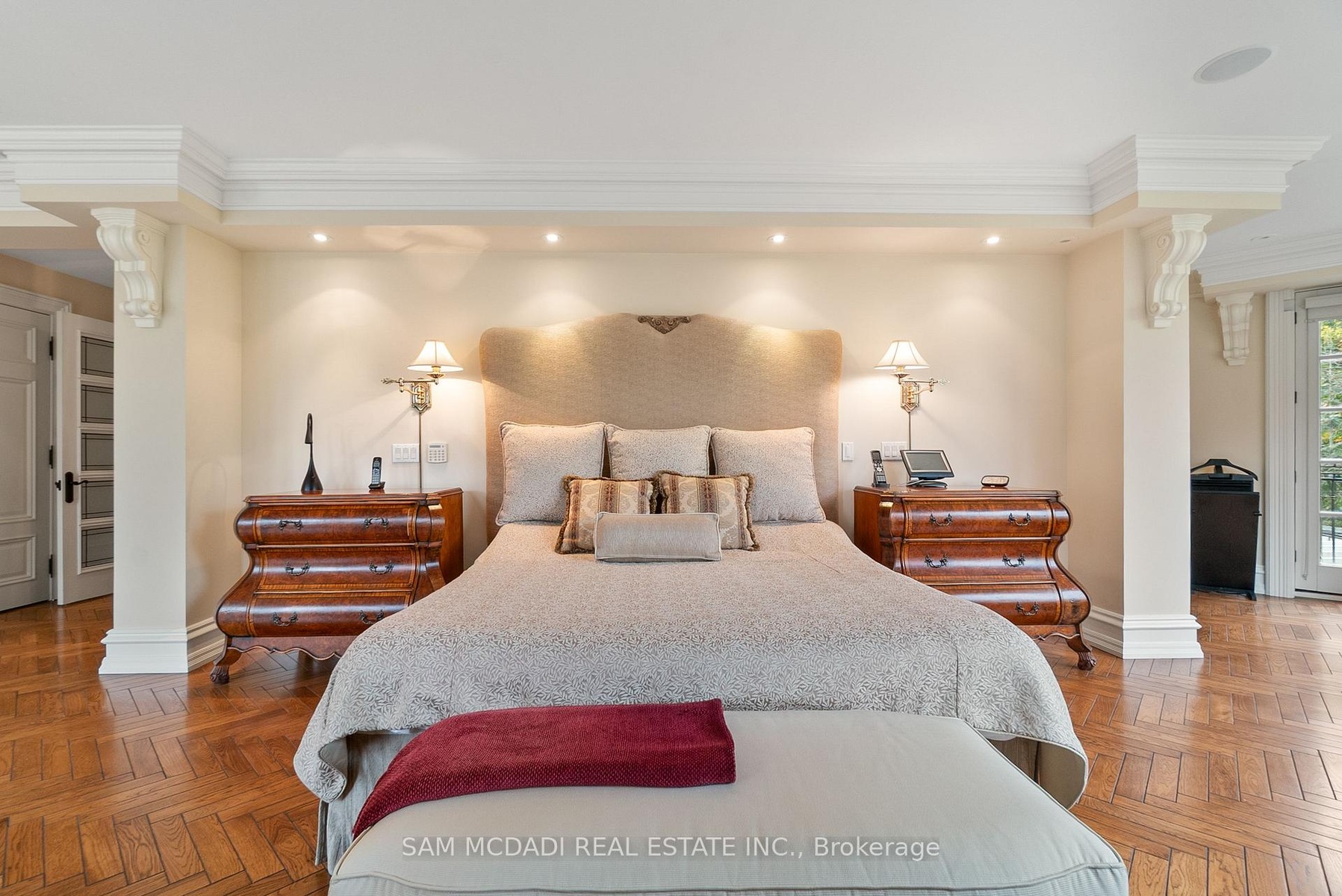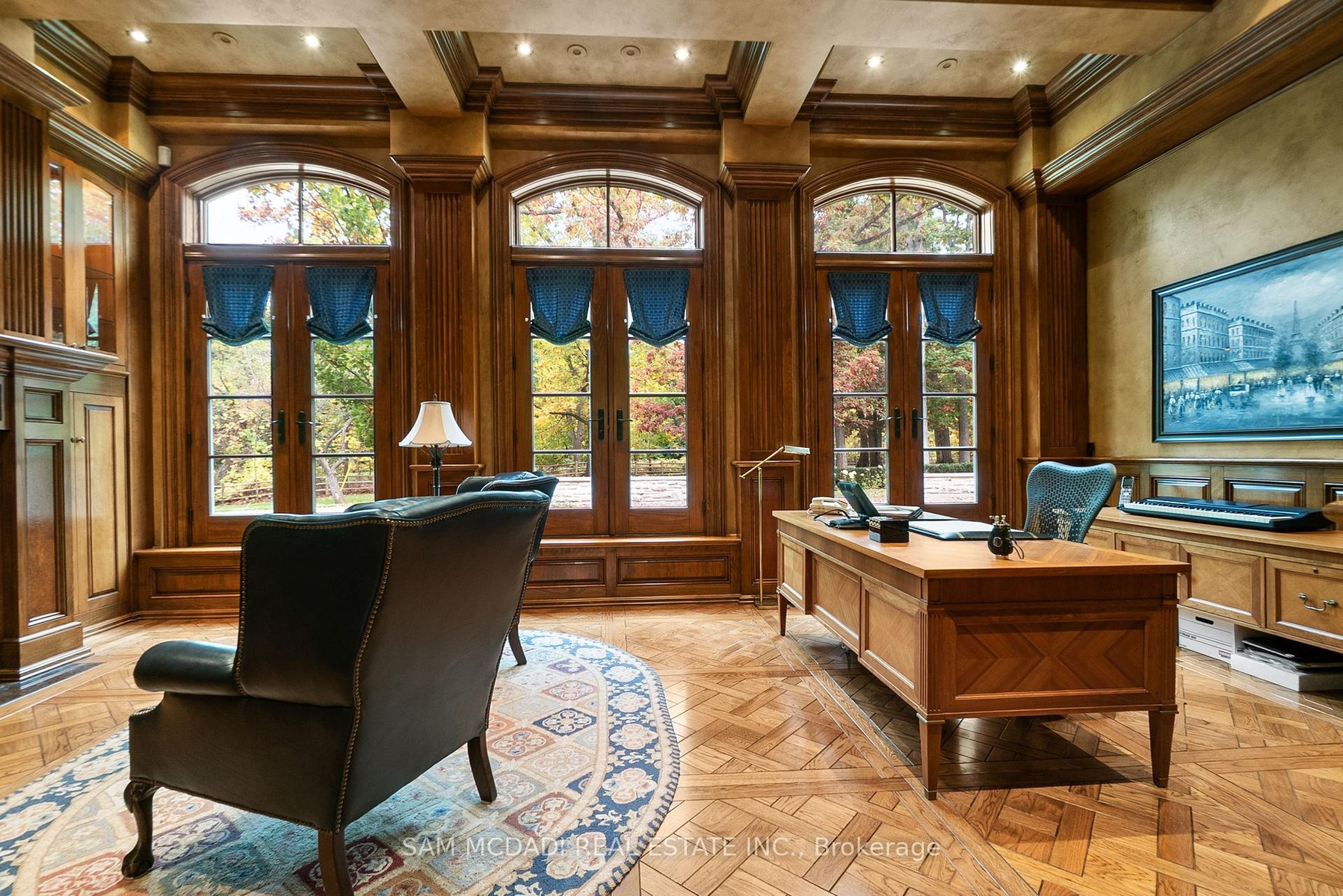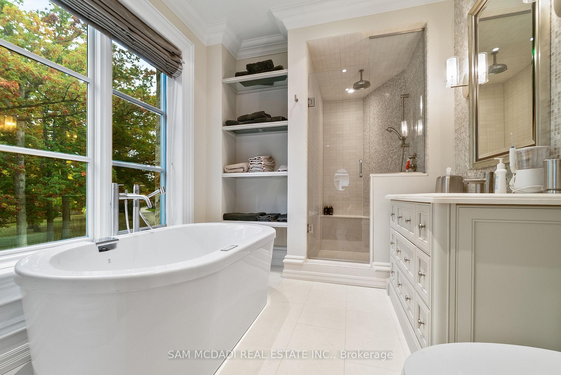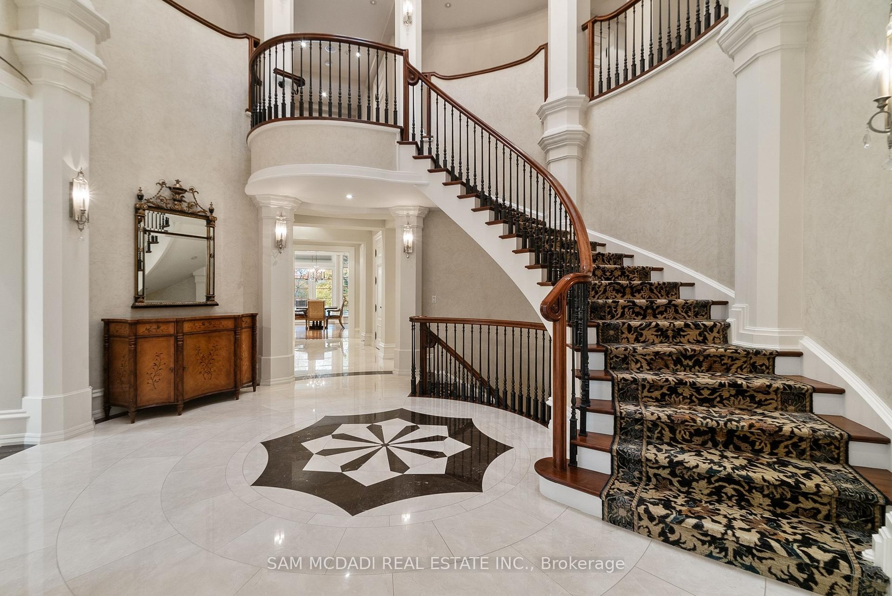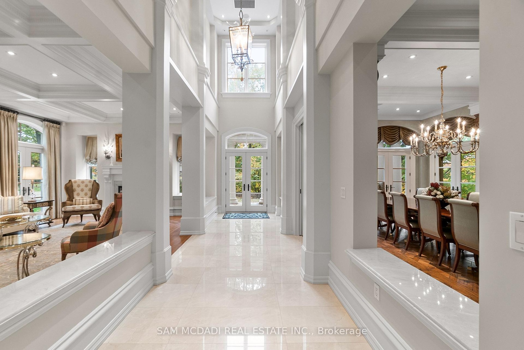Welcome to this architectural masterpiece in Mississauga's most prestigious neighbourhood, backing onto the Credit River & the Credit Valley Golf & Country Club. With direct personal golf cart access to the course from your backyard, this estate is ideal for established professionals & golf enthusiasts. Privately situated on 8.5 acres teeming w/ wildlife, this elaborately designed estate by Ravensbrook Homes boasts over 19,000 SF across all levels, featuring luxurious finishes including radiant-heated marble & hardwood floors. Inside, experience noble interiors w/ soaring ceilings & abundant natural light cascading through expansive windows. The gourmet kitchen is a culinary showpiece overlooking manicured gardens, w/ the Credit River & golf course serving as a sophisticated backdrop. Outfitted w/ premium appliances, quartz waterfall countertops, & herringbone flooring, enjoy seamless entry from the kitchen into the family room, which features an onyx back-lit bar, & the formal dining room via the butler's servery. Each powder room on the main level is a statement of artistry, w/ Venetian-plastered walls & antique fixtures. For working professionals, enjoy two elegant home offices. Ascend to the upper level, where each bedroom offers a calming retreat w/ marble-clad ensuites, walk-in closets, & serene landscape views. The owner's suite rivals world-class hotels, w/ a marble fireplace, private terrace overlooking the lush grounds, dual walk-in closets w/ custom storage, & a 6-piece ensuite elevated w/ body jets, rainfall shower, & soaker tub. W/ a wealth of amenities, enjoy billiards w/ friends, work out in the gym, or wine taste in the cellar. Outdoors, relax in the curated entertainment space featuring multiple seating areas, an oversized cement pool w/ a cedar bar, integrated stone speakers, & sophisticated lighting. W/ an elevator serving all levels & an Elan smart system controlling lights, music, & security, this is Mississauga's most distinguished estate.