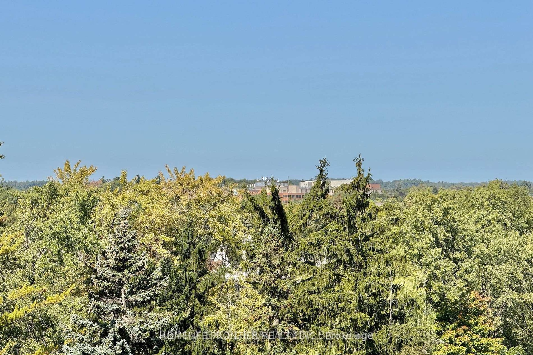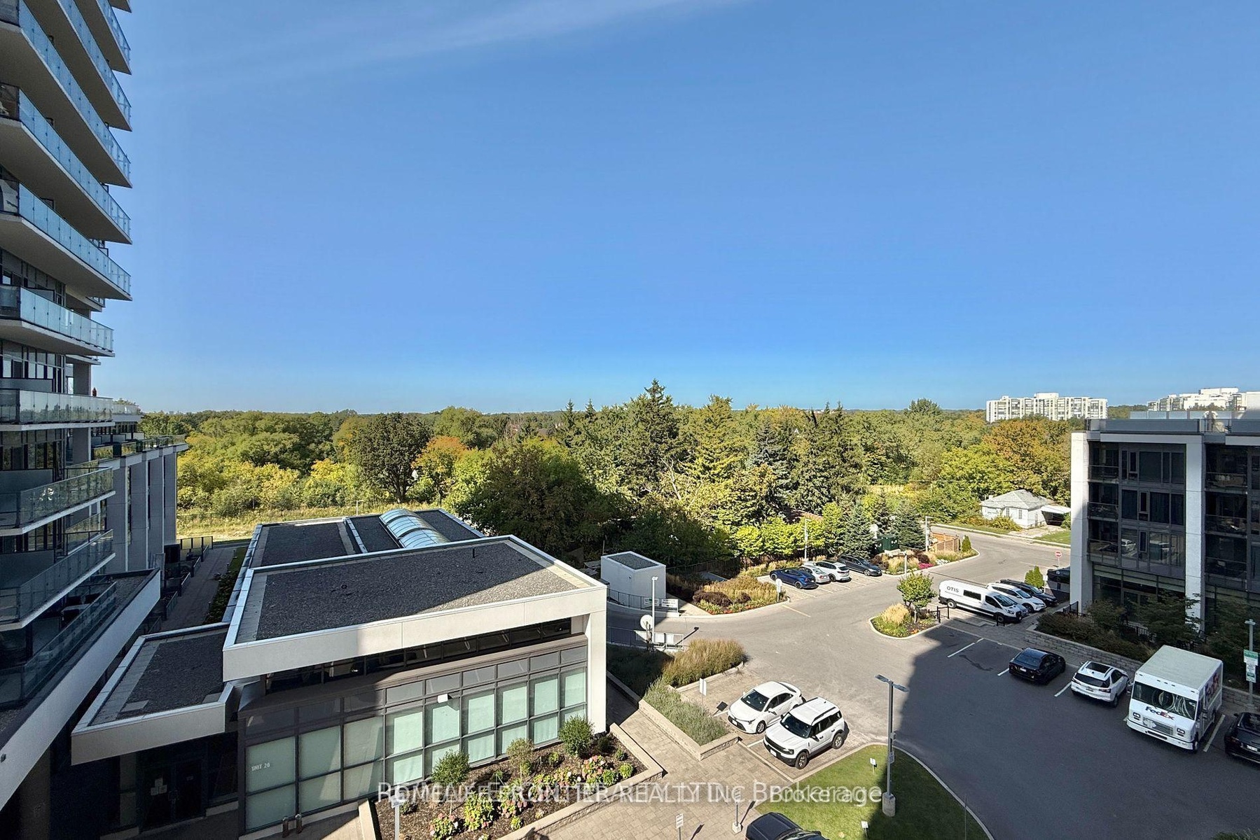 This beautifully designed unit offers 667 sq. ft. of interior space plus an expansive 102 sq.ft. west-facing balcony overlooking a quiet ravine. The primary bedroom features his and hersclosets with upgraded mirrored doors and a semi-ensuite bathroom with an upgraded standing shower. The spacious den can easily be used as a second bedroom or office. Enjoy a bright modern kitchen with full-sized, never-before-used appliances, seamlessly flowing into an open-concept living and dining area-perfect for relaxing or entertaining. Prime location: steps to YRT transit, Hillcrest Mall, supermarkets, and restaurants, with easy access to Hwy 404, 407, the GO Station, and the up coming Yonge TTC extension. Luxurious amenities include: indoor pool, sauna, theatre room, 24-hour concierge, billiards room, guest suite, party rooms, ample visitor parking, and more. Includes: one underground parking space and locker-both conveniently located near the elevator.