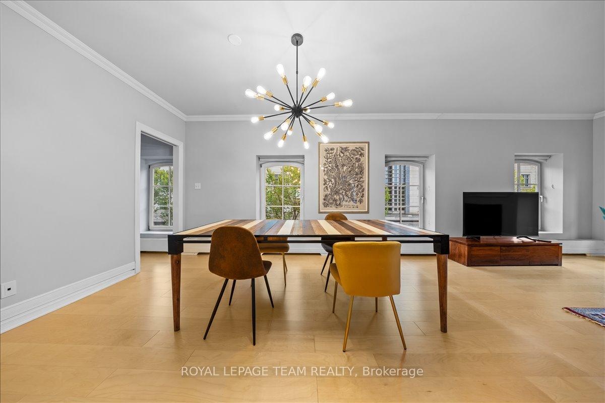 Welcome to Unit #5 at 10 Clarence Street , where history and modern living meet in the vibrant heart of Ottawa's Byward Market. Tucked inside a heritage building that has stood for over a century, this one-of-a-kind FURNISHED corner unit condo blends timeless character with contemporary comfort. Offering more than 1,400 square feet of thoughtfully designed space, this rare find is as spacious as it is charming. Step inside to discover soaring windows that bathe the home in natural light, highlighting newer hardwood floors and a warm, inviting layout. The generous living and dining areas are anchored by a cozy gas fireplace, perfect for unwinding or entertaining. A beautifully updated kitchen with stainless steel appliances makes for enjoyable everyday living. The primary suite is a true retreat, featuring an abundance of closet space and a full 4-piece ensuite bath. Two additional bedrooms provide flexibility for family, guests, or even a stylish home office. A second full bathroom and convenient in-unit laundry add to the comfort and practicality of this downtown escape. Heritage charm flows through every detail, but modern upgrades ensure an easy, urban lifestyle. Enjoy underground parking and a storage locker. Step outside and you're just moments from Ottawa's best restaurants, boutique shops, cultural landmarks, and the LRT for effortless commuting. Also available fully furnished for $4200/month.