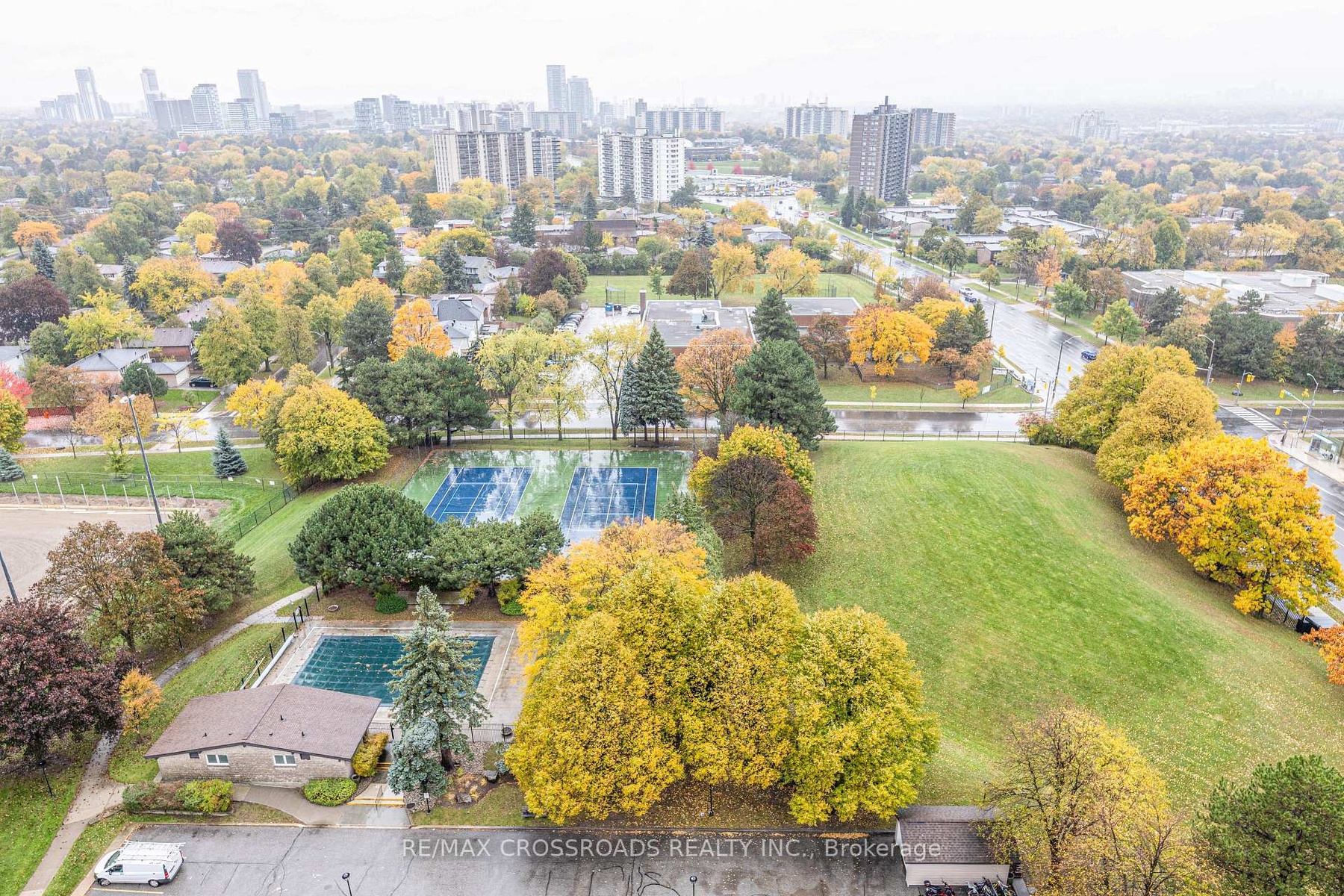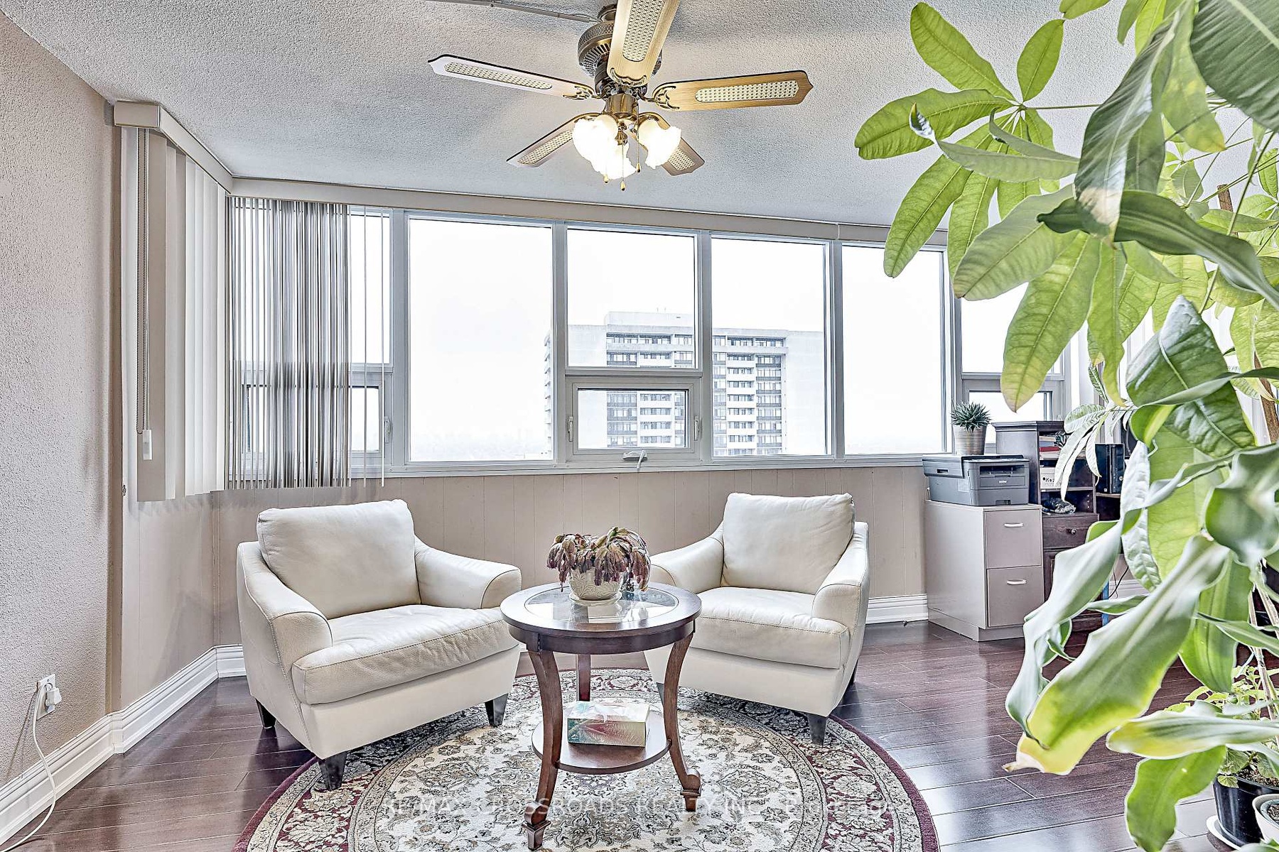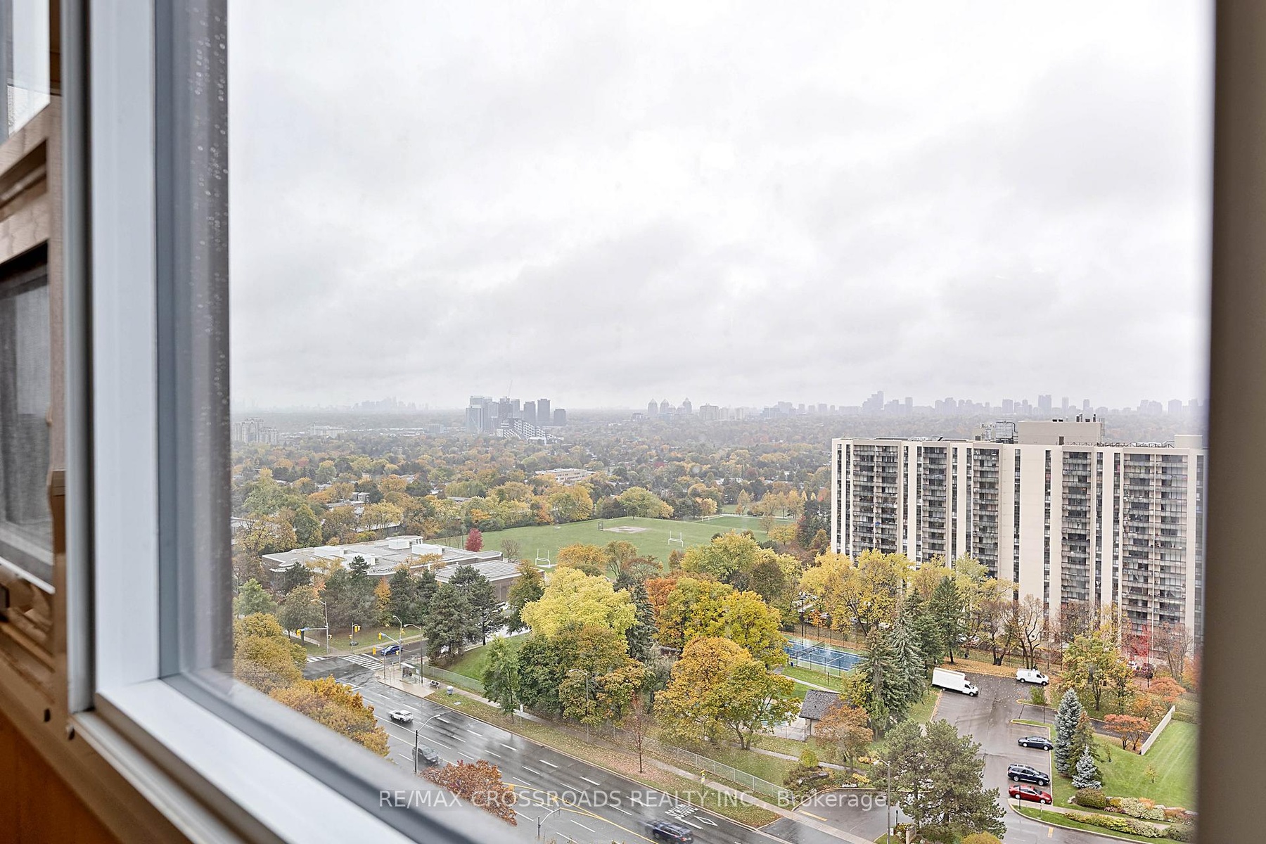 Stunning corner unit on a high floor with the most desirable southwest exposure and unobstructed views of the Toronto skyline. This renovated suite offers a bright, open-concept layout with hardwood floors throughout and a designer kitchen featuring elegant stone countertops. The former den has been opened up to create a spacious living and office area. The primary bedroom includes a custom closet with built-in shelving and a modern ensuite bathroom with a stand-up shower and granite vanity. Step out onto the open balcony to enjoy breathtaking city views. Freshly painted and move-in ready, this home combines style, comfort, and functionality. Includes tandem parking for two cars and access to all the conveniences of condo living. A rare find offering luxury, space, and spectacular views - an ideal choice for urban living at its finest. Condo fee includes Heat, Electricity, Water, High Speed Internet, Five star Amenities, Tennis Courts, Indoor & Outdoor Pools, Billiard Rm, Gym, Squash court. Close to Seneca College and hospital.