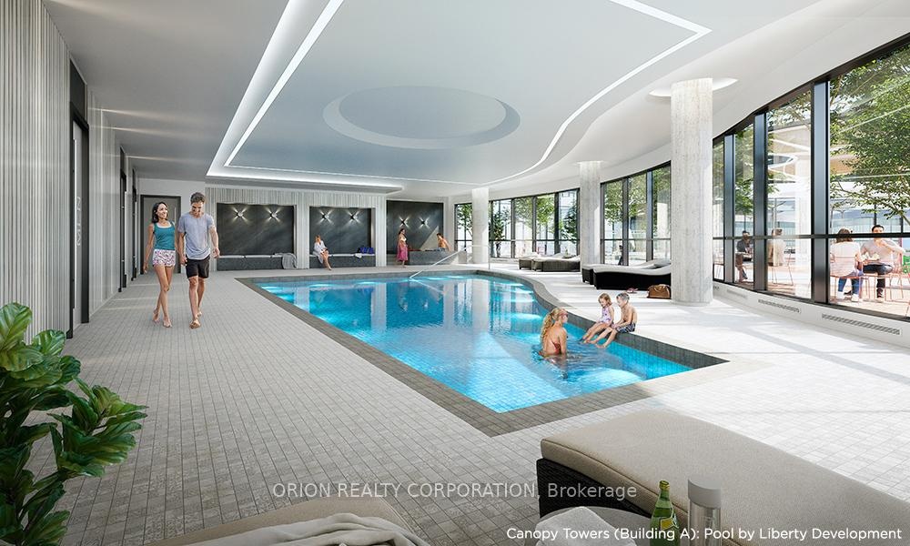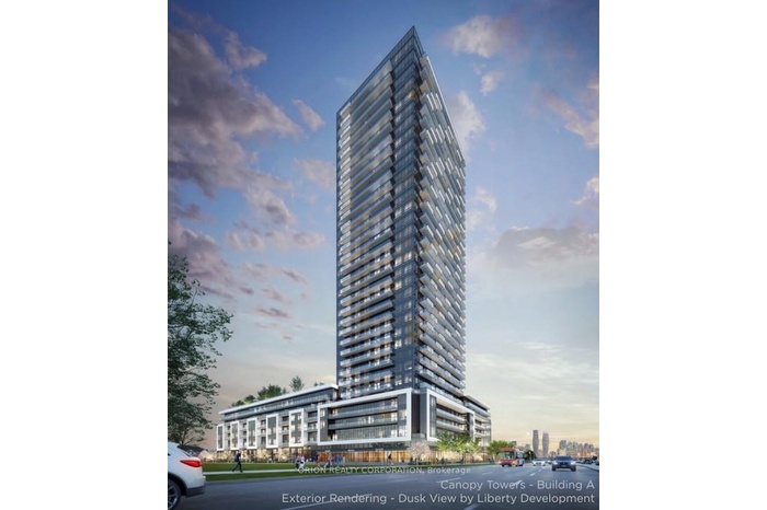 Welcome to Canopy Towers, where modern design meets inspired living. This stunning 1-bedroom + den suite offers 565 sq. ft. of stylish interior space plus an 85 sq. ft. private balcony, perfect for relaxing or entertaining. Rising 34 storeys above a sleek 6-storey podium, Canopy Towers stands proudly at Hurontario Street and Eglinton Avenue-the vibrant urban core of Mississauga. Its bold contemporary architecture and striking façade make it a true standout on the city's skyline. Behind the podium, a gracefully curved lifestyle canopy defines the second level. Beneath it, a sheltered porte-cochère welcomes residents home in style; above it, a lush, landscaped outdoor oasis connects seamlessly to world-class indoor amenities-creating the ultimate space for relaxation and recreation. With a prime location steps from Mississauga Transit and the future Hurontario LRT, life at Canopy Towers is truly a cut above the rest.