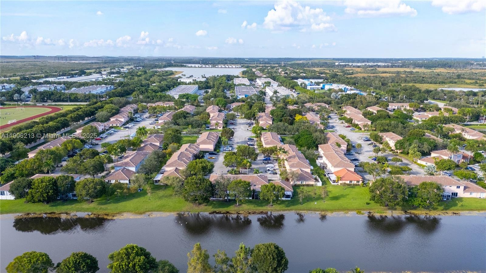 Lakefront townhome in Malibu Bay. Enjoy direct water views from the extra-large enclosed terrace, upgraded with a permanent roof extension: a living space that works as an area for relaxing or working. Kitchen was opened to create an open-concept main level, plus a half bath and laundry space on the first floor. Upstairs offers two private ensuite bedrooms, with its own bathroom and walk-in closet. Functional storage includes one under the staircase and a second storage room by the entry. New roof 2025, and community-wide exterior renovation underway to a modern light-gray façade. Two parking spaces, gated community, clubhouse. Easy access routes: I-75 and US-27, depending on where you’re coming from! Walking distance to Somerset Academy and A+ schools. Not a condo, flexibility financing.