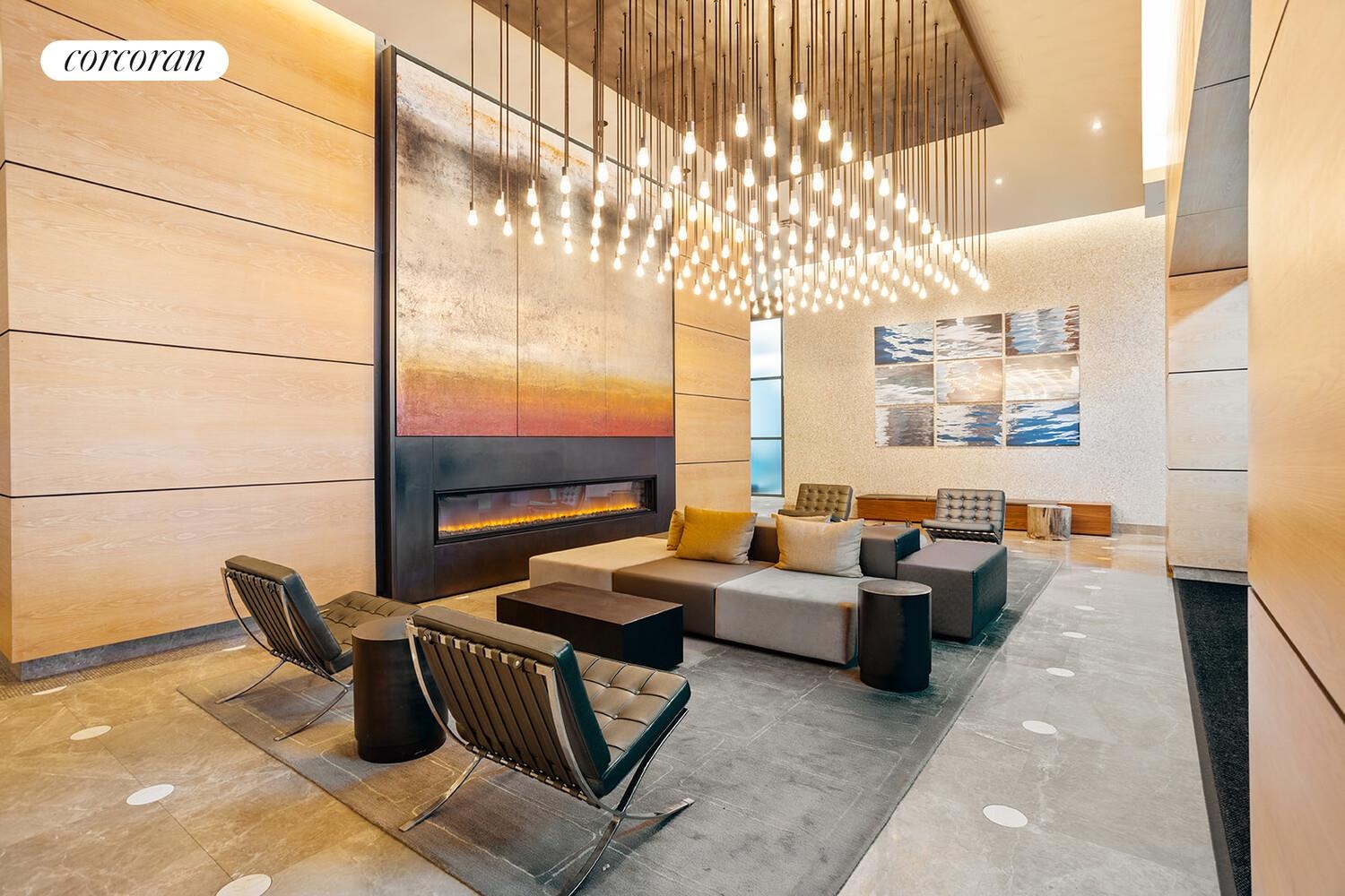 Positioned in the most desirable section of the building, the Southeast corner, this 2 bedroom, 2 bath home offers a peaceful escape with open cityscape views. A spacious living and dining area boasts soaring 12 foot, floor-to-ceiling windows that bathe the home in Southern exposure, natural light and create a sleek, contemporary ambiance. The expansive views perfectly complement the rich Pianeta Legno hardwood floors, enhancing the sense of modern luxury throughout. Just off the open-concept entertaining space, is a fully equipped, floor to ceiling, sun drenched windowed chef's kitchen. Outfitted with premium stainless steel appliances-including a SubZero refrigerator and Viking range-this culinary haven features granite countertops, a sophisticated Veneto glass backsplash, a wine cooler, and custom cabinetry designed for both style and function.