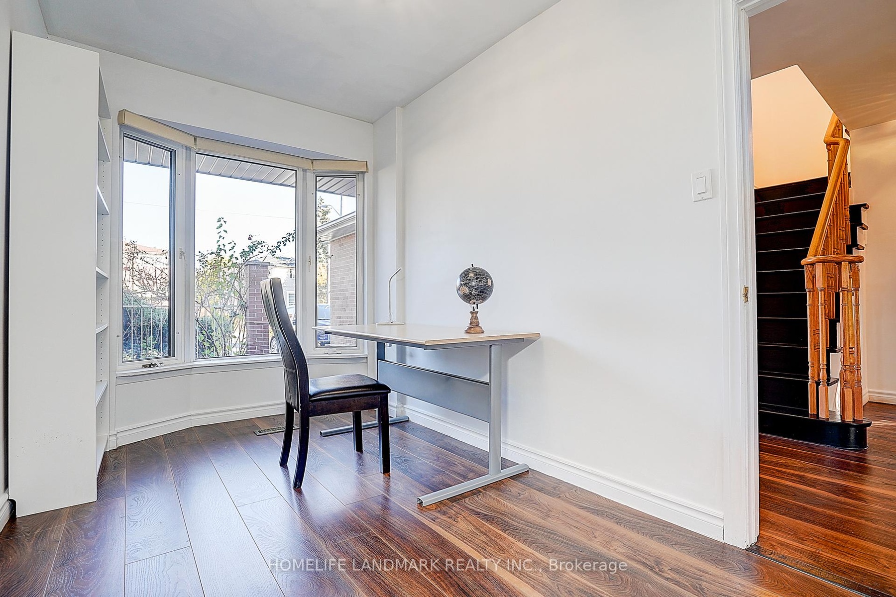 Welcome to this stunning, freshly painted semi-detached home in the heart of North York, perfect for investors, end-users, upsizers, or downsizers alike! This spacious and well-maintained home features a practical and functional layout, providing ample room for everyone. The main floor features a bright living area with direct access to a private garden, an inviting dining space, and a beautifully renovated eat-in kitchen ideal for family meals or entertaining guests. A dedicated office on the main level provides the perfect work-from-home setup or study area. Upstairs, you'll find four generously sized bedrooms, each filled with natural light, offering comfort and flexibility for growing families. The finished basement, complete with a separate entrance, adds incredible versatility. It features a second kitchen, an enclosed family room (ideal as a den, office, or nanny suite), and two additional enclosed rooms that can serve as bedrooms, offices, or storage. Great potential for rental income or multi-generational living! Enjoy a long, private driveway that accommodates up to four cars in addition to a garage. Situated on a quiet, family-friendly street in a highly desirable North York neighbourhood, this home is centrally located close to schools, parks, shopping, restaurants, and public transit. A rare opportunity offering space, flexibility, and endless potential; truly a home that grows with you!