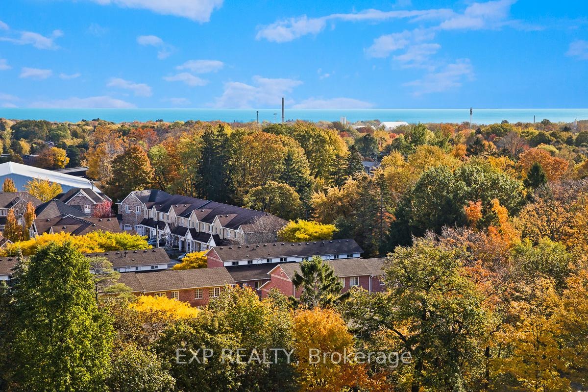 Spectacular Two Bedroom, 2 Full Bathroom Condo With Incredible South East Views Of Lake Ontario. Large Eat-In Kitchen. Bright & Open Living & Dining Room To Enjoy The Beautiful Views of Nature and Lake Ontario. Large Balcony. Spacious Primary Bedroom W/ Ensuite Bath. Ensuite Laundry With Storage & Stand Up Freezer. Very Well Maintained Building With Exceptional Amenities. Steps To Parks, Shops, & Public Transportation! large balcony overlooking the green space and tennis courts, take in the peaceful surroundings and distant lake view! Ideal location for senior living! Building amenities include 24-hour concierge, his and hers fitness centres, party room, library, a summertime outdoor swimming pool, communal BBQ area, scenic walking trails, and multiple outdoor spaces perfect for those who enjoy nature. Conveniently located close to TTC, groceries, banks, restaurants and more, a must see!