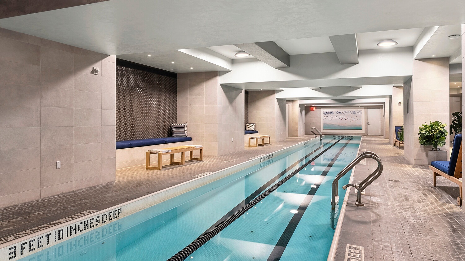 One Hundred Barclay offers its residences the most extensive amenity program available in Manhattan with multiple indoor and outdoor experiences encompassing over 40,000 square feet. The Club Level on the 18th floor is outfitted with a playroom, teen lounge, billiard room, club lounge with bar and dining room, wine tasting room, media room and conference room, entertainment space, as well as four furnished and landscaped terraces offering iconic water and cityscape vistas to take in the sunrises and sunsets. The Fitness and Spa Level encompass a heated lap pool, spa treatment rooms, steam rooms and sauna, Yoga and Pilates studios, and a state-of-the-art fitness center designed by The Wright Fit. The grand and restored Art-Deco reception foyer features ornate design elements including patterned marble walls and ceiling murals that depict the progression of human communications. The SP+ parking garage located at 270 Greenwich Street has parking options available to residents at One Hundred Barclay.