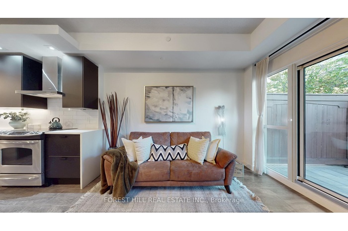 Welcome To Gorgeous Terrace Unit At The Sought-After California Condos. This Beautifully Upgraded 1+1 Bedroom Suite Offers 580 Sq Ft Of Open-Concept Living With Floor-To-Ceiling Windows, A Versatile Den With Custom Built-In Storage Cabinetry, And A Spa-Inspired Bathroom Featuring A Brand New Vanity And Sink. The Sleek Kitchen Is Highlighted Updates Including Newer Counters, Cabinetry, Backsplash, And Fridge, Complemented By Integrated Dishwasher (2023) And New Laminate Flooring Throughout. The Spacious Bedroom Boasts A Custom-built, Walk-In Closet, And Direct Access To A Rare 180 Sq Ft Outdoor Extra-Large Patio That Connects Seamlessly To The Garden Terrace Perfect For Entertaining Or Enjoying Your Own Private Oasis In The City. Residents Enjoy Resort-Style Amenities Including Indoor/Outdoor Pools, Whirlpool, Sauna, Rooftop Terraces, Sky Gym, Yoga/Pilates Studio, Squash Court, Games Room, Theater, And 24-Hour Concierge Services. Ideally Located In Vibrant Mimico, You're Steps From The Waterfront, Scenic Trails, Shops, Restaurants, TTC/GO Transit, And Major Highways, Offering The Perfect Balance Of Lakeside Serenity And Urban Convenience. Option to Add EV Charger for Parking is Allowed. (2024)Built-In Storage Cabinetry