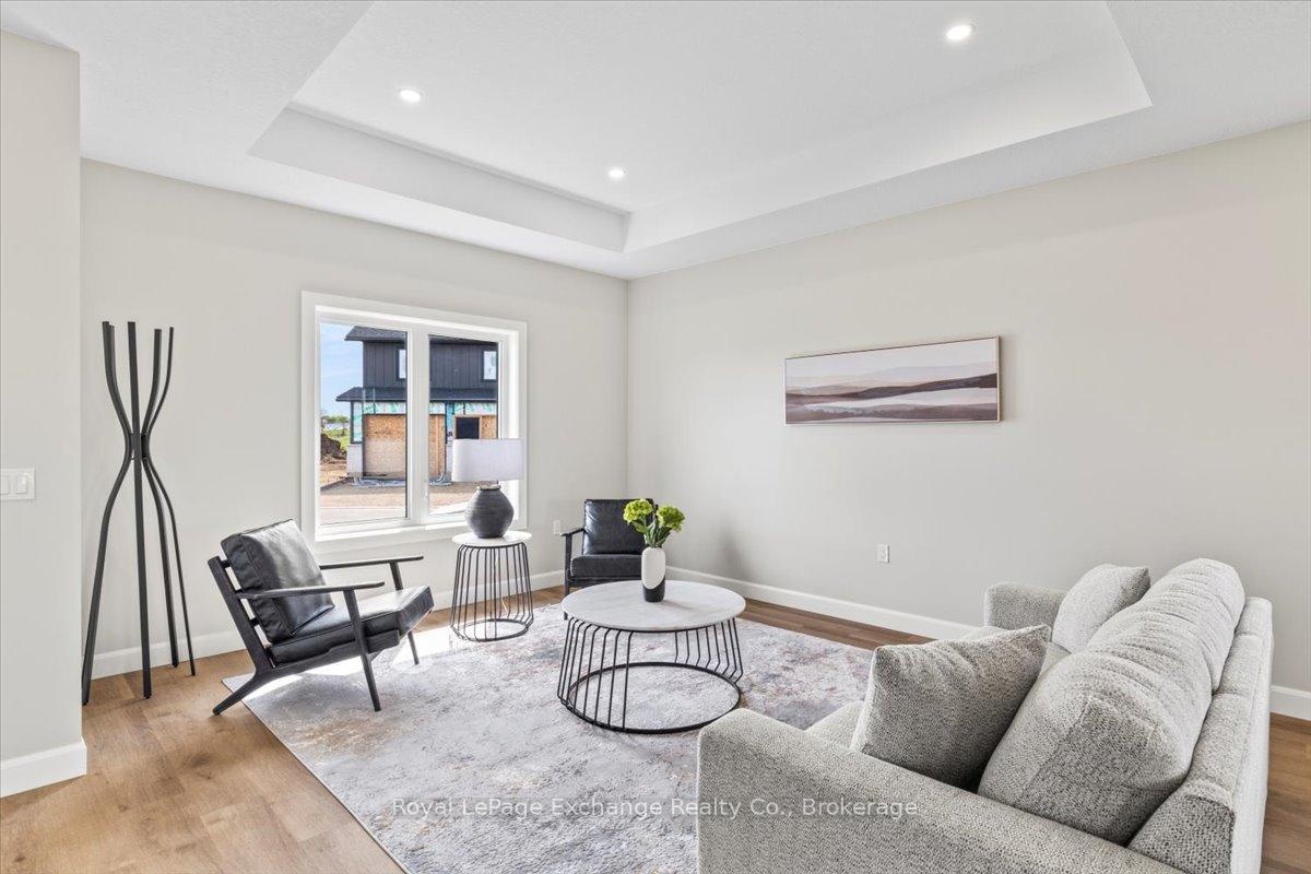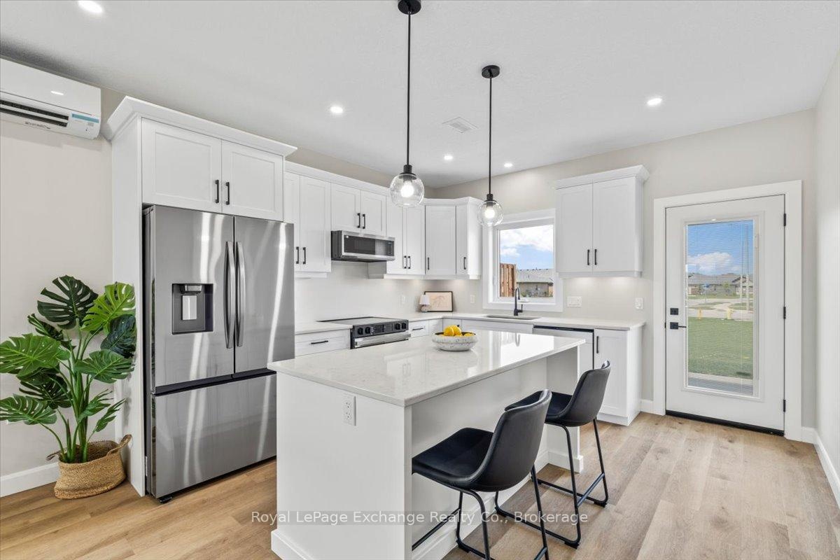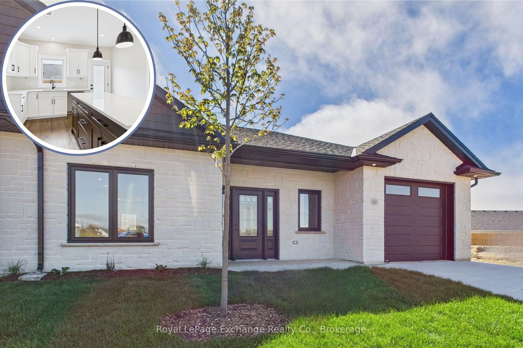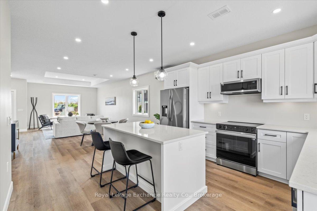 Embrace the lifestyle of modern living in this stunning bungalow 2 bedroom 2 bath townhome, end unit with almost 1400 sq.ft. of living space being offered by Camden Estates. The exterior features a striking combination of stone and black accents that stands out in any neighbourhood. An open concept layout adorned with luxury vinyl flooring throughout. The main living area is thoughtfully illuminated with pot lights. A beautiful tray ceiling in the livingroom adds a touch of refinement, enhancing the spacious feel of the 9' ceiling throughout. At the heart of this bungalow is a designer kitchen featuring a large island, coordinated pendant lighting and quality cabinetry. In addition the kitchen features a pantry and a convenient walkout to a west facing private patio, providing the perfect setting for outdoor dining or relaxation. The Primary suite is a luxurious retreat complete with a walk-in closet and stylish 3 pc bath with beautiful black accents. The second bedroom is amply sized with a double closet and a large window for natural light. A beautifully designed 4 pc bath serves as a perfect complement, ensuring that guests have ample space to unwind. As a Vacant Land Condo you get the best of both worlds -- you own your own home and the land. Enjoying lower condo fees - pay only for shared spaces like road maintenance and garbage and snow removal. This luxurious slab on grade townhome offers not only a beautifully designed interior but also an enviable location. This design is also available as a pre-construction unit with a full basement should you require more space.