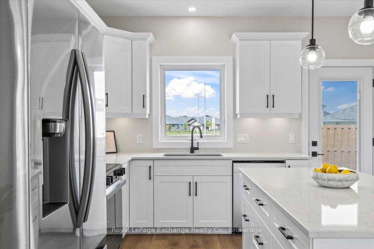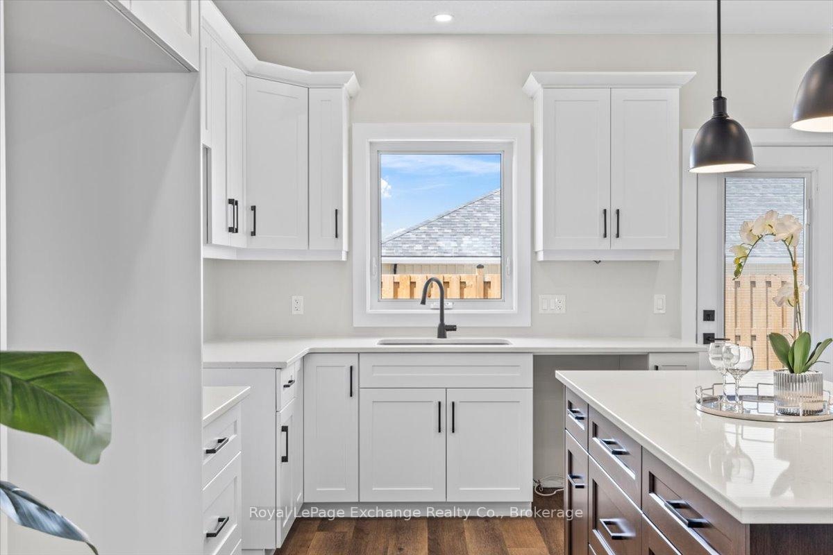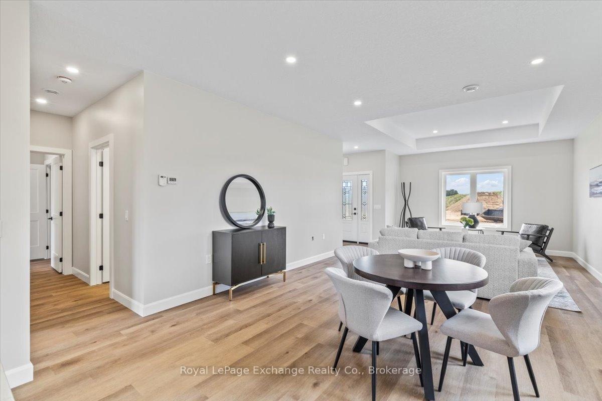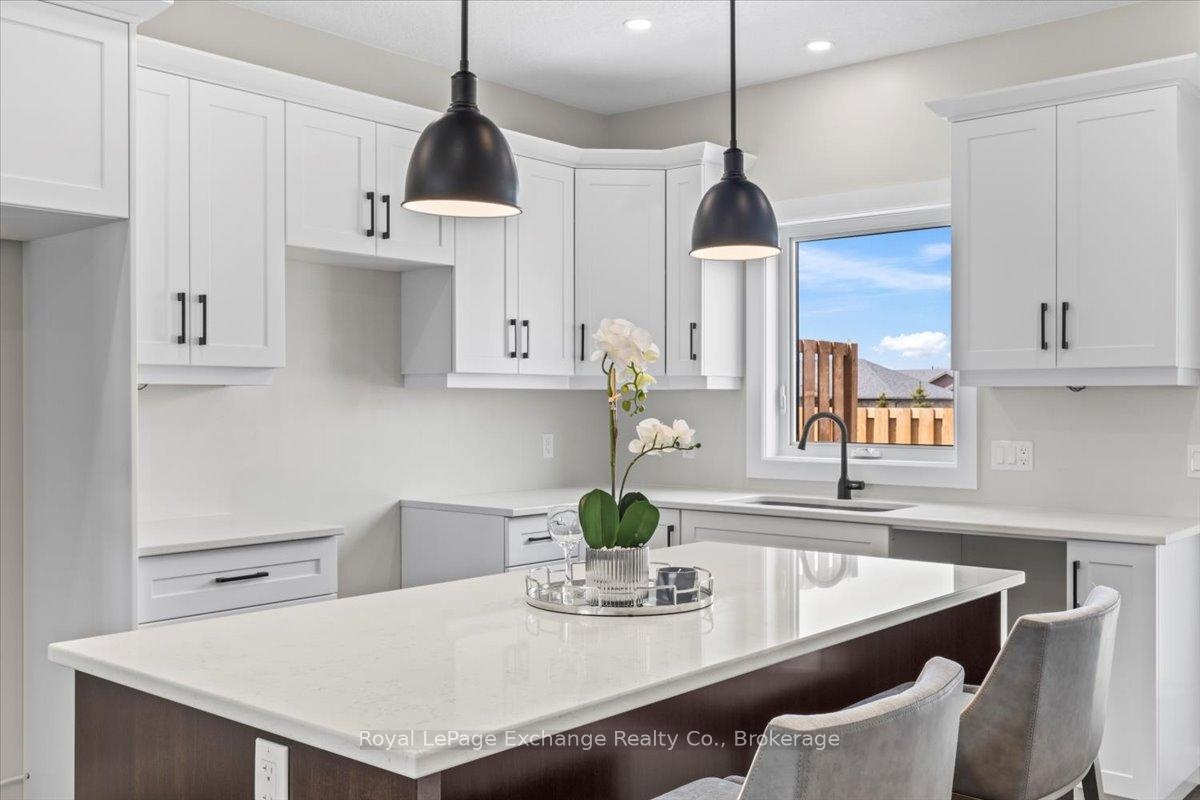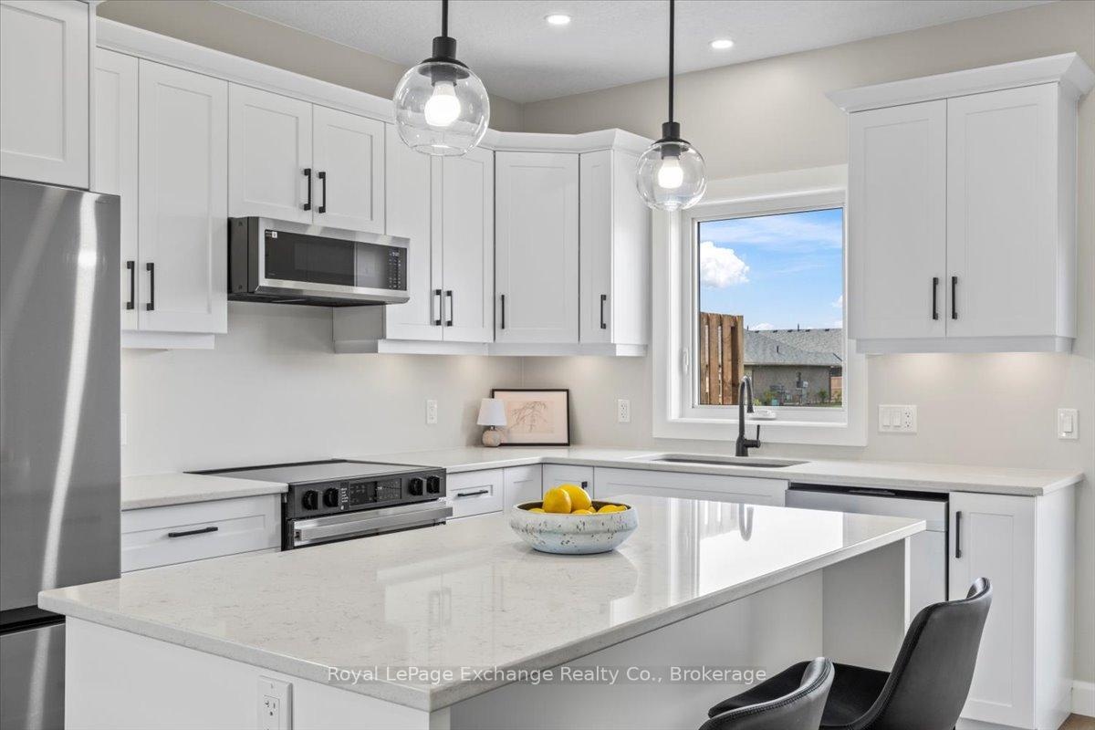 Embrace the lifestyle of modern living in this stunning bungalow 2 bedroom 2 bath townhome, end unit with almost 1400 sq.ft. of living space being offered by Camden Estates. The exterior features a striking combination of stone and black accents that stands out in any neighbourhood. An open concept layout adorned with luxury vinyl flooring throughout. The main living area is thoughtfully illuminated with pot lights. A beautiful tray ceiling in the livingroom adds a touch of refinement, enhancing the spacious feel of the 9' ceiling throughout. At the heart of this bungalow is a designer kitchen featuring a large island, coordinated pendant lighting and quality cabinetry. In addition the kitchen features a pantry and a convenient walkout to a west facing private patio, providing the perfect setting for outdoor dining or relaxation. The Primary suite is a luxurious retreat complete with a walk-in closet and stylish 3 pc bath with beautiful black accents. The second bedroom is amply sized with a double closet and a large window for natural light. A beautifully designed 4 pc bath serves as a perfect complement, ensuring that guests have ample space to unwind. As a Vacant Land Condo you get the best of both worlds -- you own your own home and the land. Enjoying lower condo fees - pay only for shared spaces like road maintenance and garbage and snow removal. This luxurious slab on grade townhome offers not only a beautifully designed interior but also an enviable location. This design is also available as a pre-construction unit with a full basement should you require more space.