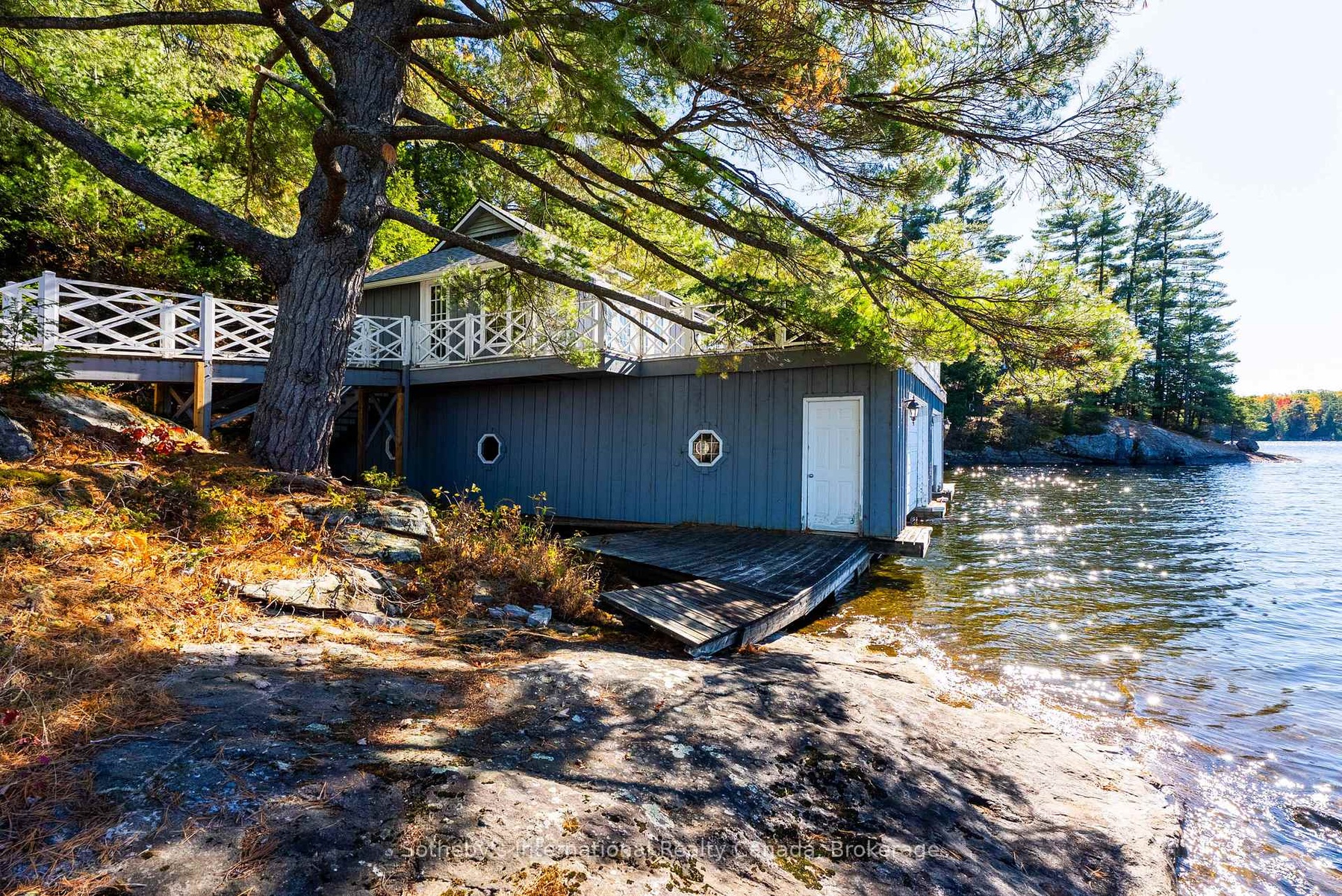 Discover 1076 Birch Point Road - a rare and versatile opportunity on Lake Muskoka offering 390 feet of pristine shoreline and nearly 3 acres of privacy, with iconic northwest views and all-day sun. This timeless setting features granite outcroppings, gently sloping terrain, and a protected bay that's ideal for swimming, paddling, or relaxing at the water's edge. The charming 4-bedroom, 4-bathroom cottage blends vintage character with functionality - perfect for immediate enjoyment or as the foundation for your future vision. A standout feature is the two-storey boathouse with long slips, a spacious rooftop patio, and roughed-in living space above. Zoning approval is in place for a new 1,000 sq. ft. boathouse with living quarters - a significant and increasingly rare asset on Lake Muskoka. Located just five minutes from Gravenhurst, this legacy-caliber property offers the perfect blend of natural beauty, privacy, and long-term potential in one of Muskoka's most prestigious lakefront communities.