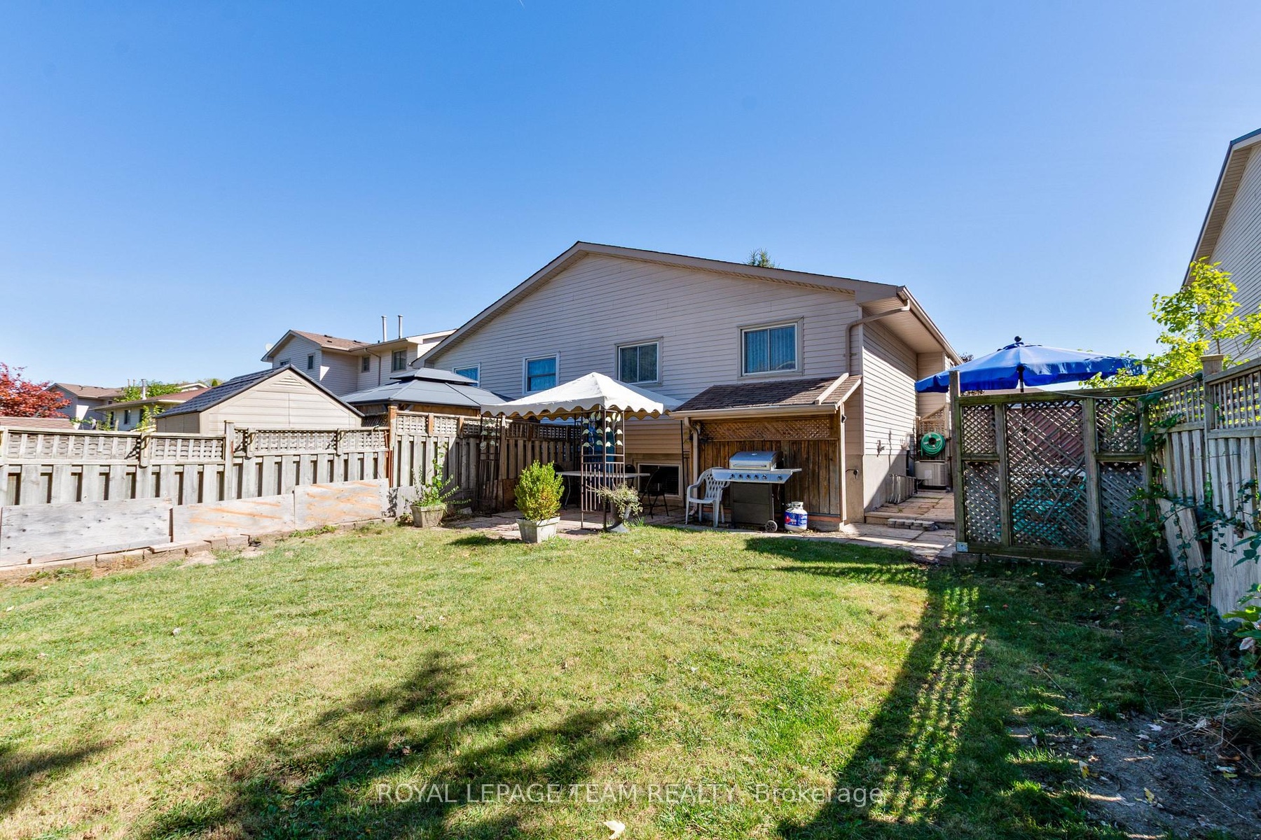 Charming raised bungalow in a prime location! Offering 3 bedrooms and 2 full baths, this home is designed for both comfort and function. The main floor welcomes you with a bright living/dining room and a well-sized kitchen with island and French door entry. Downstairs youll find a spacious rec room, additional bedroom, and full bath, with a separate entry that provides great in-law suite potential. Enjoy parking for 3 vehicles on the cement driveway (2018), and benefit from an owned hot water tank. Nestled near the 401, airport, shopping, great rated schools, public library, and recreation facilities like swimming and rock climbing! Recent updates include roof & furnace (2018), new appliances & thermostat (2025), plus fresh paint. A wonderful opportunity not to be missed!