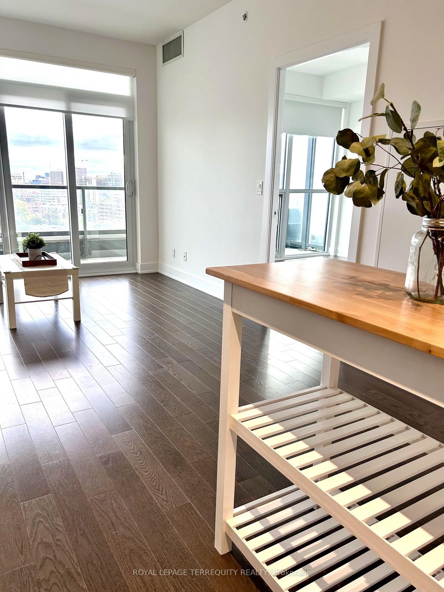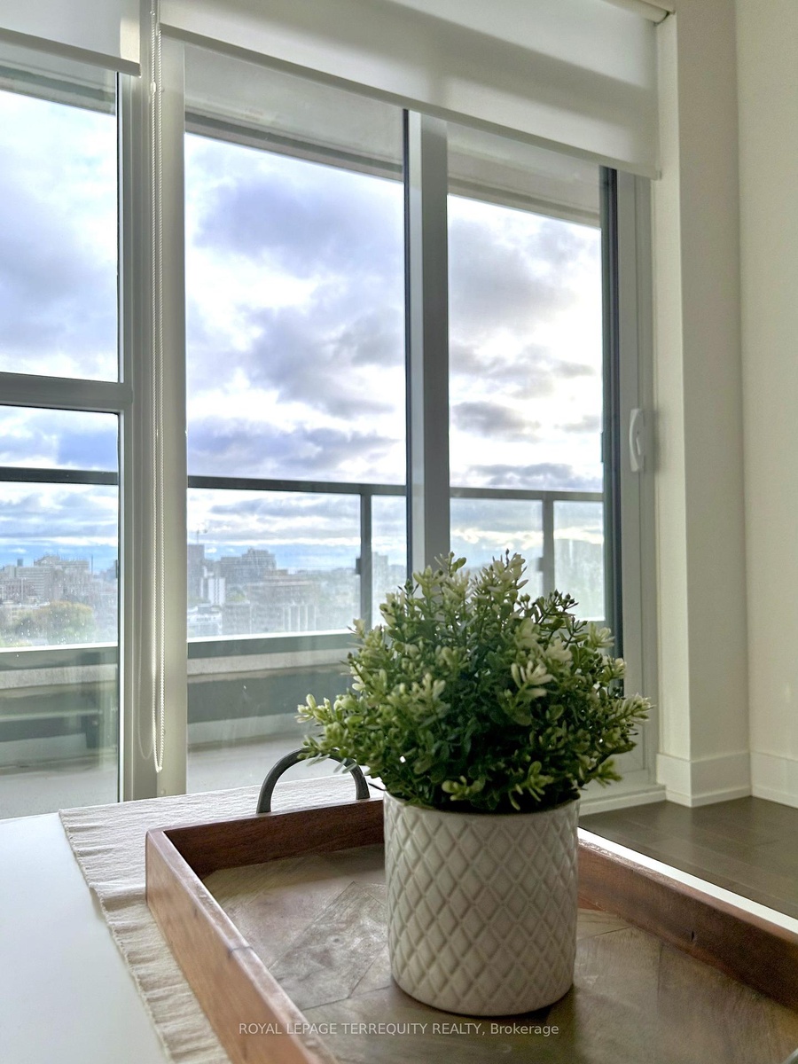 Bright Luxury Condo In The Upper Annex. This Sun Filled South Facing Suite Offers Over 700 Square Feet Of Living Space With 9 Ft Ceilings. Large Windows and Balcony Offer Unobstructed Views Of The City And Beyond. The Entrance Leads You to The Open Concept Modern Kitchen with Stainless Steel Appliances and Built-in Fridge. Primary Bedroom Has It's Own Ensuite Bathroom. The Luxury Building includes a gym, party room, visitor parking, outdoor terrace with sun deck, concierge/24 hour security. Short Walk to Dupont TTC Station and Yorkville, Restaurants and Shops At Your Doorstep. High Speed Internet included for one year.