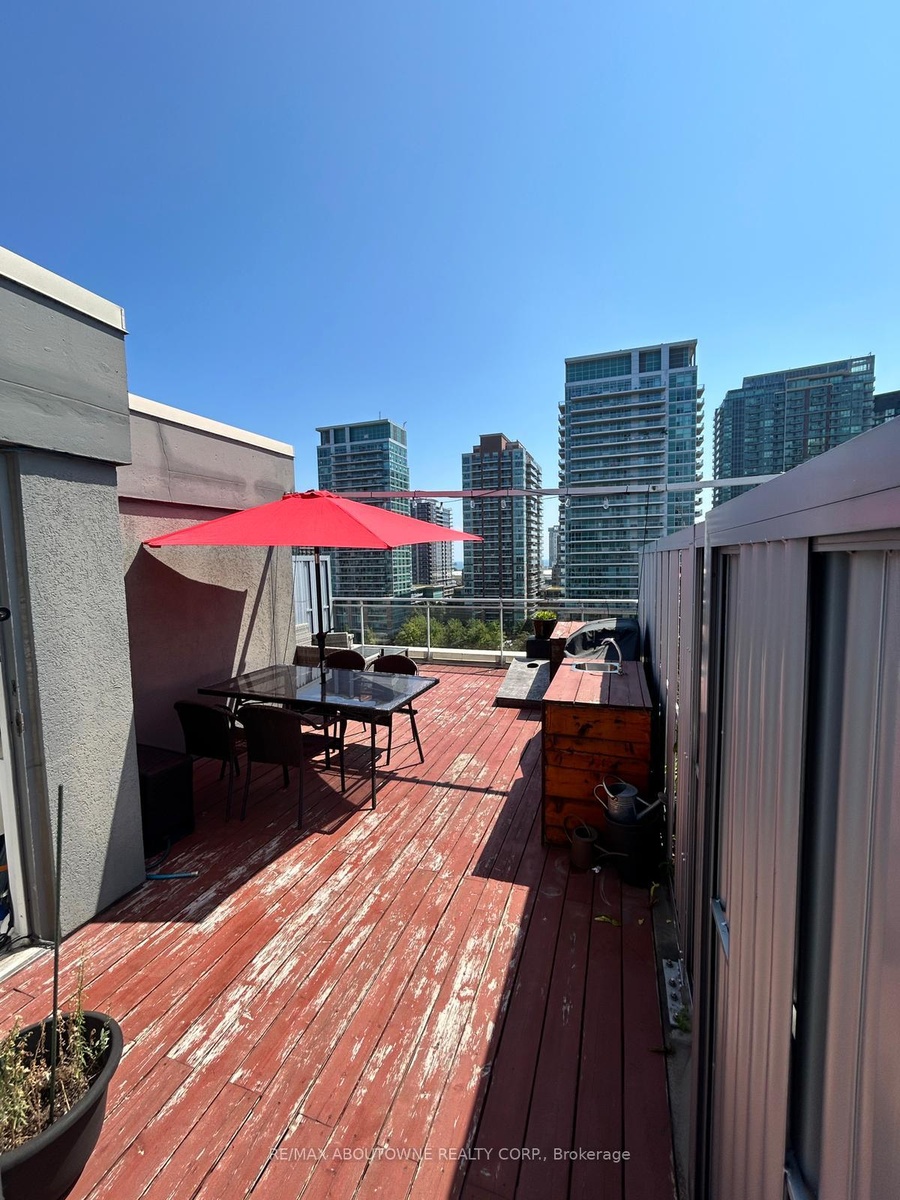 Welcome to Electra Lofts ! Rare 3 story King West penthouse loft style condo with bright floor to ceiling windows, open concept living and dining room with exposed concrete ceiling. Top of the line stainless steel appliances, 2 south facing balconies, large 300 square foot private rooftop terrace with custom cedar decking. 2 bedroom, 2 bathroom. 24 hour express TTC at your doorstep along with grocery, wine rack, Starbucks & Tim Hortons. Short walk to restaurants & shopping. Underground parking, storage locker , heat, hydro & water included. Available immediately.