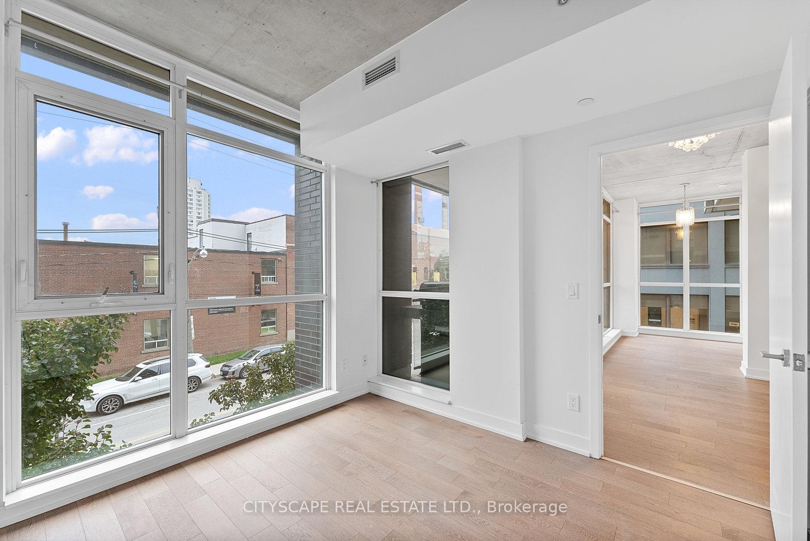 Welcome to The Taylor By Streetcar Boutique Lofts in the Heart of Leslieville! Stylish 2 Bed plus den, 2 Bath West-Facing Unit - 9' Exposed Concrete Ceilings, Floor-to-Ceiling Windows - Large Balcony with Gas BBQ . Bright & Open Concept Living with Engineered Hardwood Floors. Modern Kitchen with Quartz Countertops, B/I Appliances. Primary Bedroom with Ensuite and Walking Closet. 1 Parking Included. Steps to Trendy Leslieville Restaurants, Shops, Minutes from Queen/Gerrard Streetcars and right next to THE NEW (coming Soon) ONTARIO LINE and Parks. Don't Miss The opportunity to Live in one of Toronto's Sought-After Neighbourhood that will be minutes from Downtown by subway in the near future,....