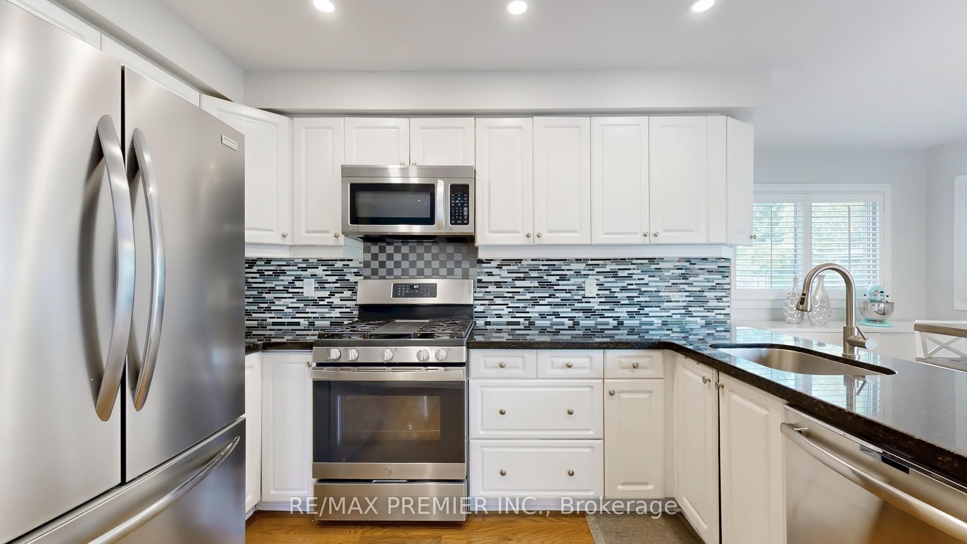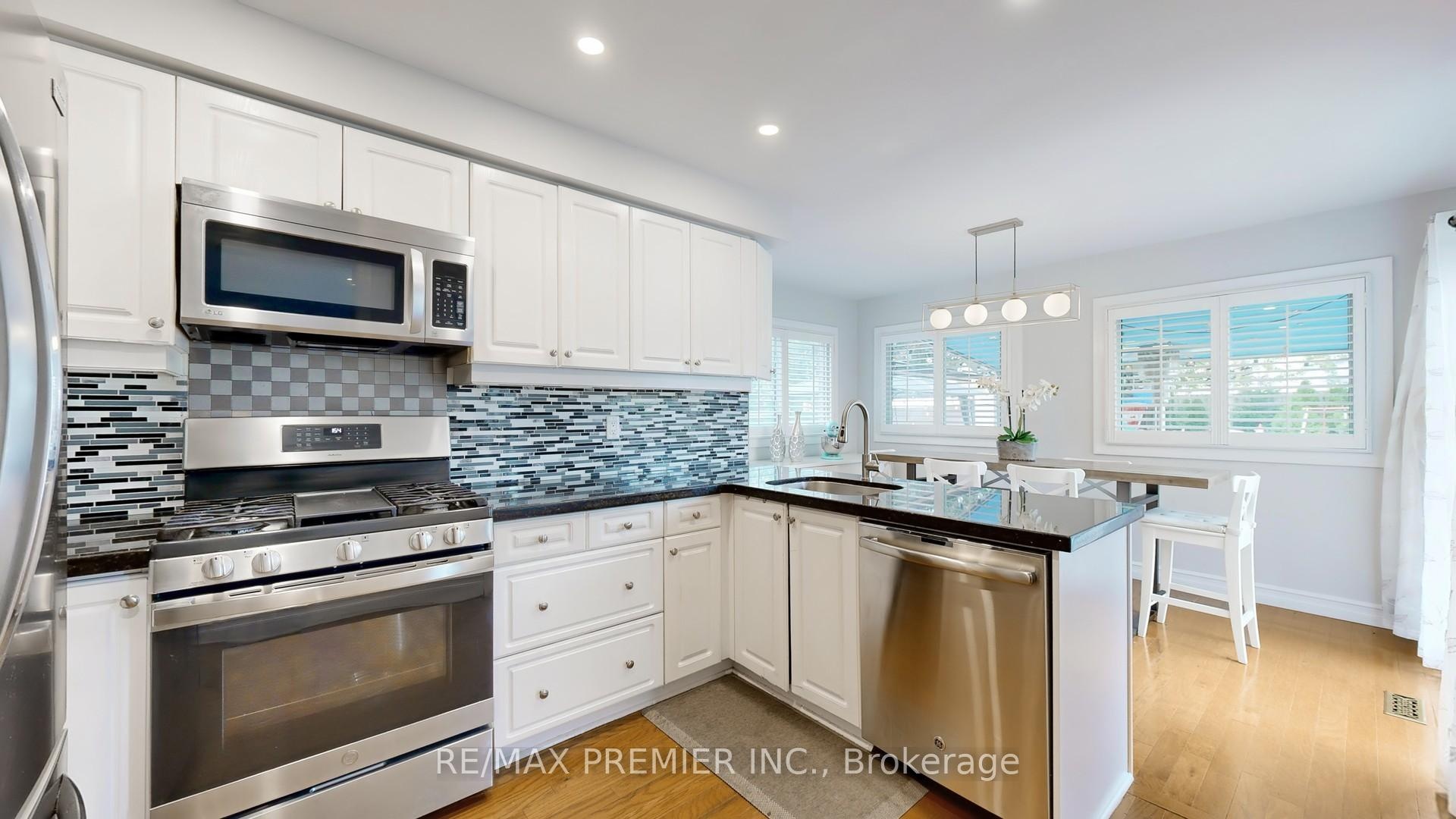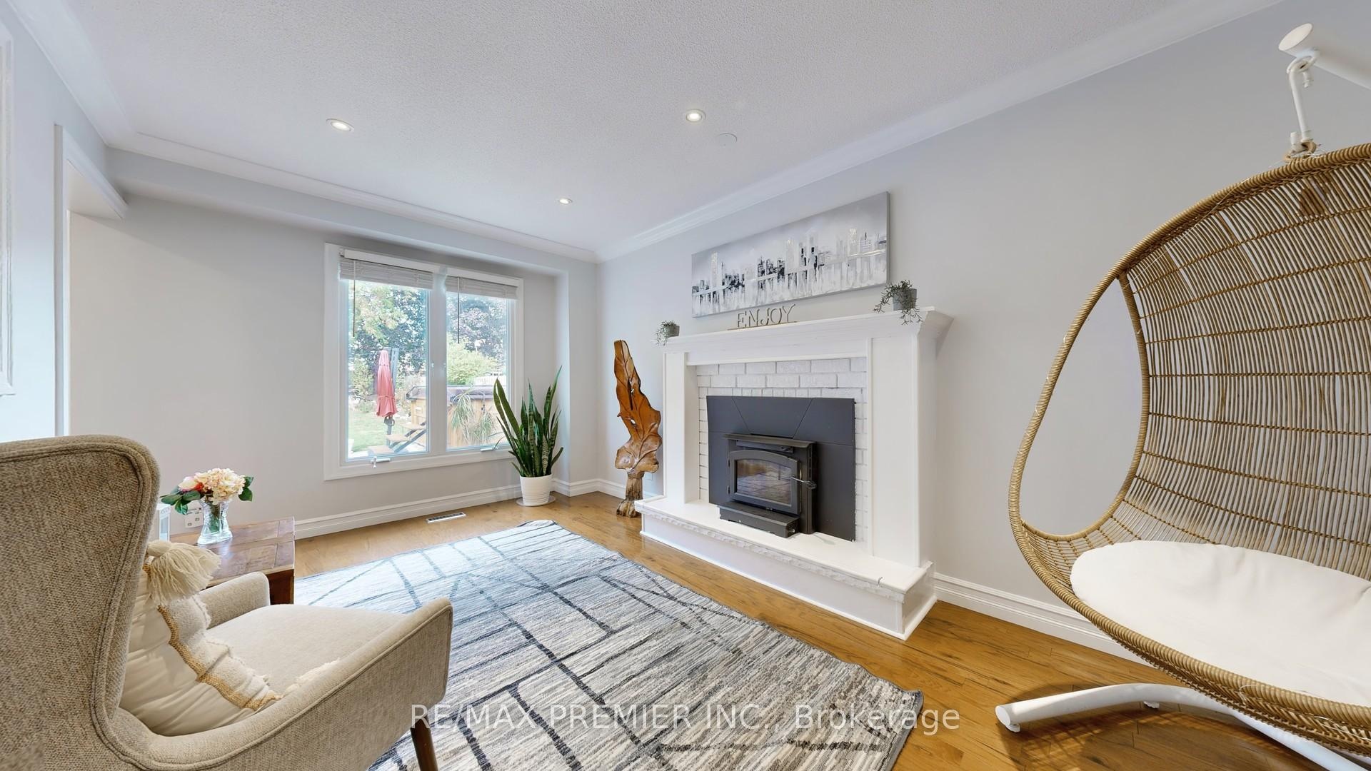 Impeccably renovated 4-bedroom home on a large pool-sized lot, offering a spacious combined living/dining room, a bright greenhouse kitchen with granite counters, backsplash, stainless steel appliances, and walk-out to a covered patio. The inviting family room features a cozy fireplace and modern pot lights, while the upper level boasts 4 generous bedrooms including a primary retreat with walk-in closet and ensuite bath. Renovated throughout with elegant crown moulding, hardwood staircase, newer garage doors, 200 AMP service, roof (2016), furnace (2014), and HWT (rental). Major upgrades include a Reliance Smart Air conditioning system (2021), exterior painting (2024), full interior paint (2025), interlocking patio (2022), and pot lights around the home (2023). The finished basement with separate entry showcases a stunning Italian kitchen with marble counters, washer/dryer connections with modern cabinetry, high ceilings with extra insulation, pot lights, waterproof vinyl flooring (2023), an additional bedroom/gym, den/office, rec room, 3-piece bath, and a newly purchased refrigerator (2025). A true move-in ready residence combining timeless elegance, thoughtful upgrades, and endless possibilities. perfect Basement for in-law family or potential income.