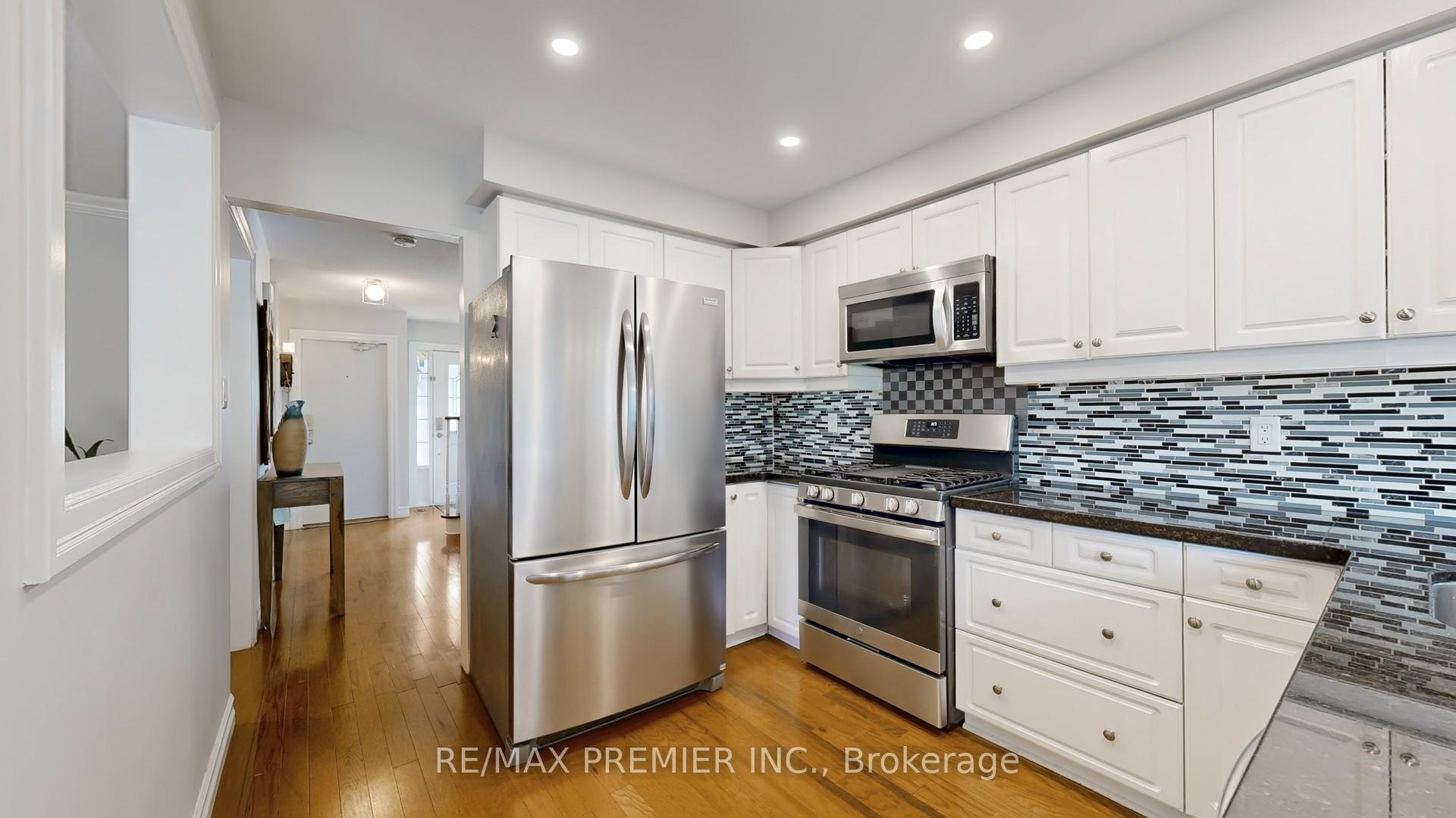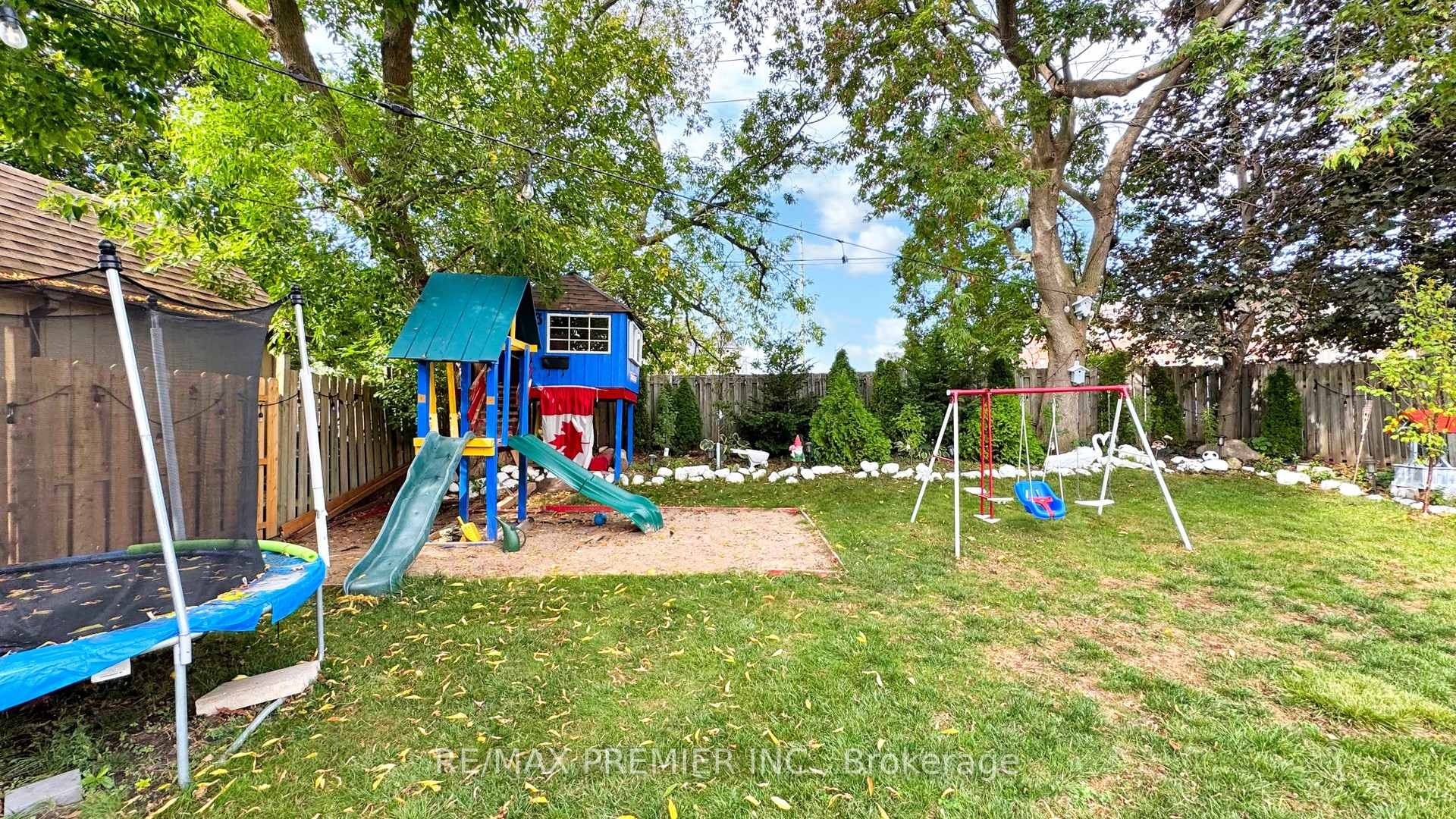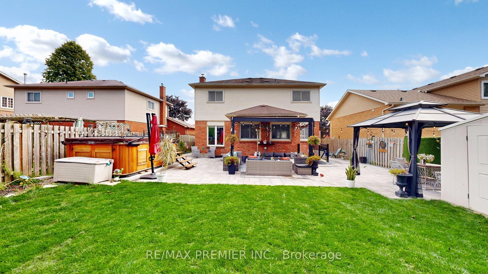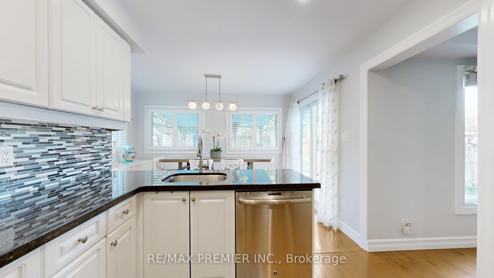 Impeccably renovated 4-bedroom home on a large pool-sized lot, offering a spacious combined living/dining room, a bright greenhouse kitchen with granite counters, backsplash, stainless steel appliances, and walk-out to a covered patio. The inviting family room features a cozy fireplace and modern pot lights, while the upper level boasts 4 generous bedrooms including a primary retreat with walk-in closet and ensuite bath. Renovated throughout with elegant crown moulding, hardwood staircase, newer garage doors, 200 AMP service, roof (2016), furnace (2014), and HWT (rental). Major upgrades include a Reliance Smart Air conditioning system (2021), exterior painting (2024), full interior paint (2025), interlocking patio (2022), and pot lights around the home (2023). The finished basement with separate entry showcases a stunning Italian kitchen with marble counters, washer/dryer connections with modern cabinetry, high ceilings with extra insulation, pot lights, waterproof vinyl flooring (2023), an additional bedroom/gym, den/office, rec room, 3-piece bath, and a newly purchased refrigerator (2025). A true move-in ready residence combining timeless elegance, thoughtful upgrades, and endless possibilities. perfect Basement for in-law family or potential income.