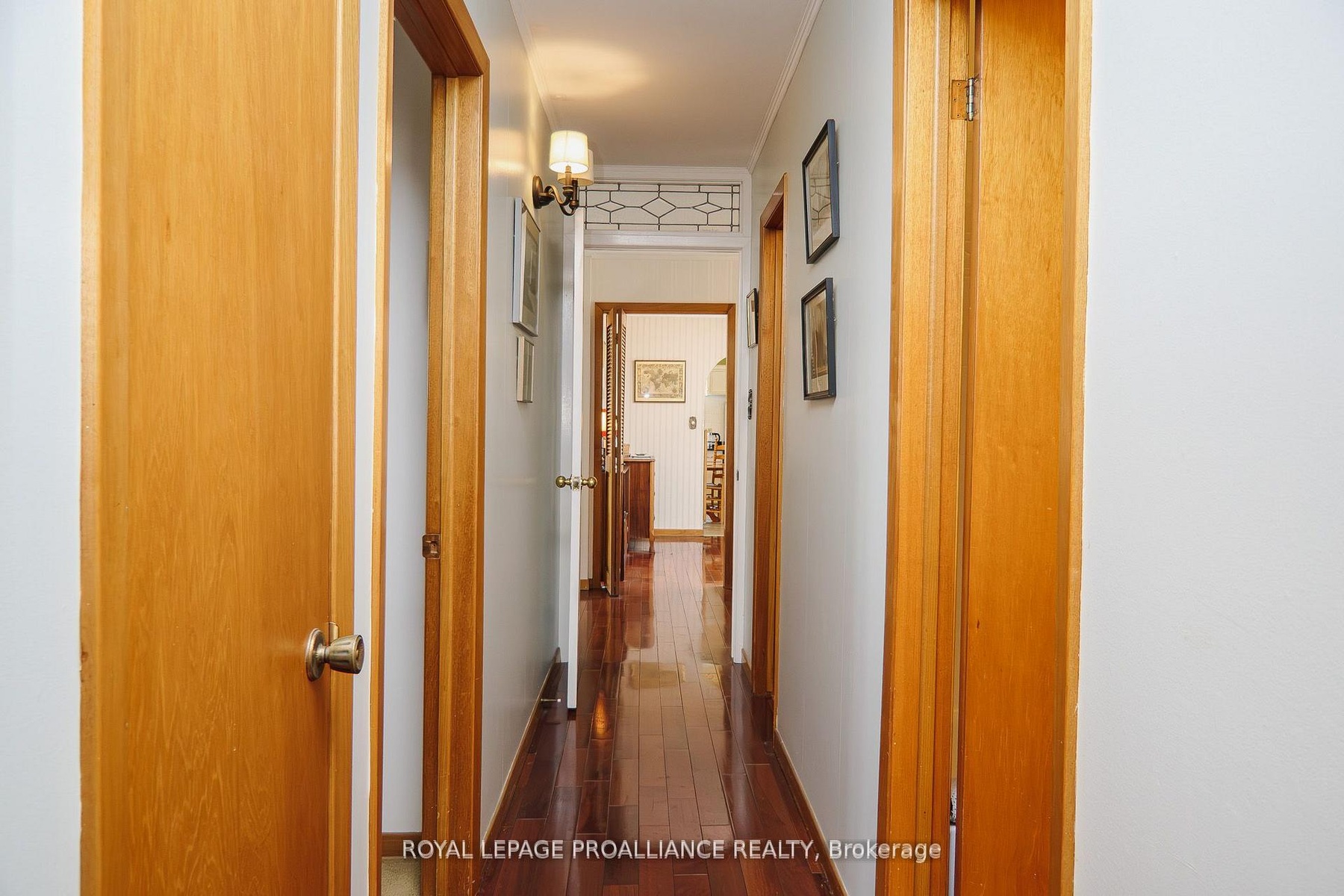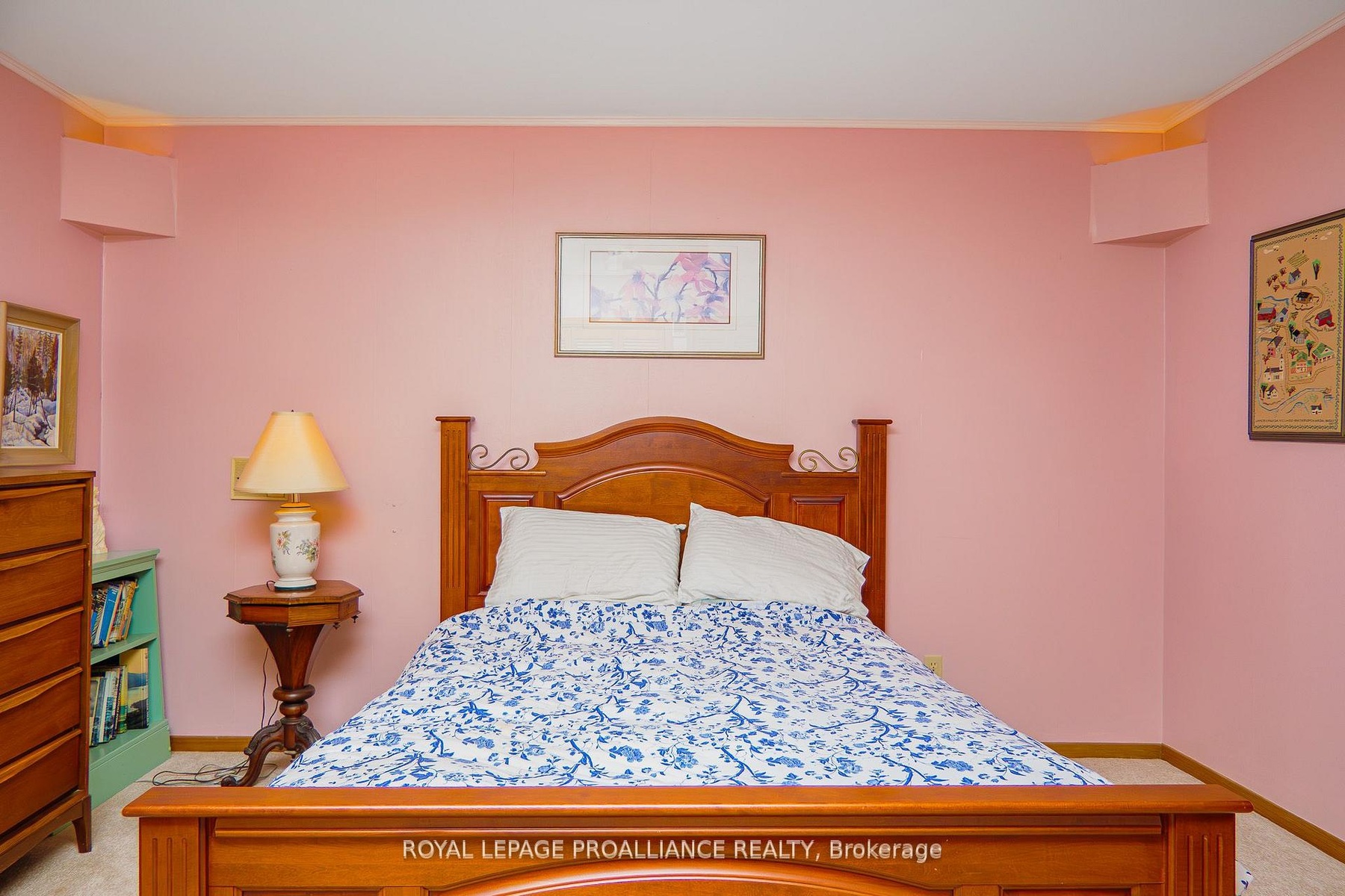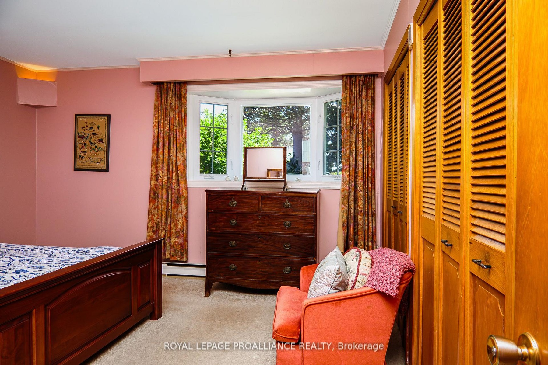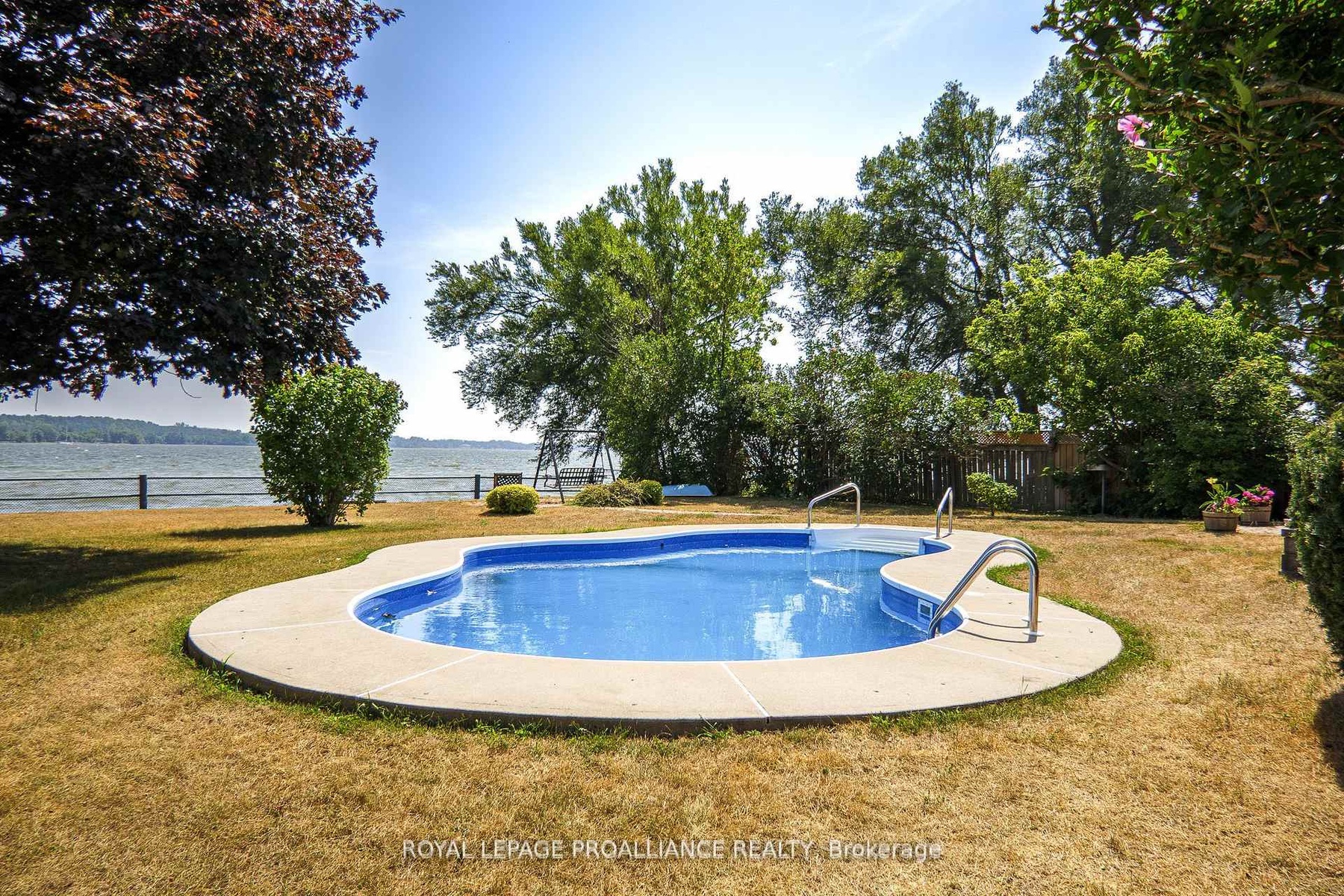 The one you have been waiting for! Stellar Bay of Quinte waterfront, municipal water, nat. gas, 0.4acre lot & UNOBSTRUCTED Southern water view w/ approx. 100ft of pristine, weed free shoreline. Located on the end of a dead-end street w/ no through traffic, this stunning waterfront home ticks all the boxes. 2075sqft - check, one lvl living - check, attached dbl garage - check, 3 bdrms (with option for a 4th) - check, 3bathrooms - check, inground swimming pool - check, seawall with ability for docking - check, years of enjoyment - definitely!. Home was built in 1974 & has been home to same person for the last 40 yrs. Front pillars & a curved drive lead you home to a stone & brick ranch-style bungalow. Oversize dbl garage has 2 individual 9ft garage doors & inside entry to a bonus recreation rm on the main floor. This room makes for a great office, 2nd family rm, hobby rm, exercise area or can be utilized as a 4th bdrm. This room also has a separate entrance which could lend itself nicely to multigenerational living or in-law suite potential. The spacious main floor offers over 2000sqft of living space with no stairs, making this ideal for those looking for one-lvl living. This great layout also doesn't compromise on living space boasting: a formal dining area for family gettogethers, an eat-in kitchen w/ granite counters, formal living rm with 1 of 2 gas fireplaces, a family rm off kitchen & M/F laundry/utility. On the east wing of the house, separated by a French door, are 3 bdrms incl Primary suite on water side offering bay window & dbl closets. Additionally, in the bdrm wing are 2 full baths including a 5pc bath w/ dbl sinks & a 3pc bath. Other features incl: dbl front doors, forced air gas furnace, C/Air, architectural shingles & hdwd flooring. The backyard is an outdoor paradise w/ its panoramic view of the Bay, inground kidney-shaped pool, interlocking back patio with gazebo, mature trees, fully fenced yard, shed, curved dbl drive & beautiful landscaping.