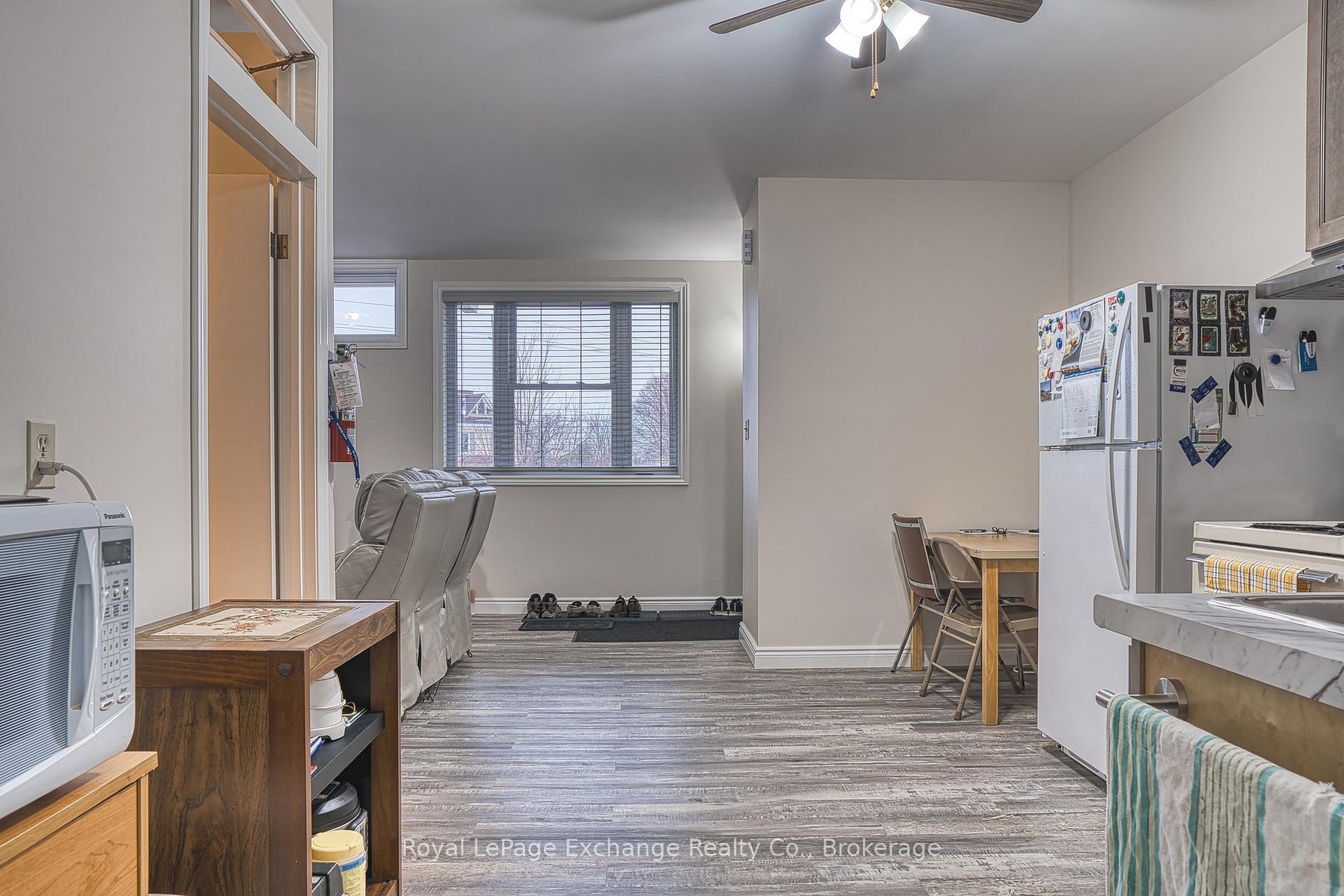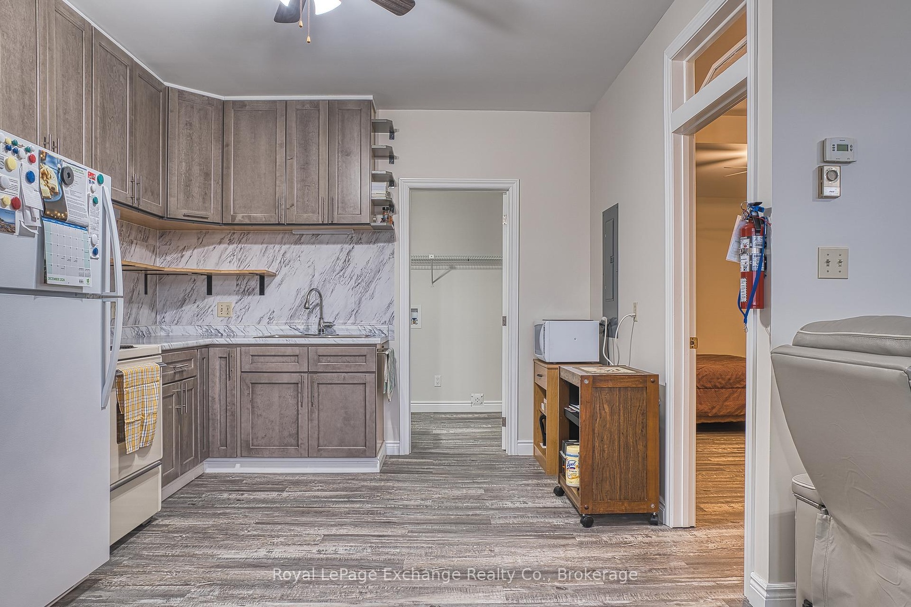 Investor Alert: Welcome to Your Next Investment Opportunity. This well-maintained legal 5 Plex located just off the square in Goderich includes: 1-4 bedroom, 2-2 bedroom, and 2- 1 bedroom units. All units are spacious and include fridge, stove, and some also offer washer/dryer hookups. There's also a coin-operated washer and dryer on site. All units are separately metered, keeping the operating costs low. Units are heated by way of electric baseboard and natural gas furnace; each unit has its own hot water tank. An additional 3 units could be added with the upper 4-bedroom split into 2 units, and 2 more 1 bedrooms could be added to the unfinished lower level, increasing the cashflow on this property. The building currently has one tenant plus the owner occupying space, allowing the new owner to choose their tenants at market rents. Additional space includes a large garage for storage, extra rooms in the lower level for potential rentable storage space or a maintenance person's work area. The property is surrounded by mature trees, and the asphalt parking lot has plenty of room for parking, along with entrances off two streets. When fully occupied at market rent, this investment offers a cap rate of over 6%. Seller would work with Buyer to fill the units before closing. Don't miss the chance to own an investor's Gem in today's multi residential real estate market.
