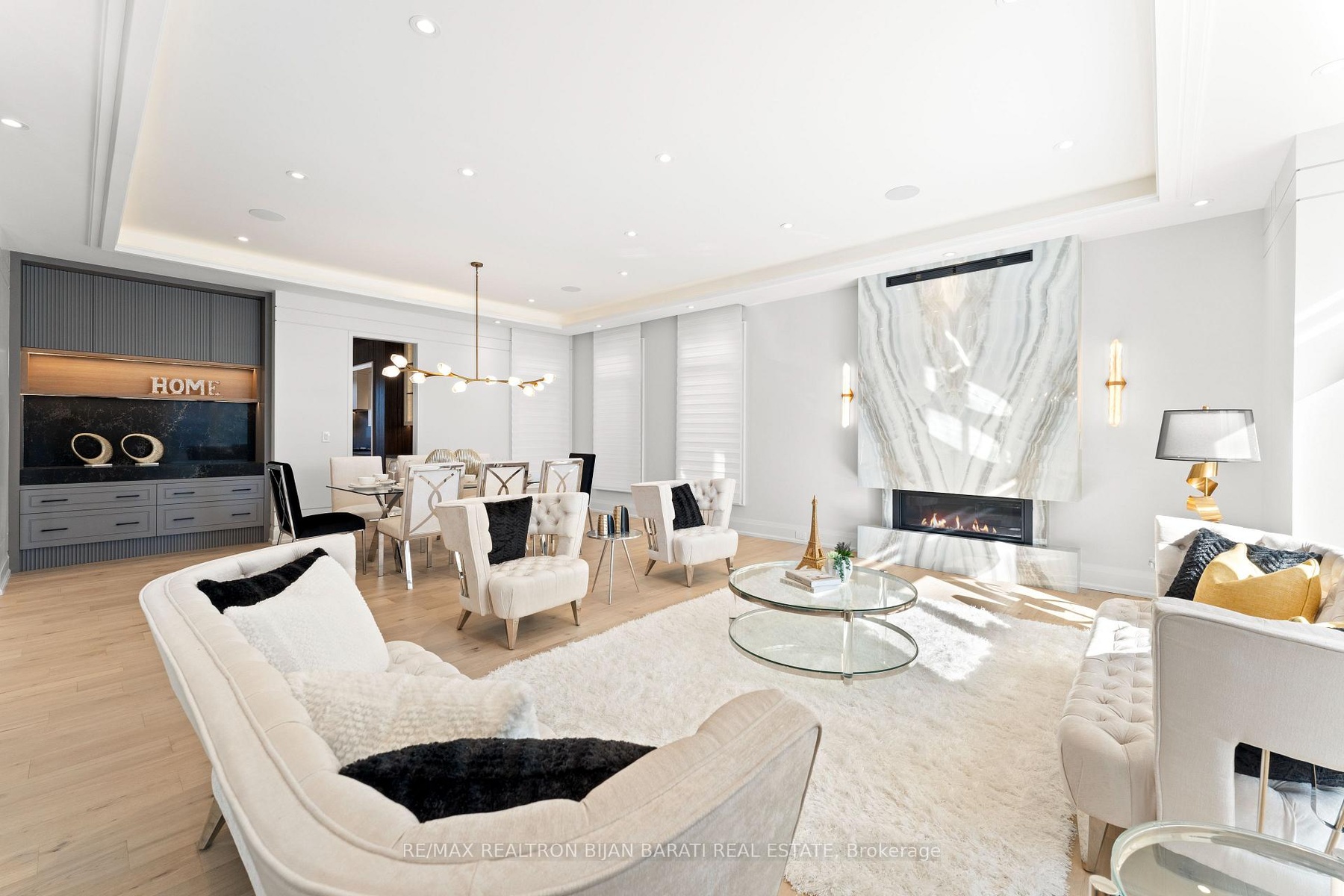 Welcome To a Timeless Masterpiece With a 75 Feet Frontage and Over 5,500 Sq.Ft of Luxurious Living Space Where Classic Architectural Elegance Meets Cutting-Edge Contemporary/Modern Interior Design! This Stunning 2-Storey Home Seamlessly Offers the Perfect Balance of Innovation and Functionality, Outfitted with the Latest Tech & Comfort! Step Inside to Soaring Ceilings on All Three Levels (Foyer & Office:14', Main Flr:10', 2nd Flr:10.5' - 11' with Coffered Cling, Basement Rec Rm:10.7'), Creating An Airy Grand Atmosphere! Every Detail Has Been Meticulously Curated: From Exquisite Detail of Wall and Ceiling Including Panelled Walls, Wall Units, Accent Walls (Fabric/ Wallpaper/ Porcelain Slab), Modern Millwork! Exquisite Library with Fantastic Combination of Trendy Material. 7" Wide Engineered Hardwood Flooring Thru-Out Main & 2nd Floor, Led & Inlay Lighting! All Bedrooms Have Coffered Ceilings and Own Ensuites! The Chef-Inspired Kitchen Is A Statement In Both Style And Function, Featuring Top-Tier Appliances, Sleek Custom Cabinetry, Golden Faucet&Hardware,Wall Sconces, And A Spacious Island and Pantry/Servery! Impressive Open Rising Staircase with Double Skylight, Designer Panelled Wall, and Glass Railing! Breathtaking Large Master Bedroom with a Remarkable Design and Boudoir Walk-In Closet with Skylight, Gas Fireplace, B/I Velvet Floated Fabric Headboard, Inlay Lights, and A Heated Floor Spa-Like 7-PC Ensuite with Skylight Above! Beautiful Pre-Cast Facade with Brick in Sides and Back! Professional Heated Floor W/O Basement Includes Nanny Room, 4Pc Ensuite, Huge Recreation Room, 2nd Laundry Room, and a Well Designed Furnace Room with Manifold Plumbing System and Snow Melting System! Must See to Believe!! Seamless Automation, Elevating Comfort And Convenience. A Large Interlocked Driveway with Snow Melting System. Private Fully Fenced Backyard with Mature Cedar Trees! Very Convenient Location, Steps Away from Yonge Street and All Other Amenities!!