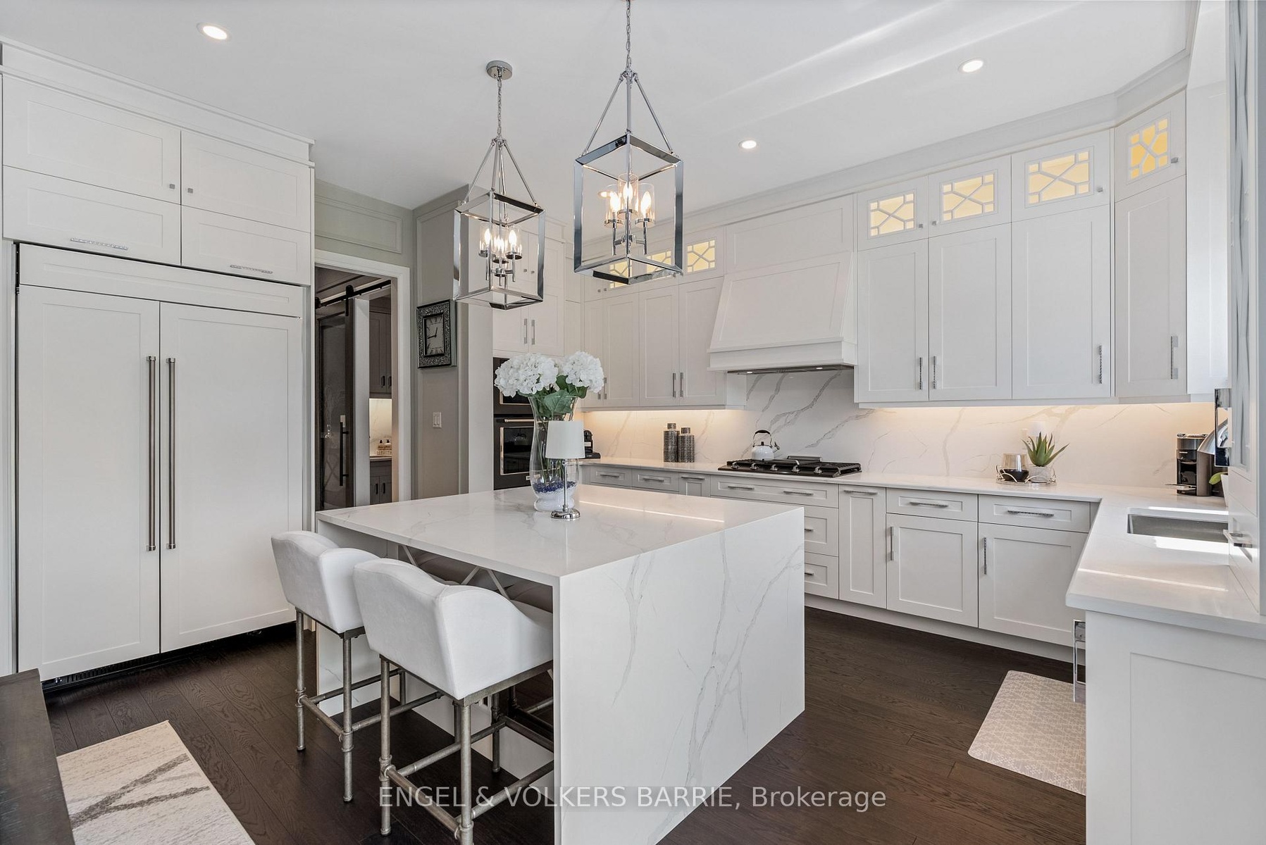 Welcome to 39 McKeown Street, an executive home crafted for both refined living & everyday ease. Situated in the desirable village of Thornton, this stunning 2-storey home offers just under 4,500 sq.ft of total space on a beautifully landscaped lot. Its the perfect fit for families ready to level up their lifestyle, or couples looking for a forever home with space to host, relax, and grow. Step into a grand foyer with soaring ceilings, elegant tilework, & sightlines that draw you into the heart of the home. The main floor offers 10ceilings,8 doors, custom trim, crown molding, & wide-plank hardwood floors throughout. A private home office just off the front entry is ideal for working from home. The designer kitchen is a dream, featuring quartz countertops, a waterfall island, built-in appliances, & a walk-through butlers pantry that connects toa formal dining room wrapped in wainscoting & custom detail. The open-concept living room adds warmth& charm with a marble gas fireplace, coffered ceiling, and custom built-ins. Upstairs, retreat to your luxurious primary suite complete with a spa-inspired 5-piece ensuite & custom walk-in closet. Three additional bedrooms include a private junior suite and a Jack & Jill layout with one bedroom show casing soaring 12' ceilings & oversized windows for natural light. Downstairs, the newly finished basement is where comfort meets opportunity. With its own separate entrance, it includes a stylish rec room with custom built-ins & an electric fireplace, a 3-piece bathroom, bedroom & a bar area that's perfect for entertaining or could serve as a kitchenette making it an ideal in-law suite or guest retreat. The backyard is equally impressive. A covered gazebo with gas fireplace & outdoor TV, a bubbling hot tub, interlock stone patio, & full landscape lighting create the ultimate outdoor escape. Located close to Hwy 400, 27, Barrie, & Innisfil this home offers upscale living with small-town charm. Welcome to your next chapter.